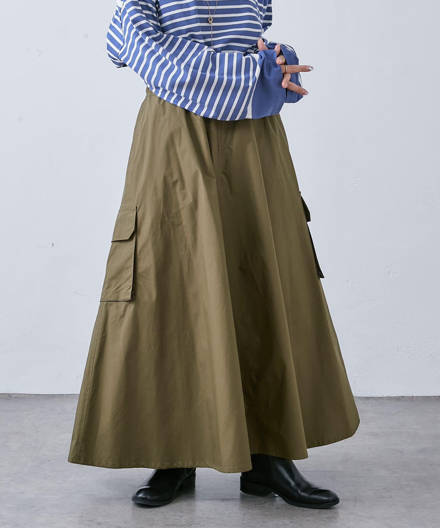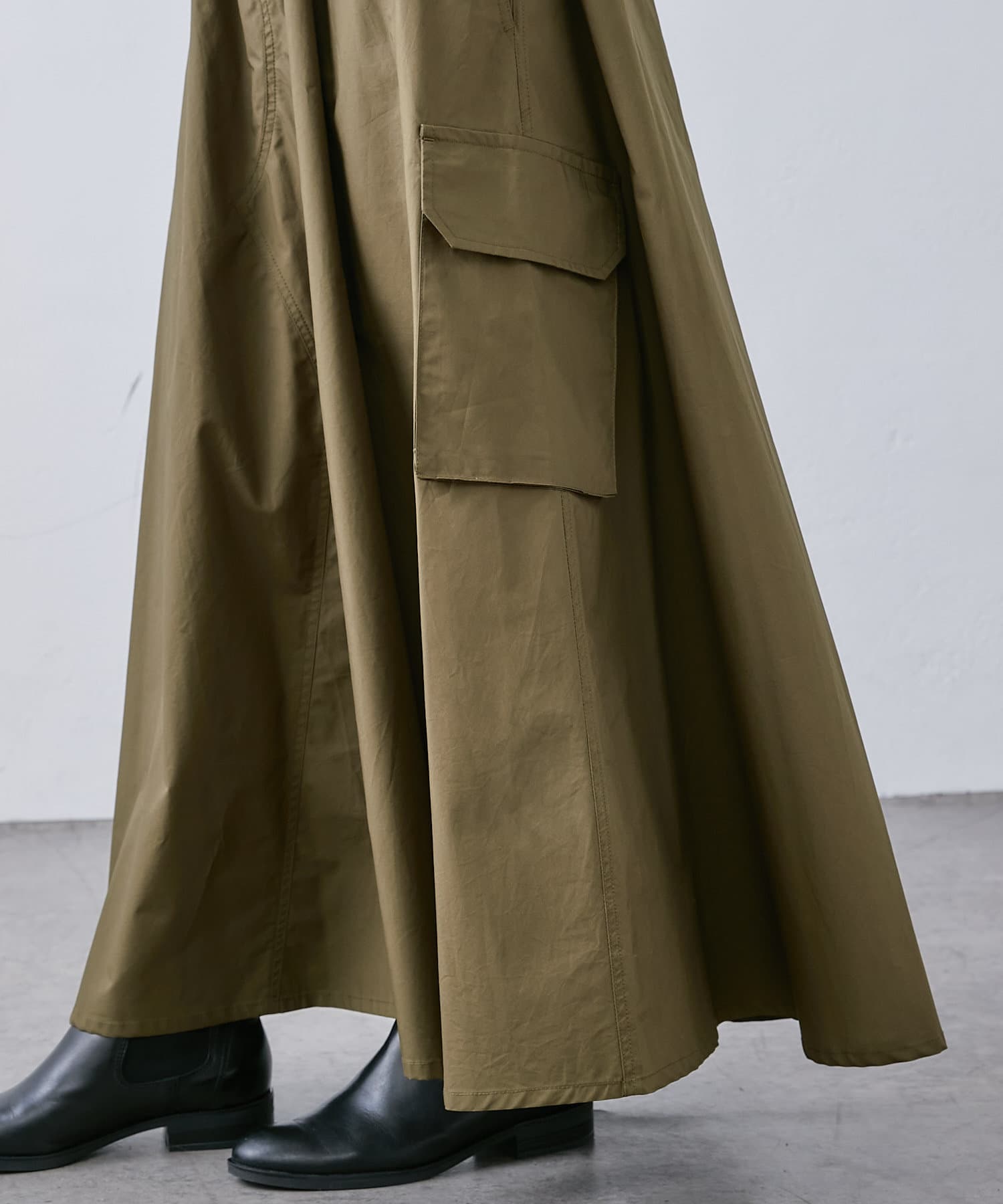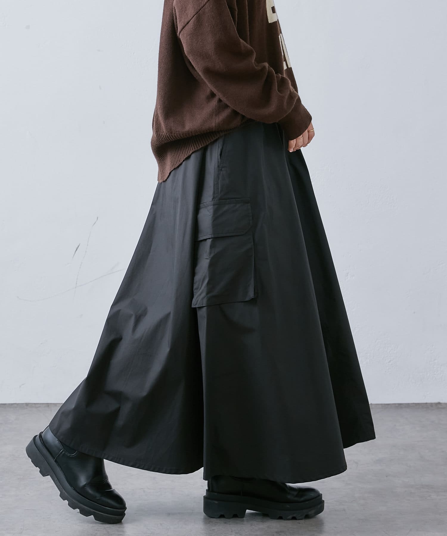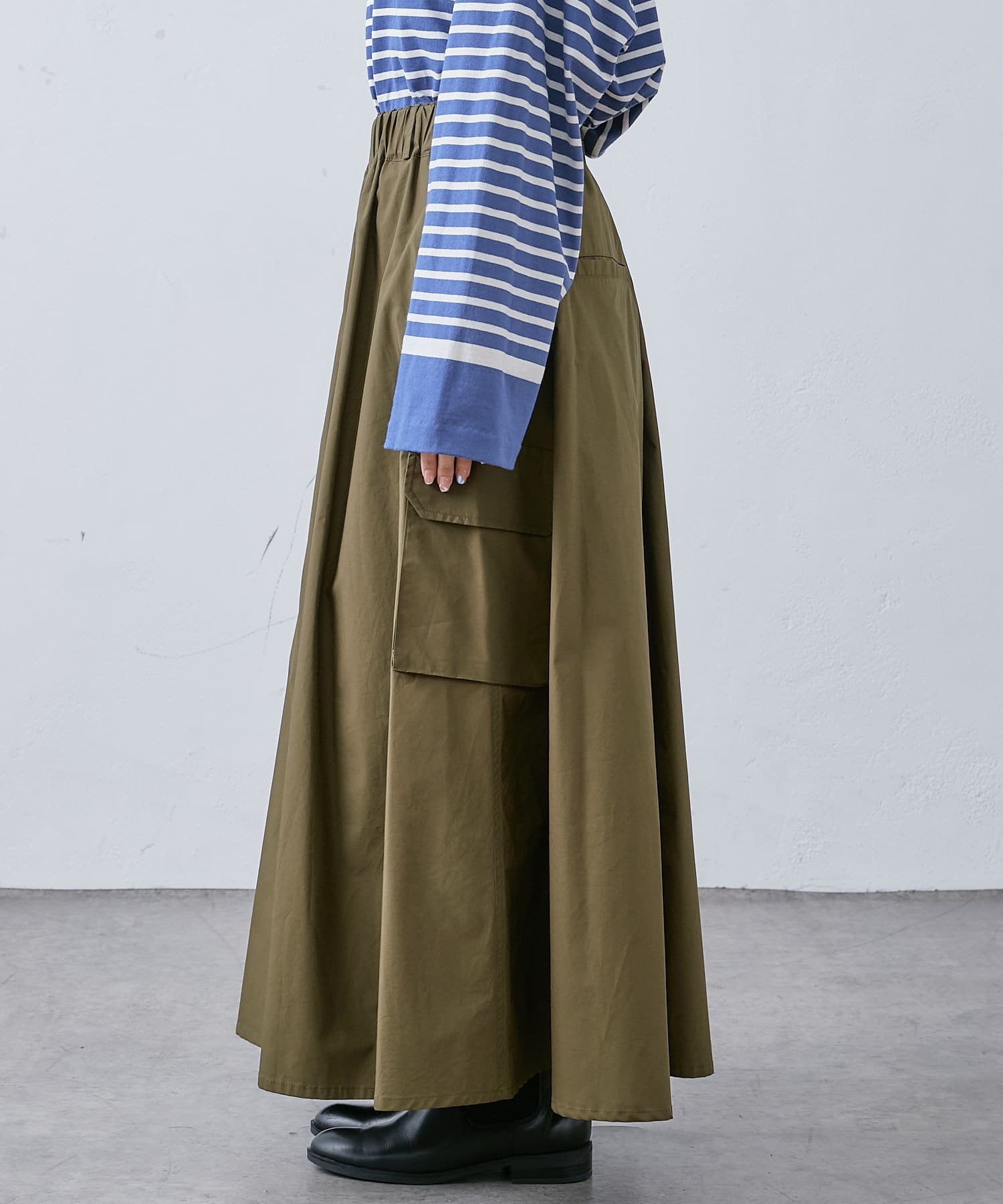 大き目のポケットがアクセントになったカーゴスカート。