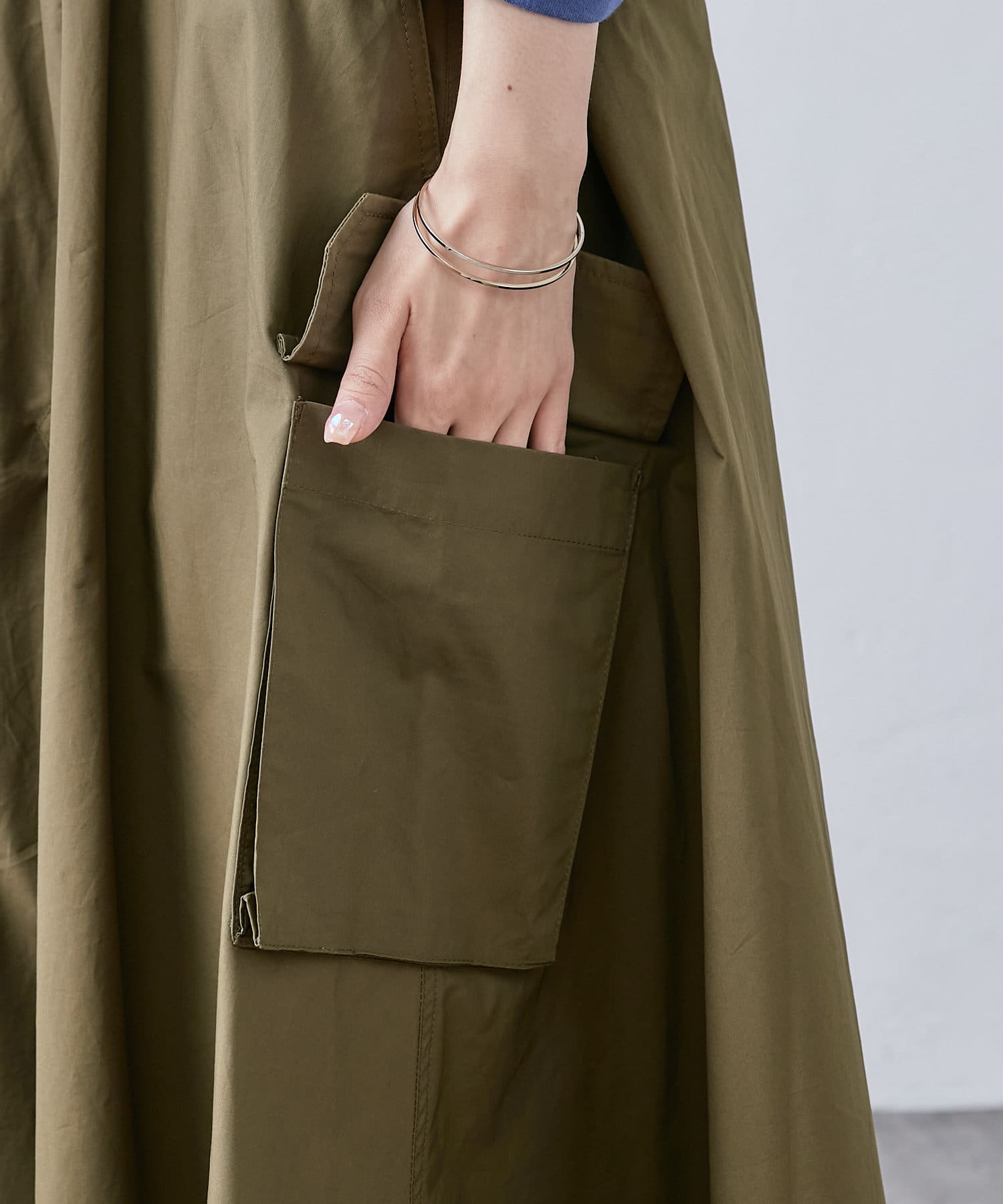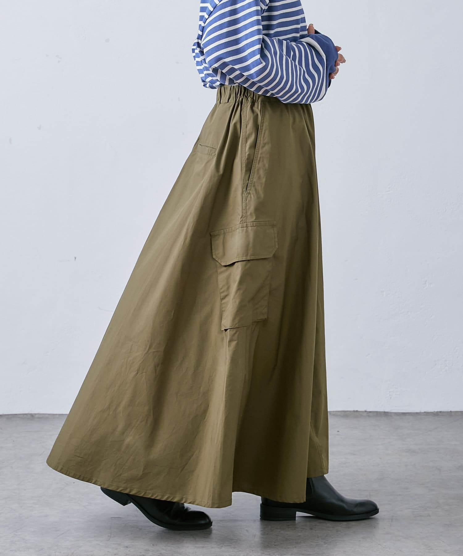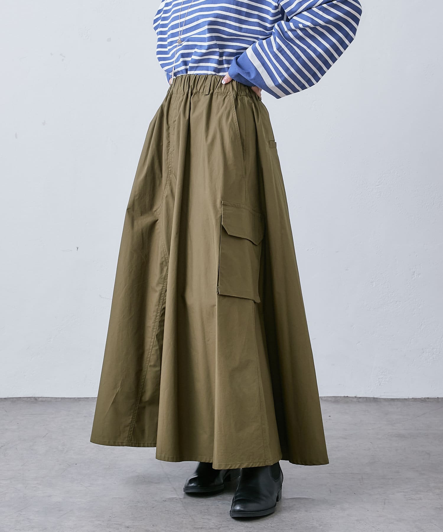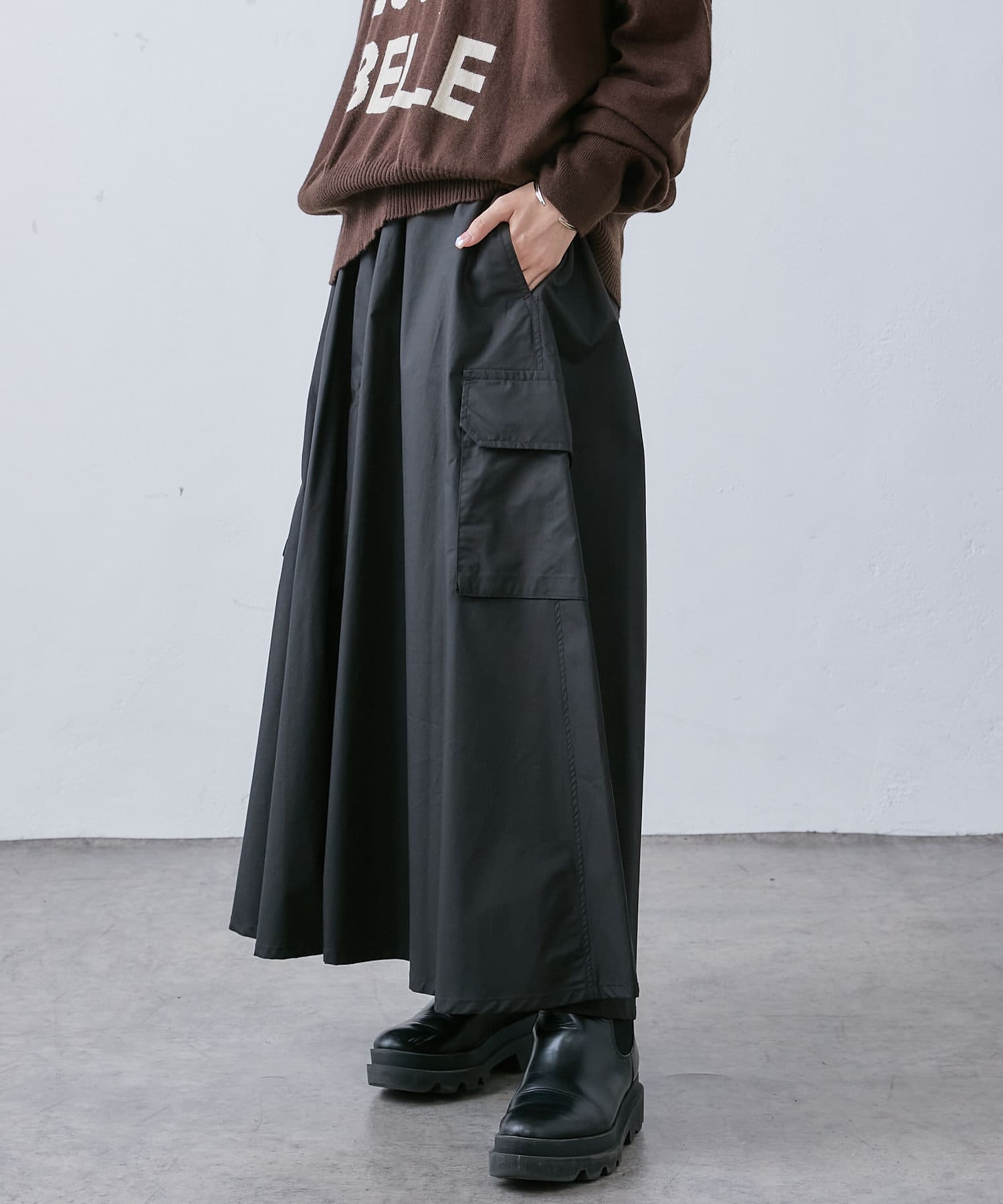 大き目のポケットがアクセントになったカーゴスカート。
