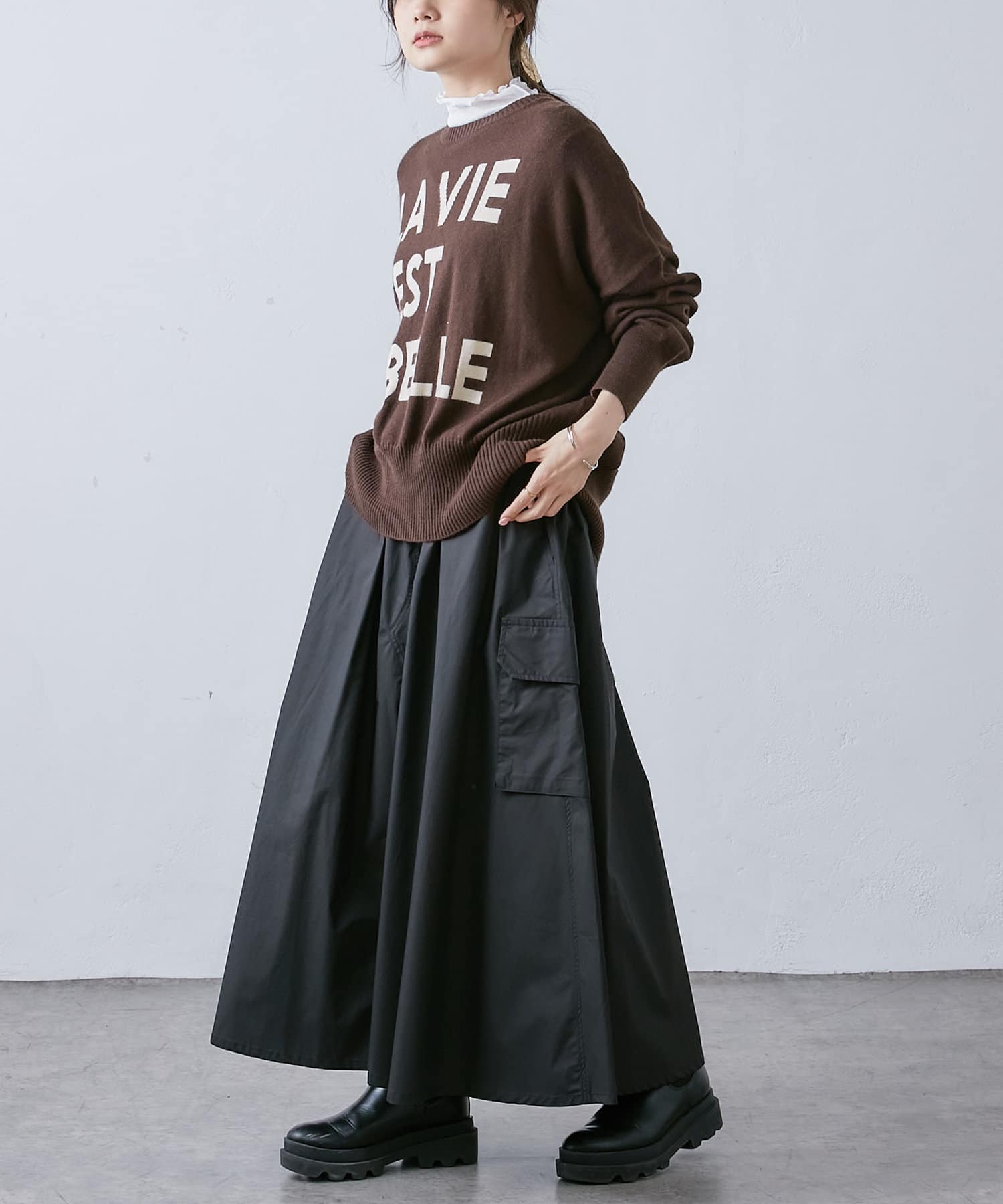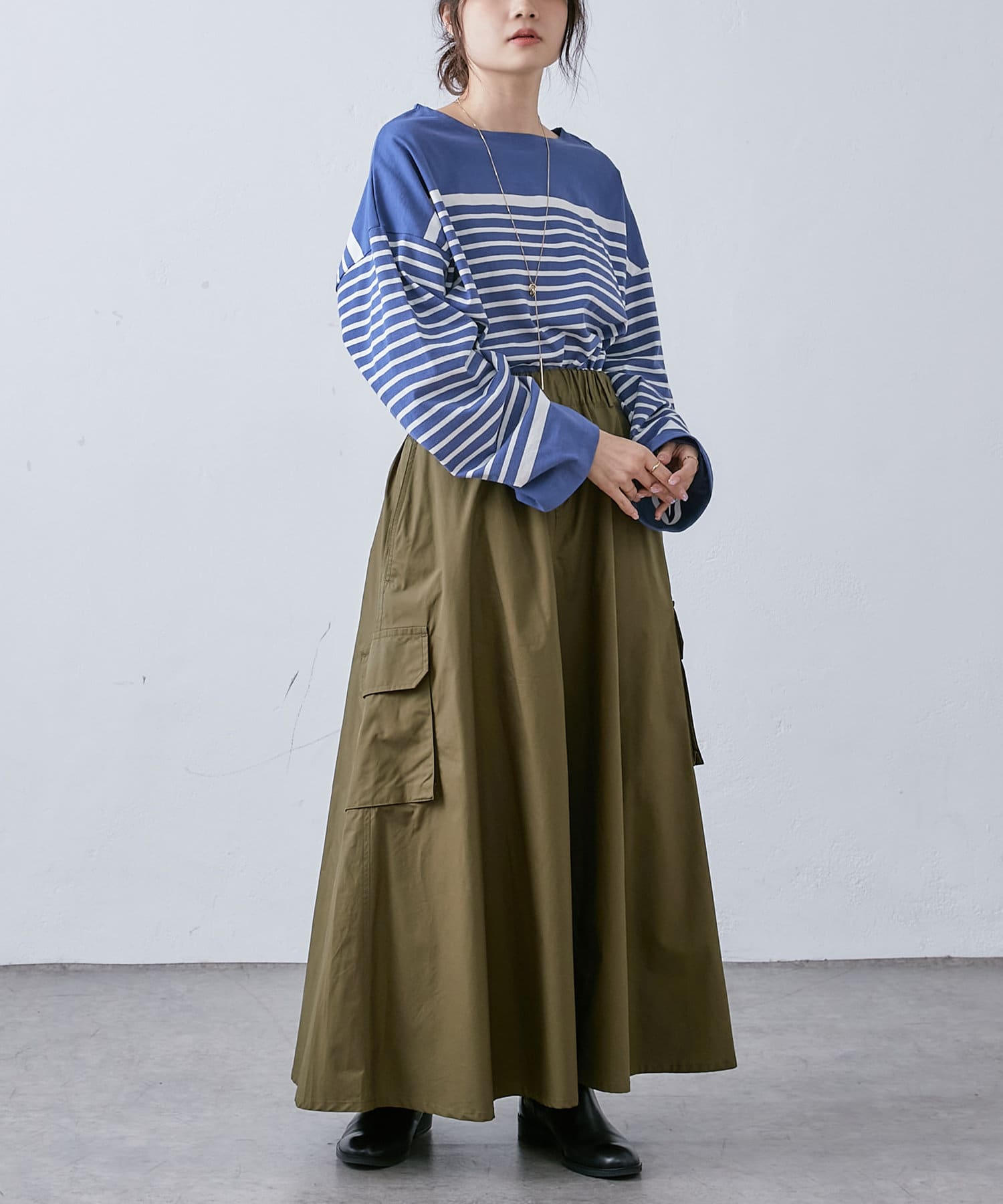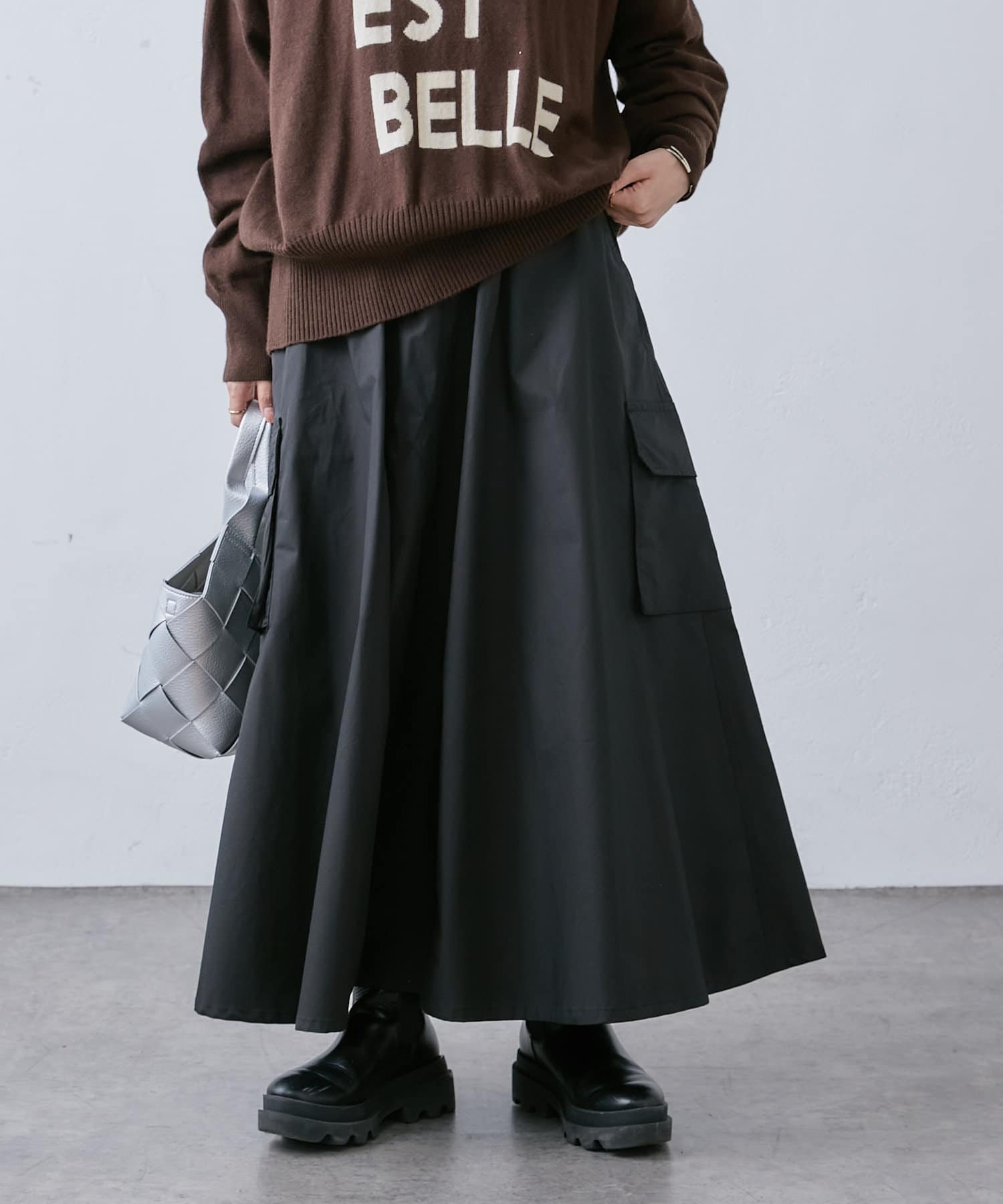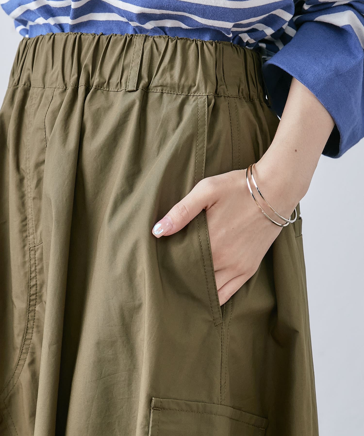 大き目のポケットがアクセントになったカーゴスカート。
