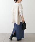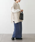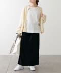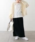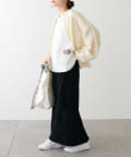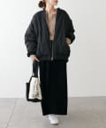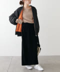 Iラインシルエットと縦に入った凹凸の生地が上品な印象のアイテムなので、スウェットやブルゾンのはずしとしても相性◎