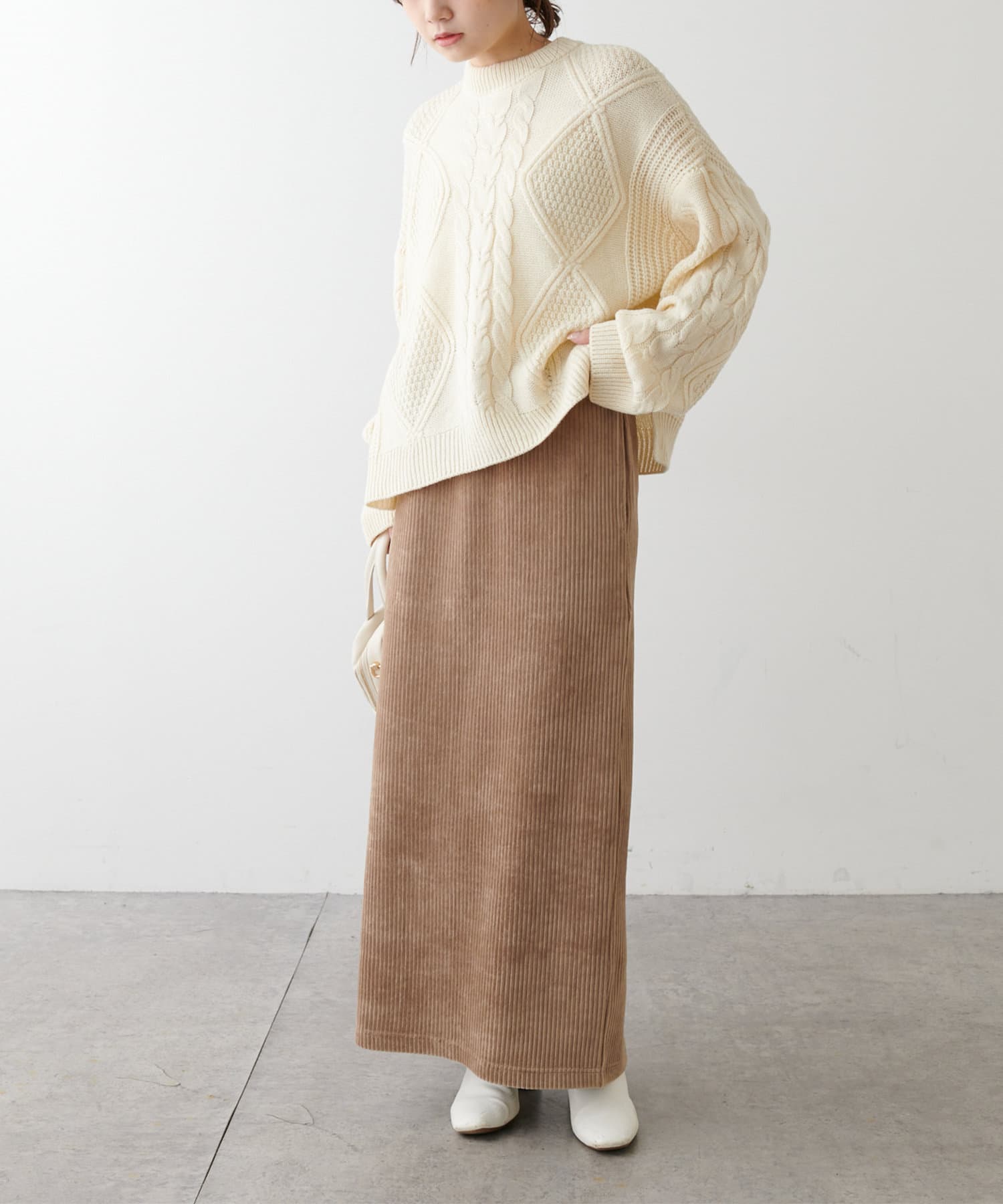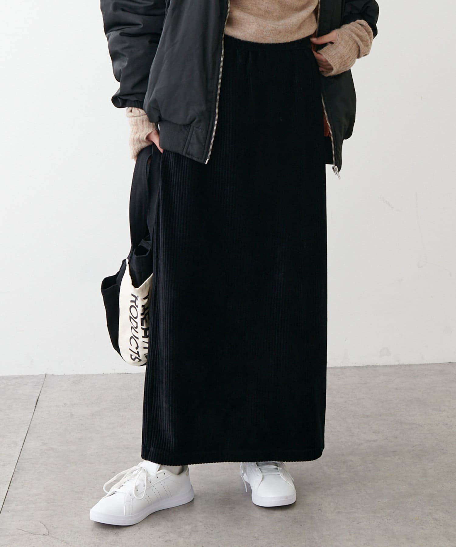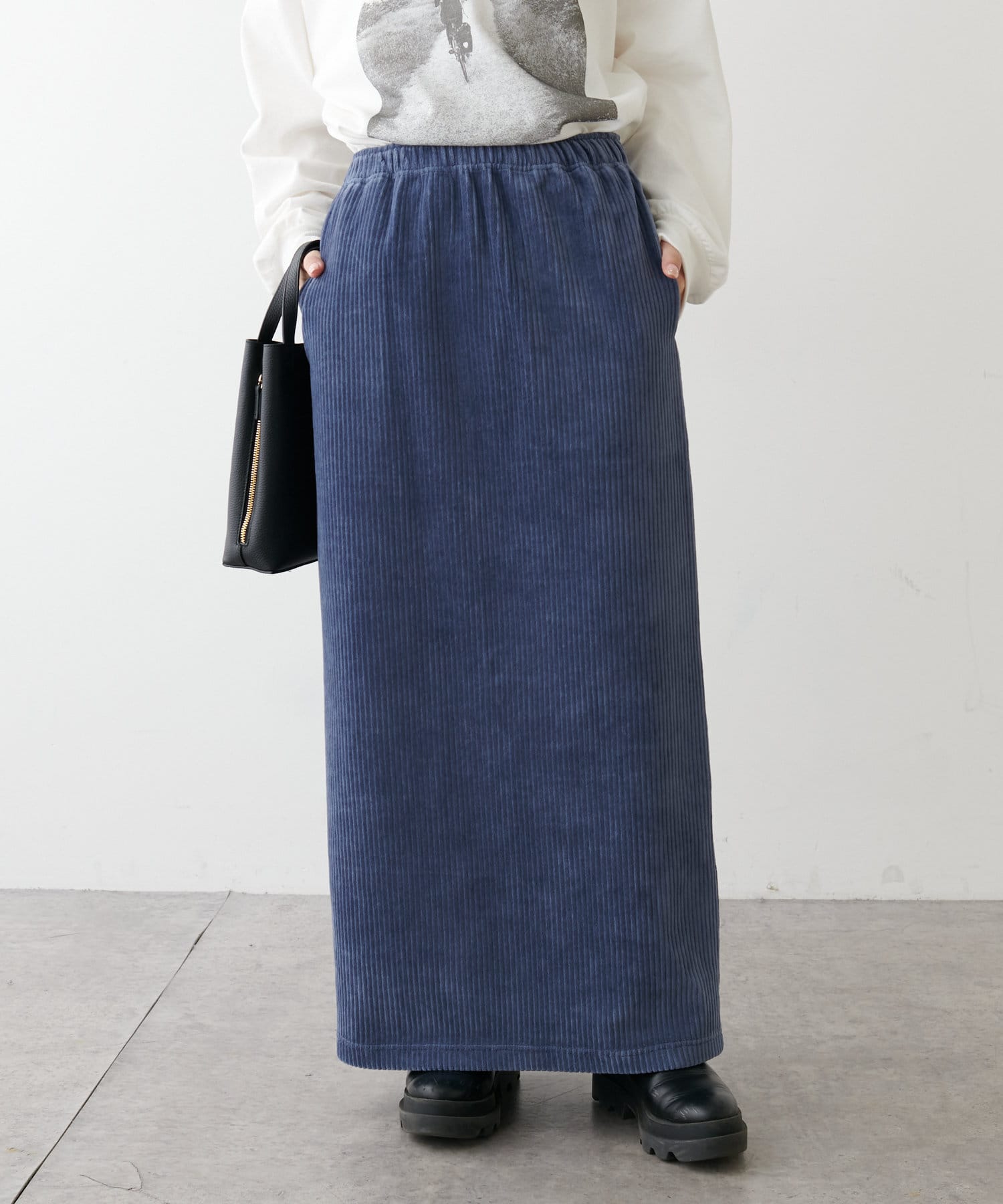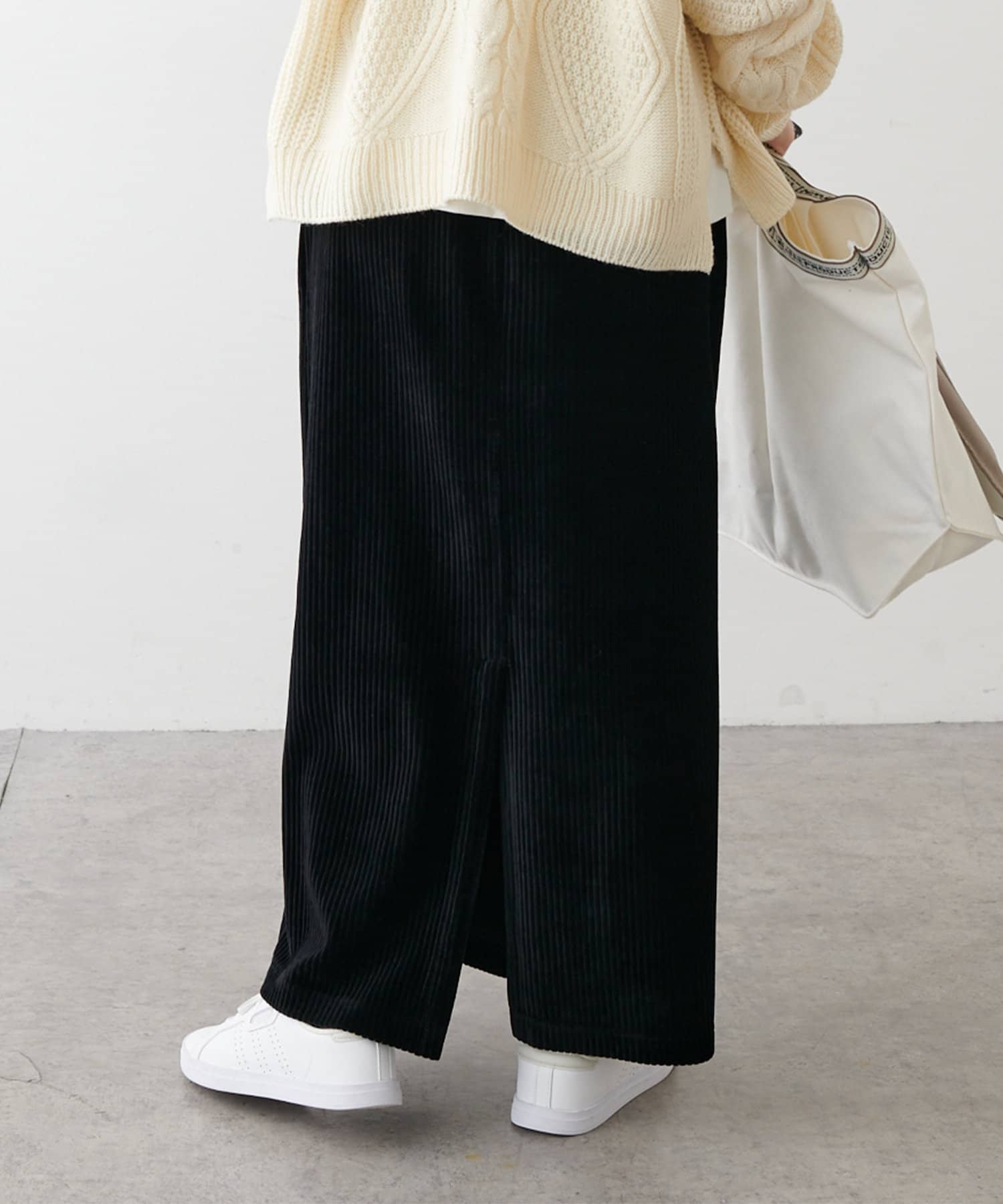 生地の凹凸感が魅力的な暖かい素材を使ったコールスカート。