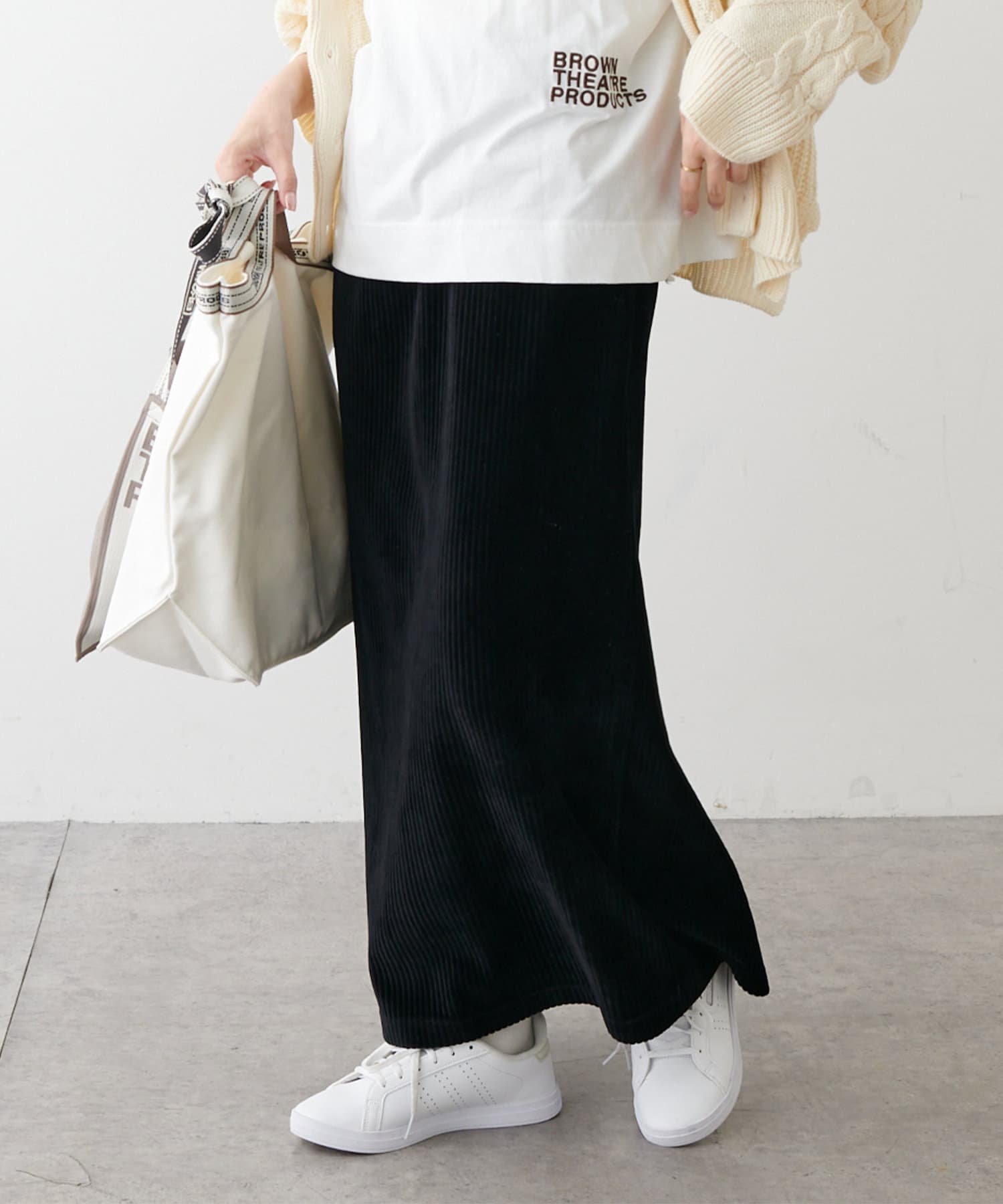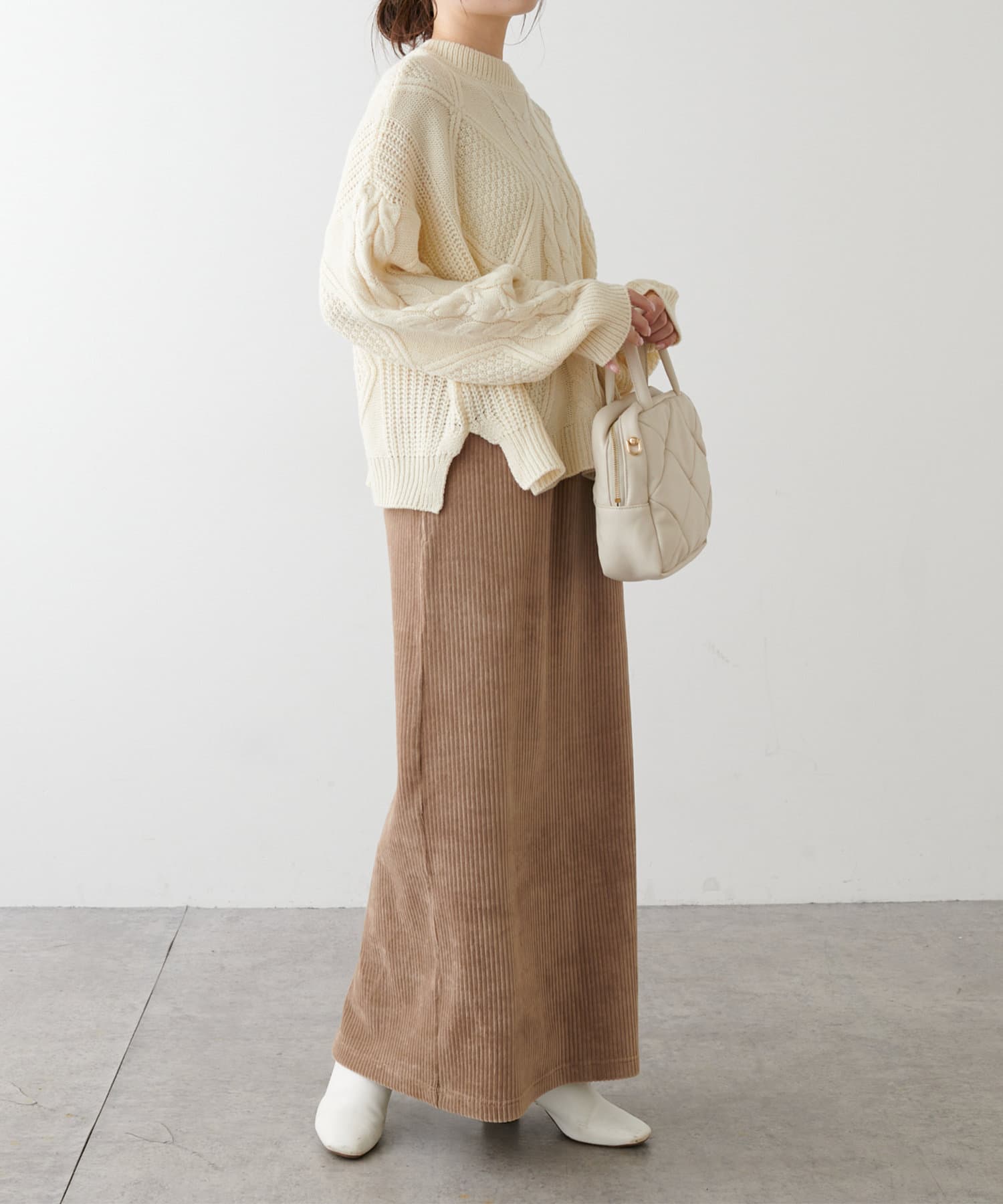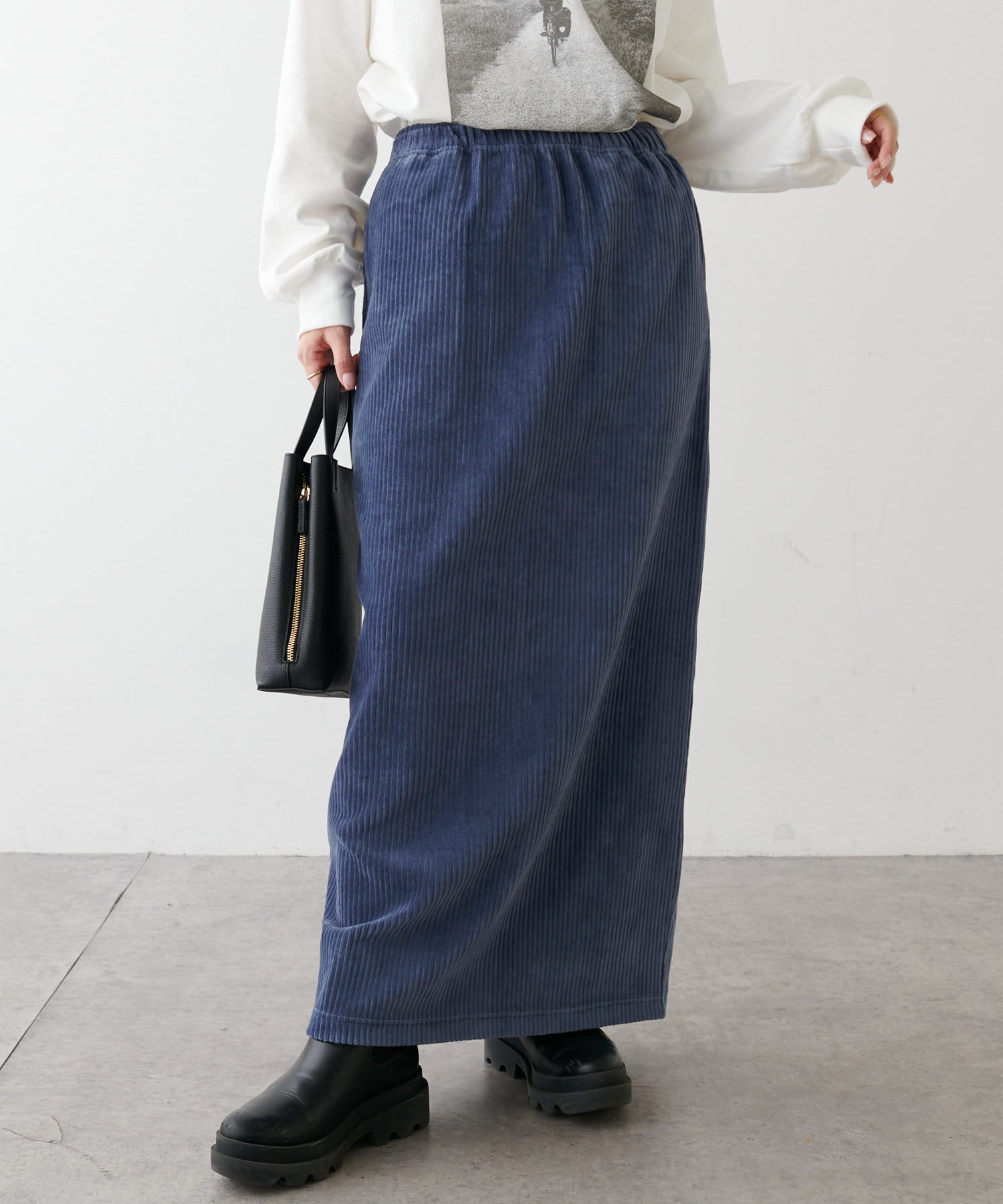 生地の凹凸感が魅力的な暖かい素材を使ったコールスカート。