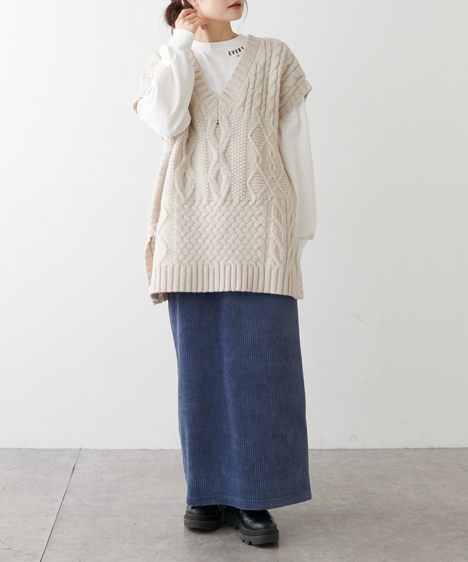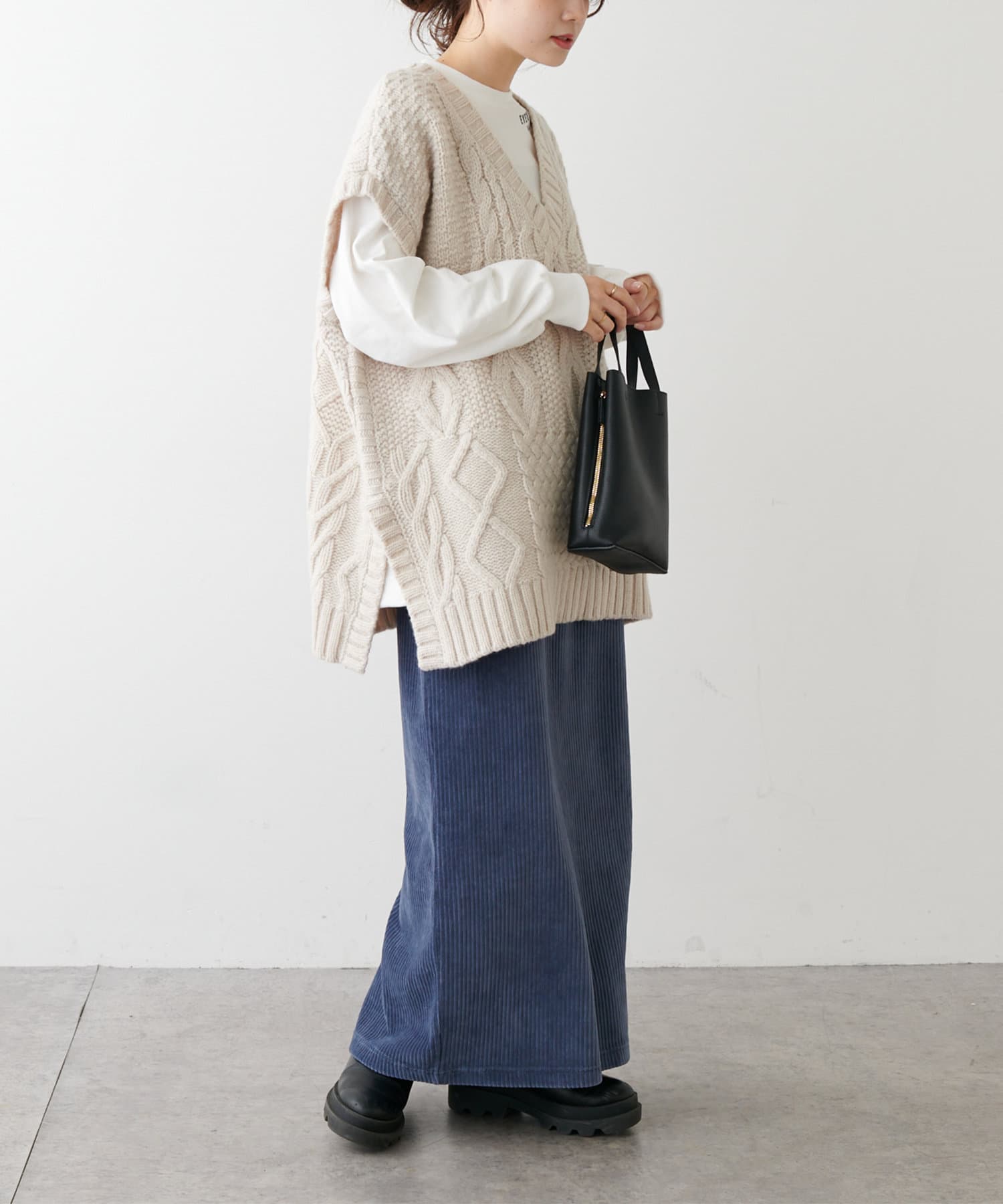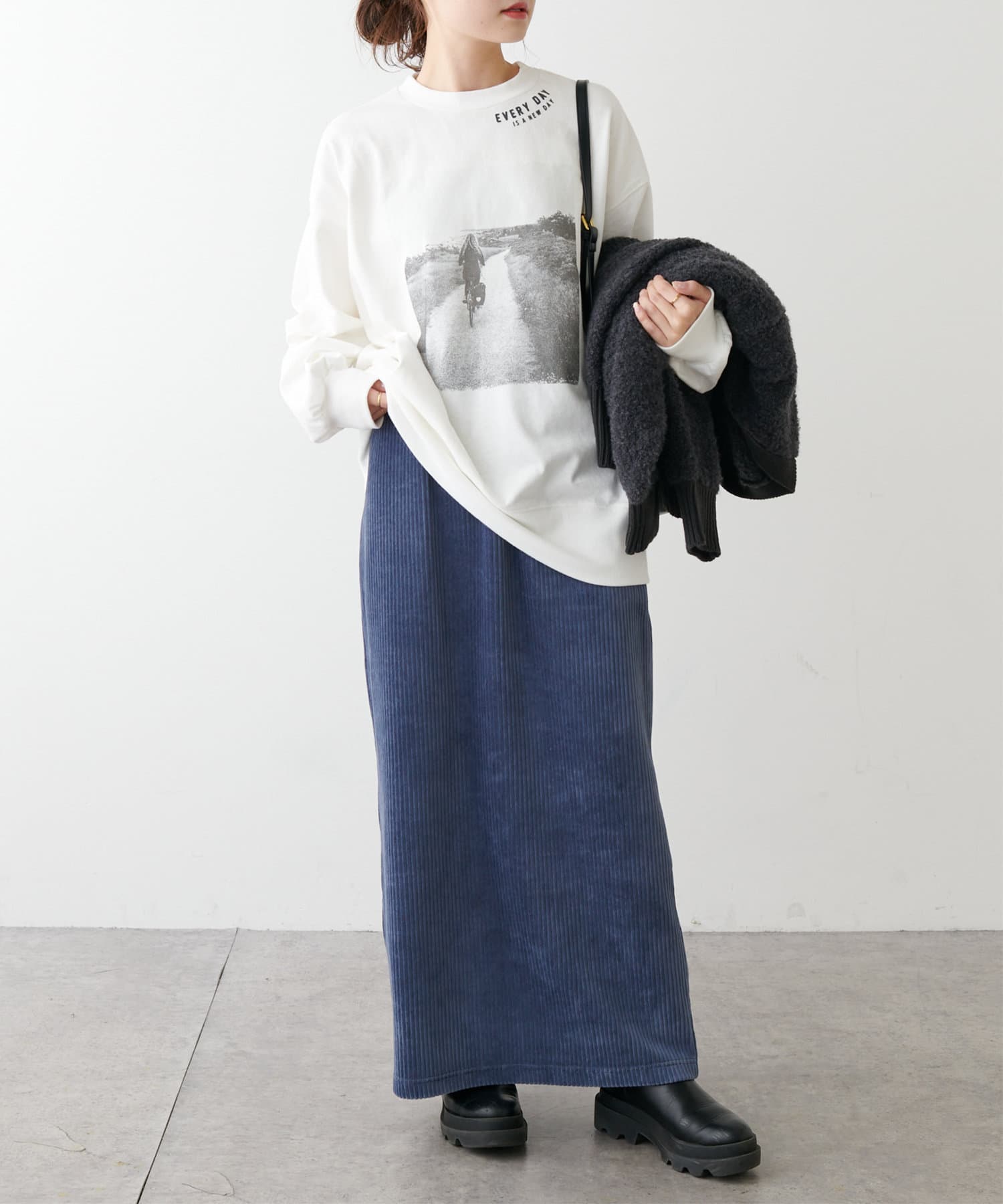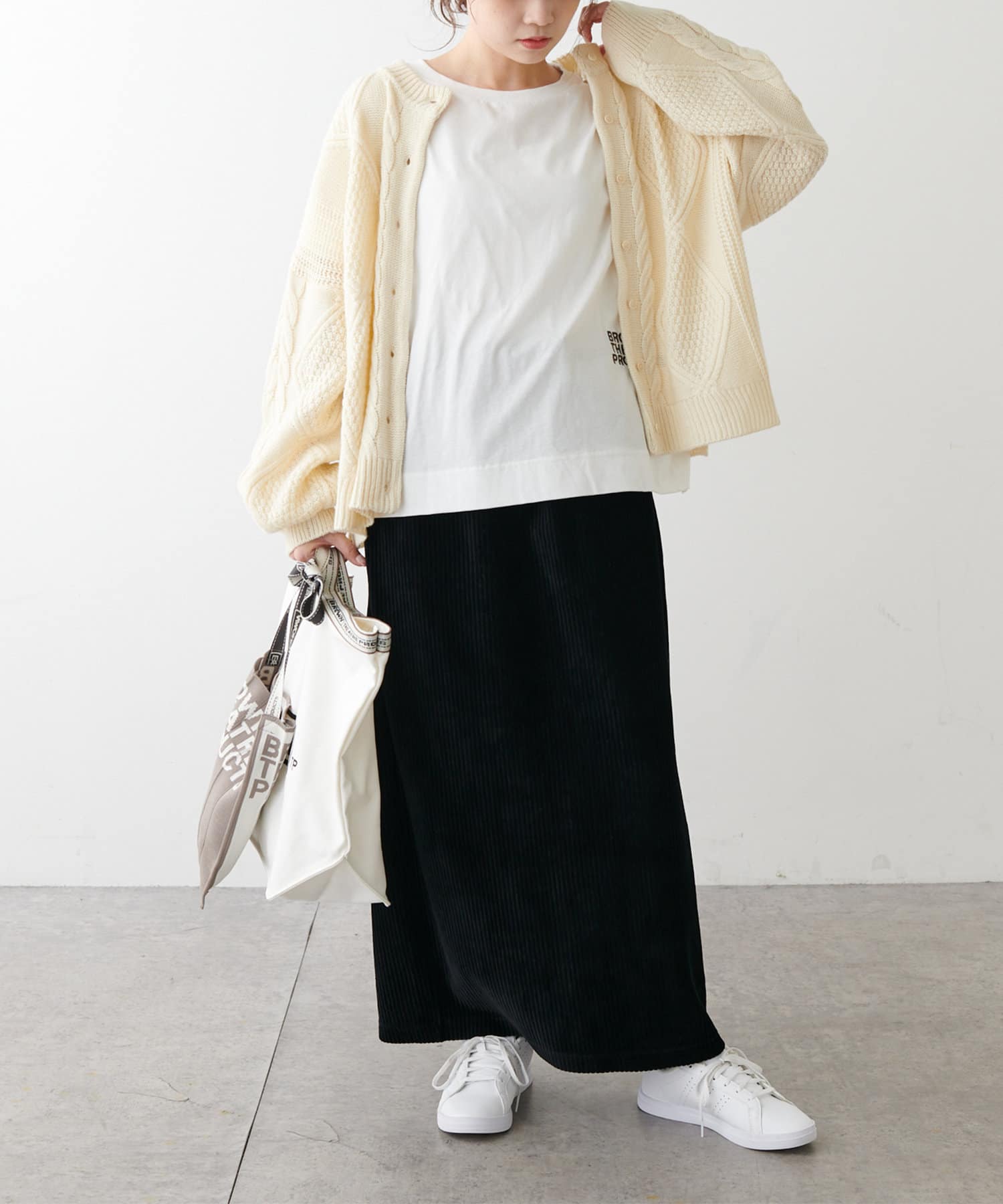 生地の凹凸感が魅力的な暖かい素材を使ったコールスカート。