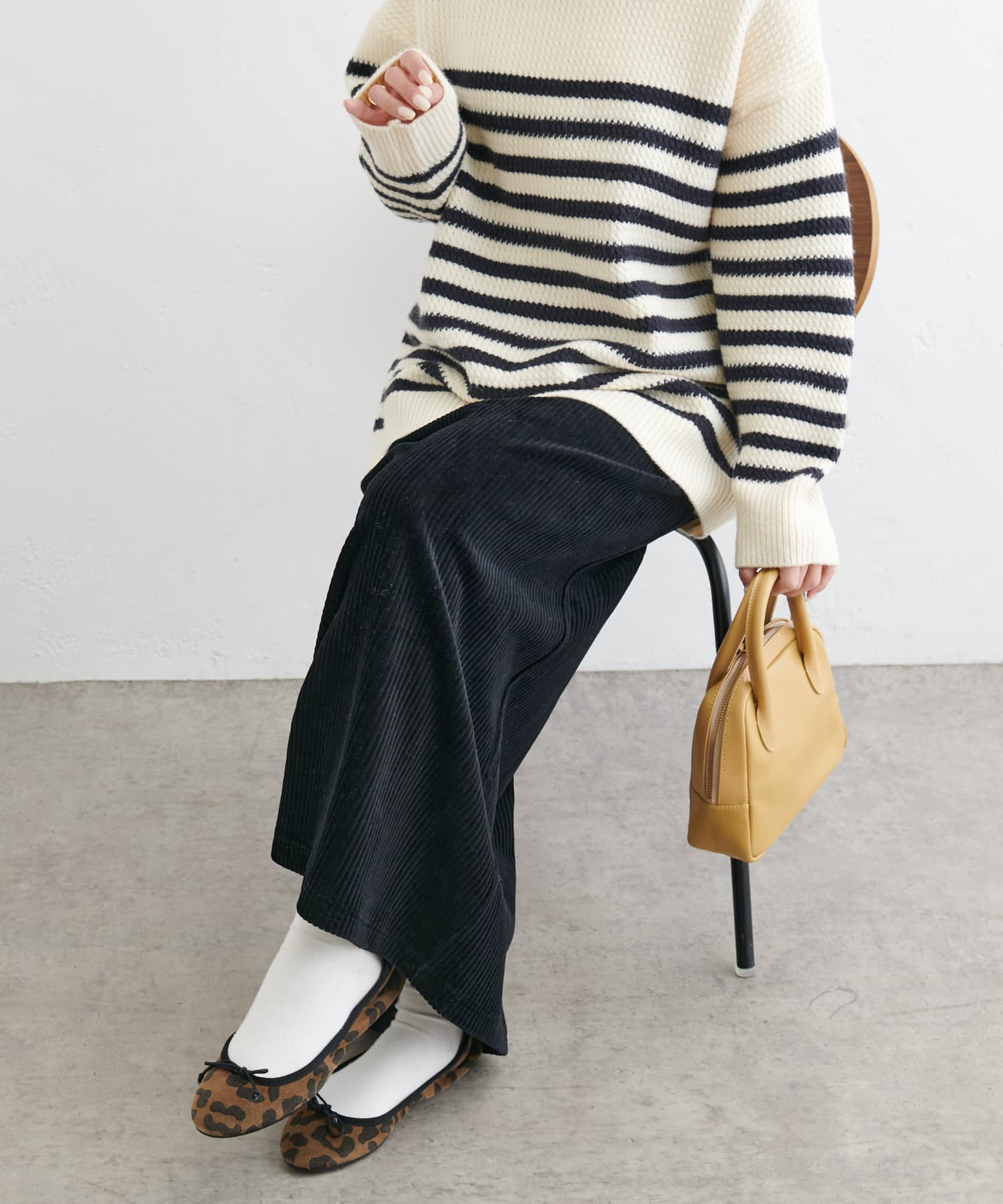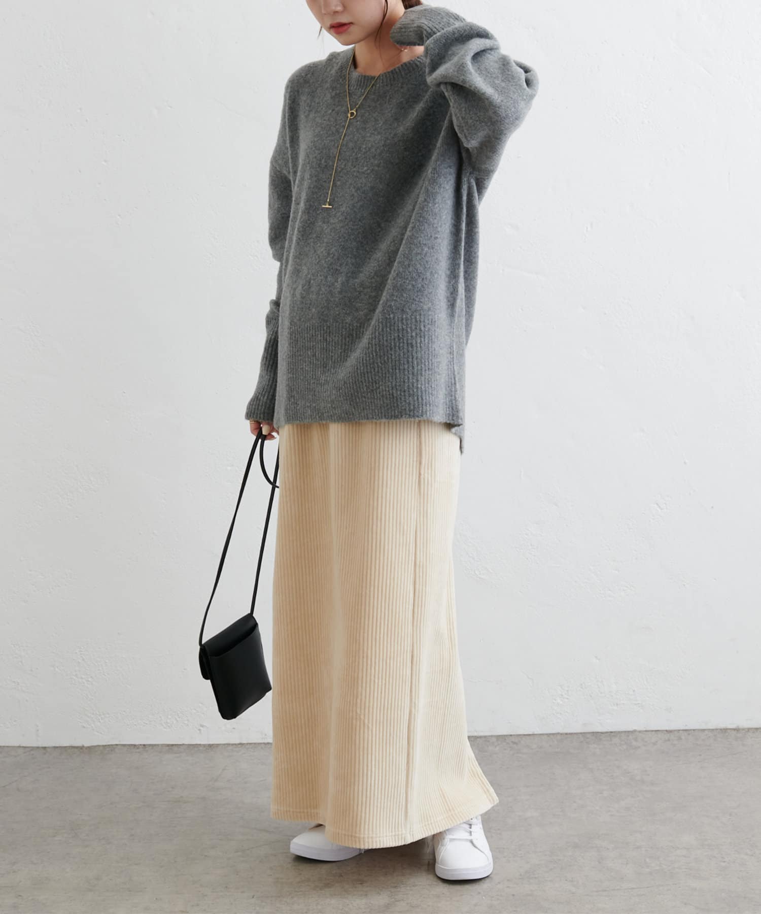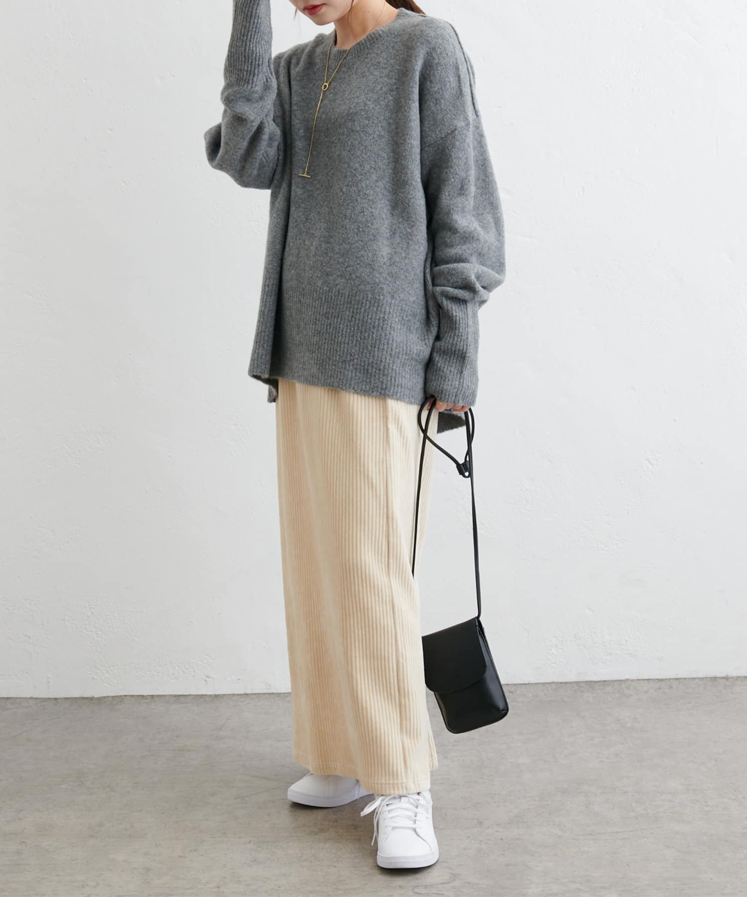 サイズ感:スニーカーやローヒールの靴でも綺麗に穿ける丈感です。