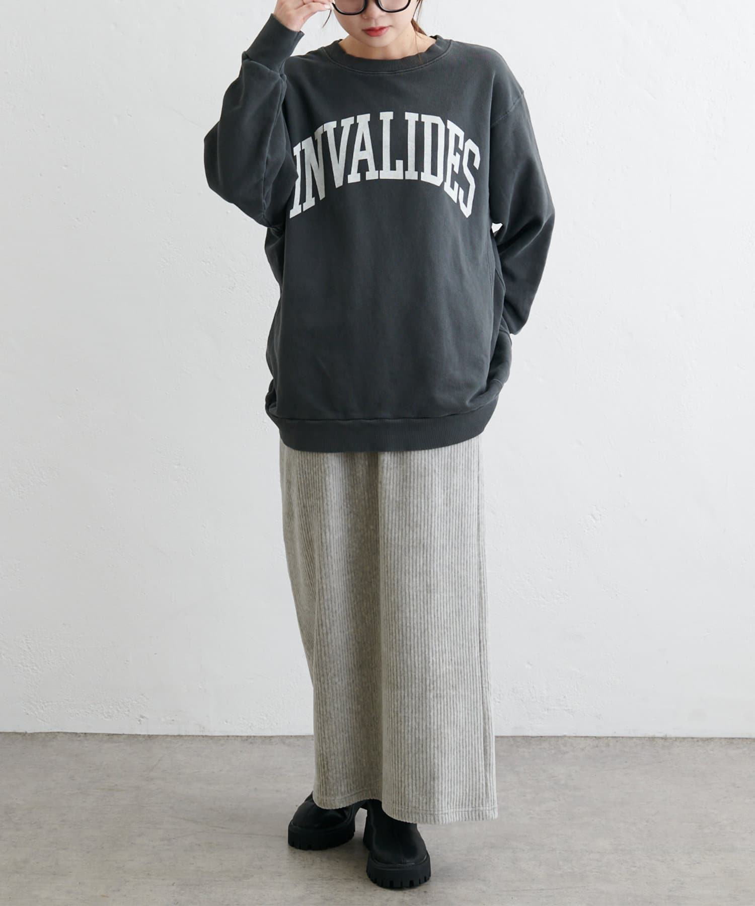 オーバーサイズのTシャツやスウェットを合わせたカジュアルスタイルがおすすめ。