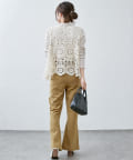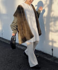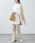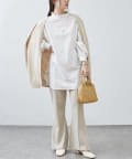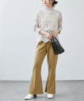 脚にややフィットするデザインなので、ざっくり編みのニットやオーバーサイズのスウェットなど、たっぷりしたシルエットのトップスと合わせるのがオススメ。