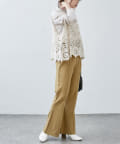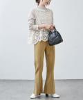 ストレッチが効き、楽な穿き心地のフレアパンツ。