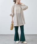 レーヨン交じりの生地なので微光沢があり、カジュアルから綺麗めなスタイルまで幅広く対応します。