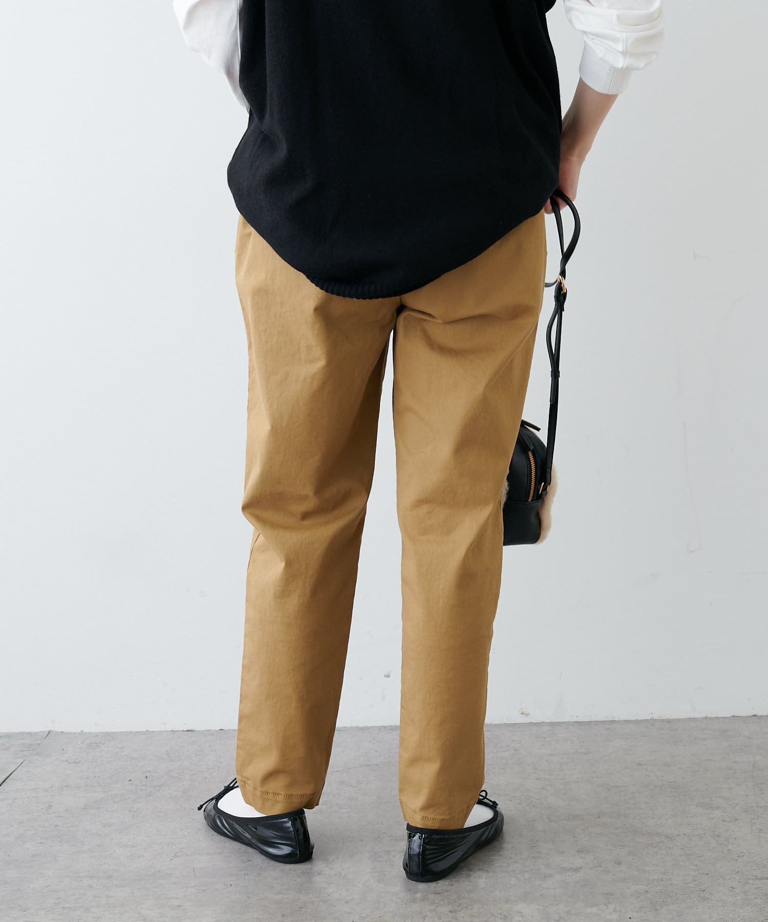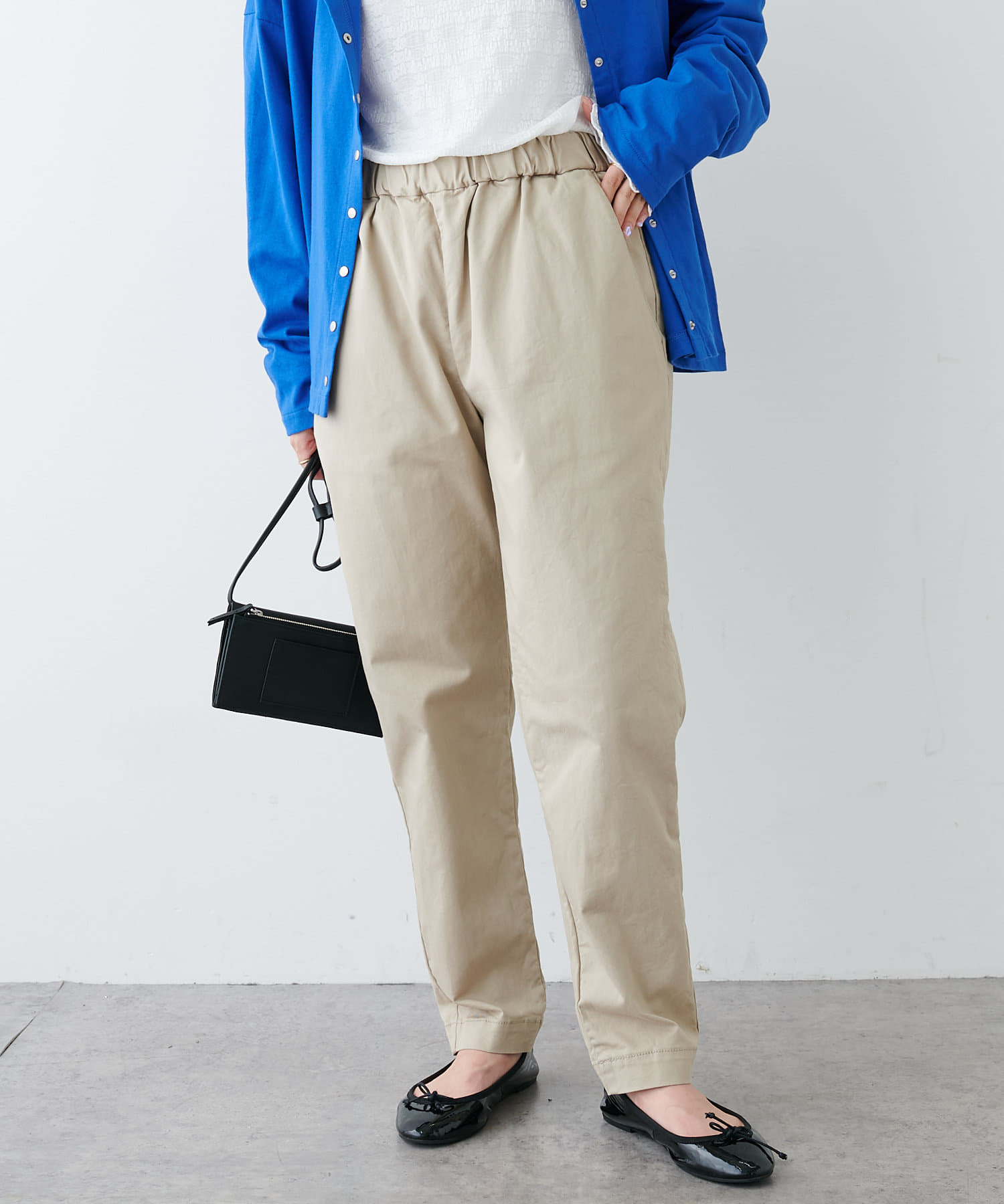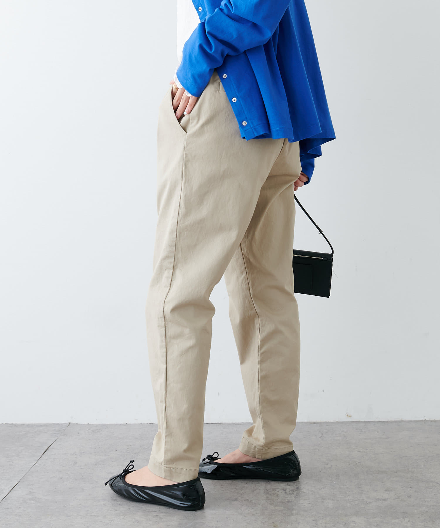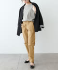 ハリのある生地を使用しているので、ラフな雰囲気になりすぎずきちんと感を演出。