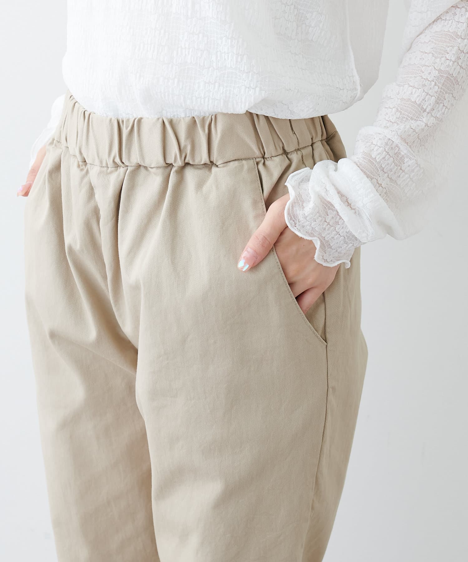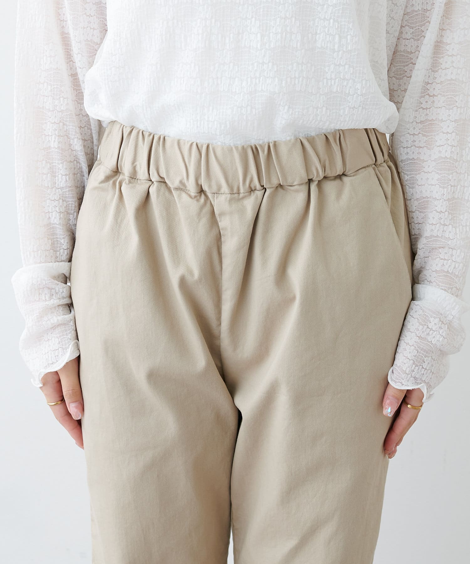 ウエストゴム仕様にベルトループも付いているので、
