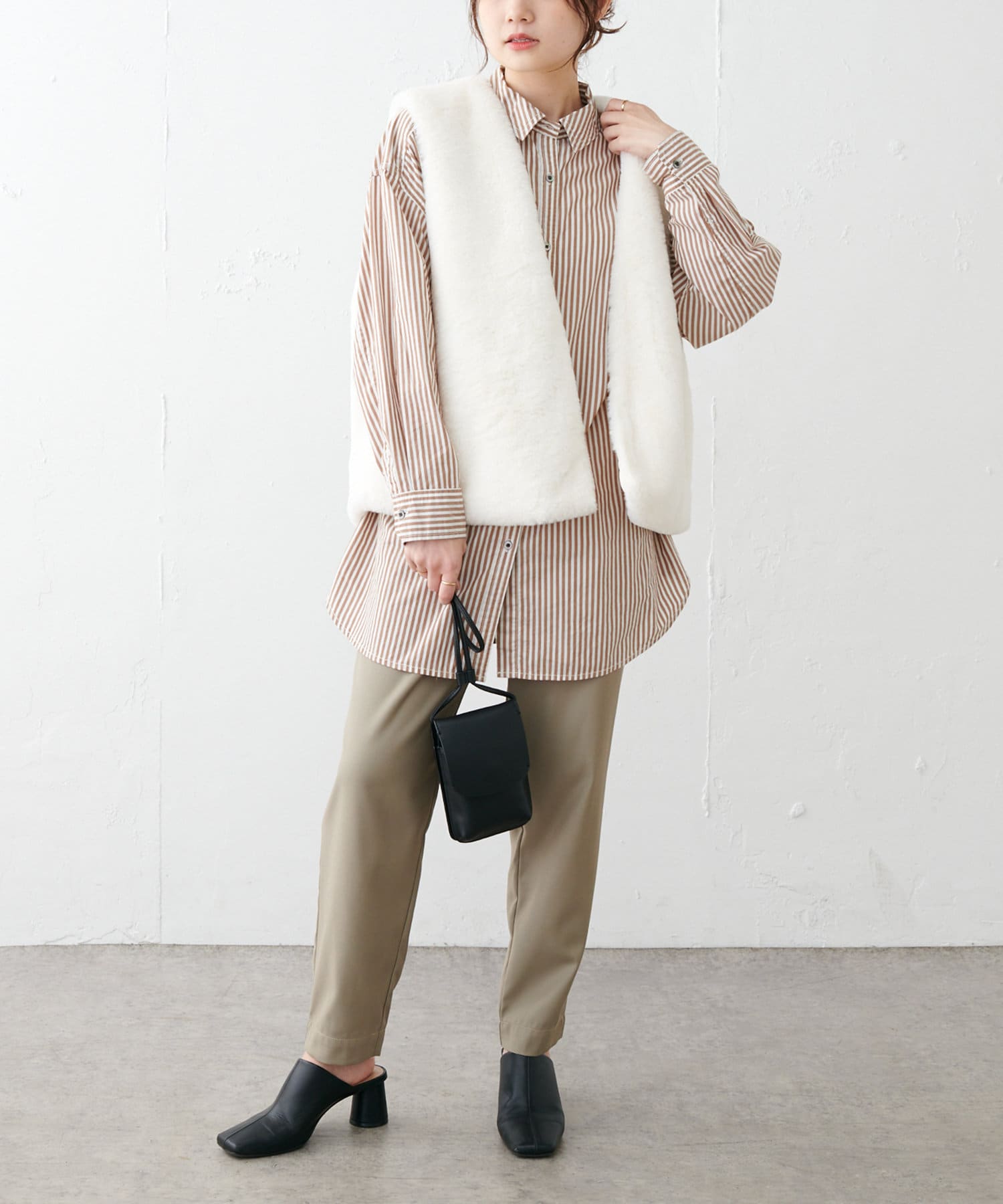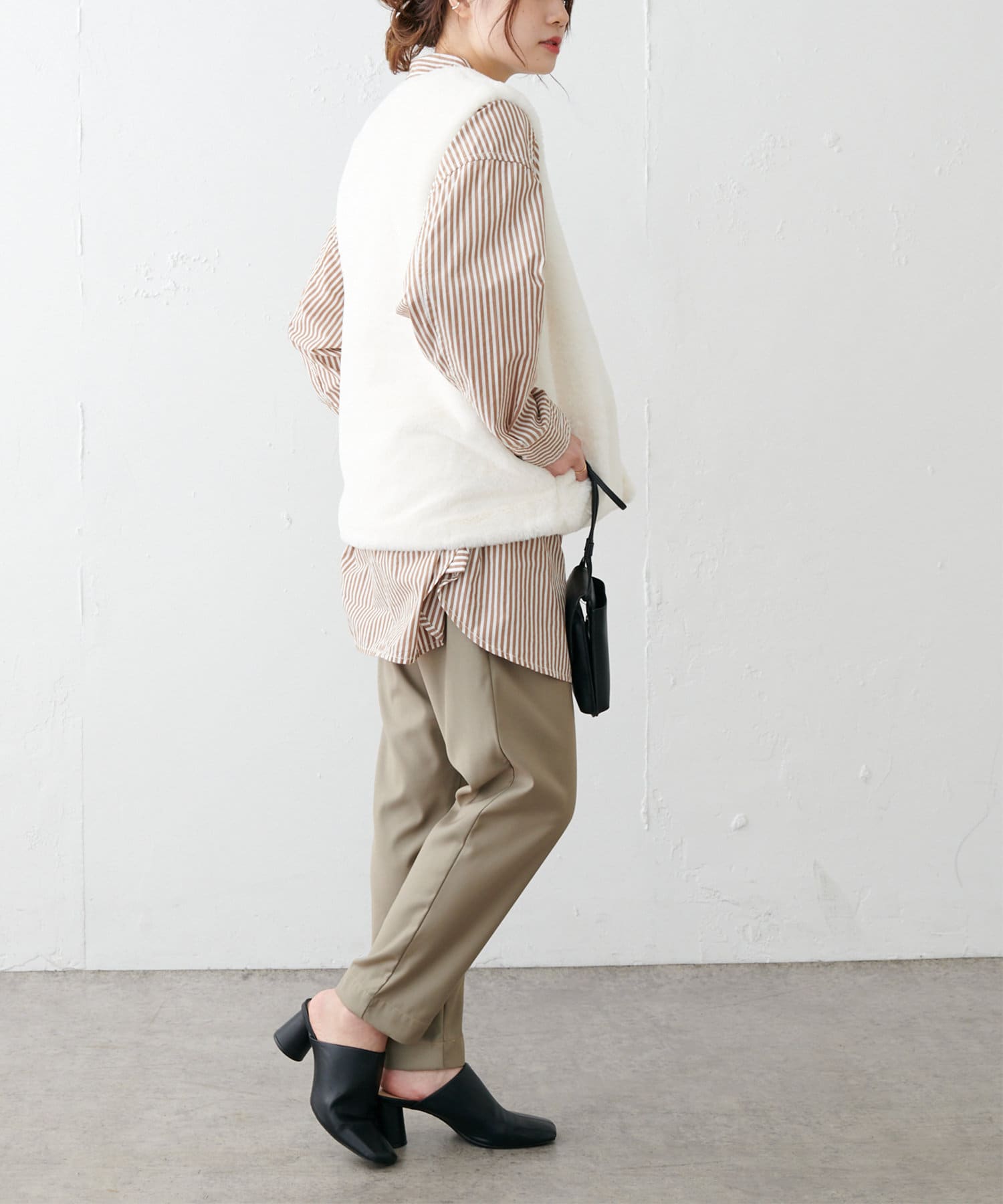 バランスのとりやすい着丈はスニーカーやローファー、パンプスなど足元のお洒落をお楽しみいただけます。