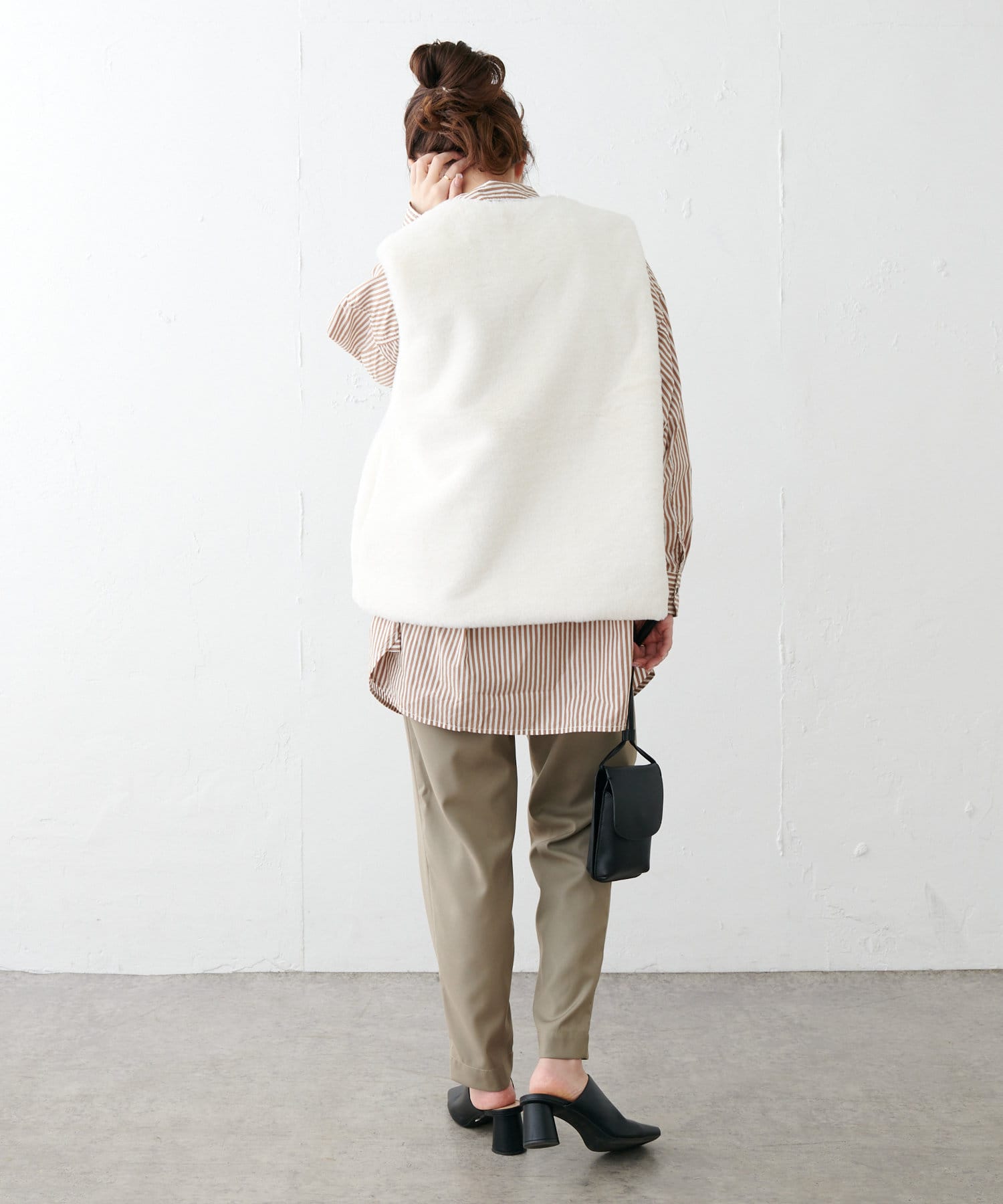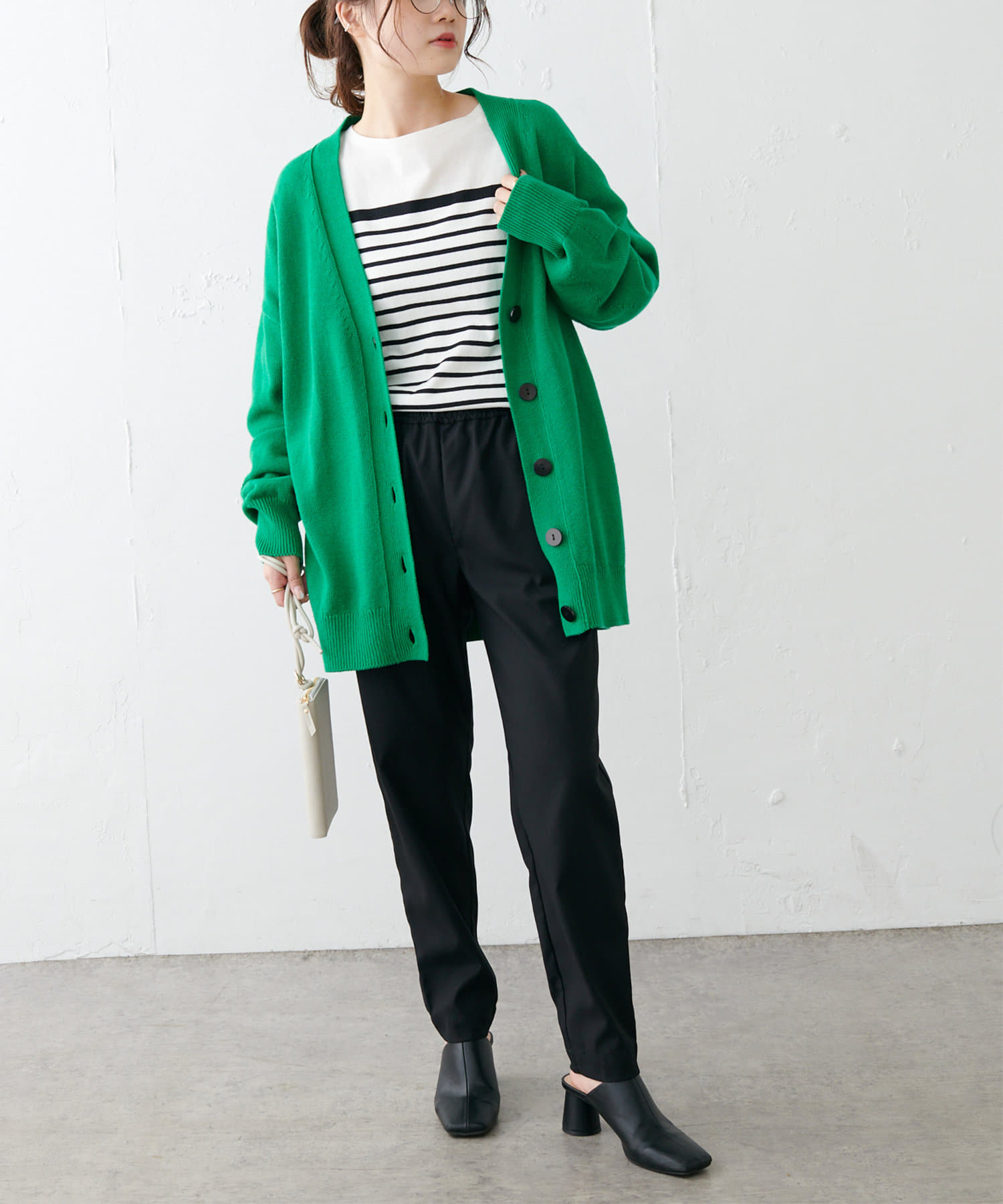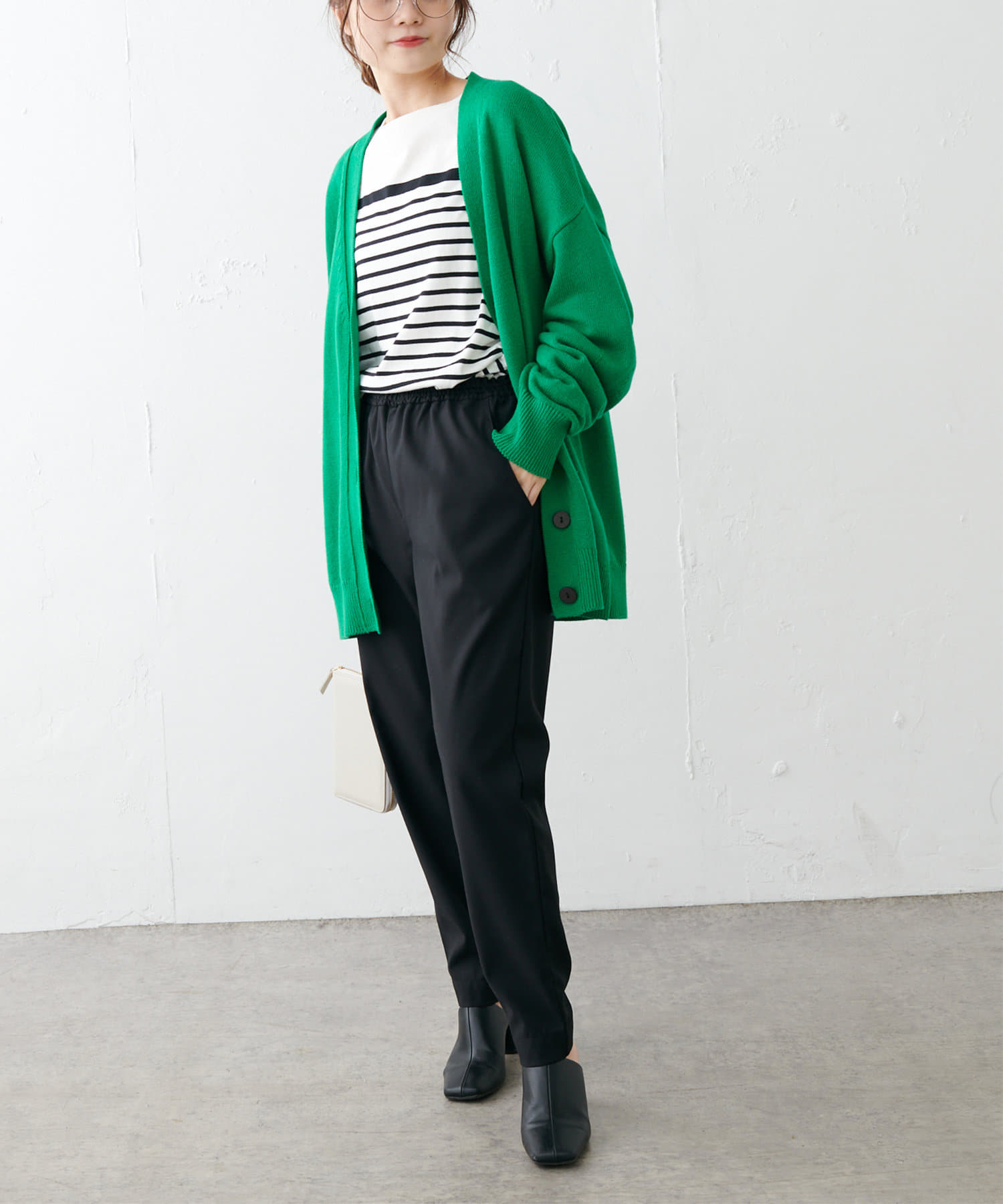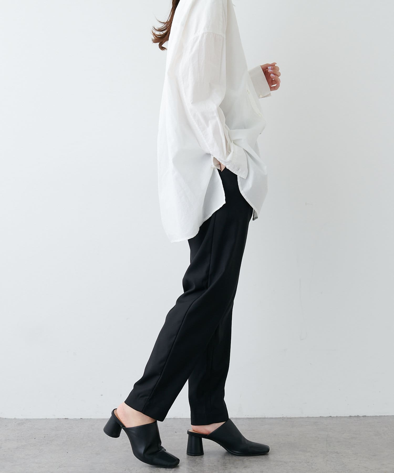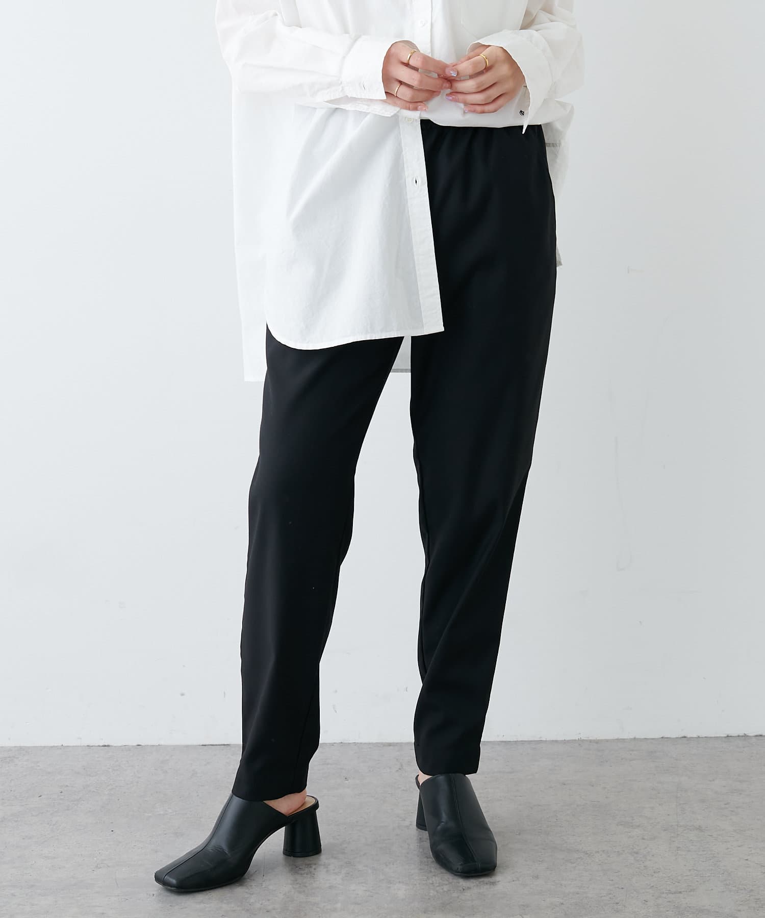 裾にかけて細くなるテーパード型で、脚のラインを綺麗にみせてくれます。