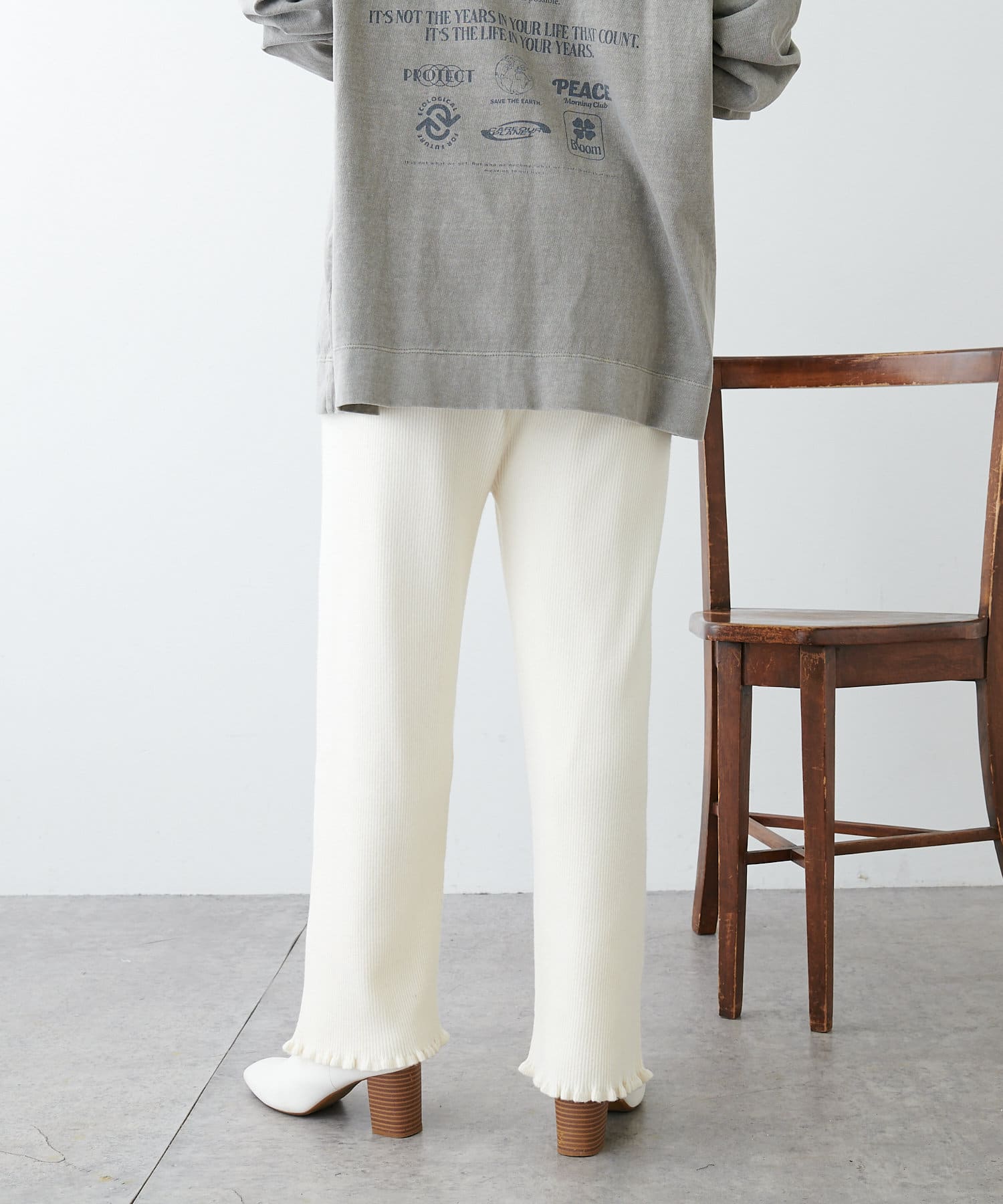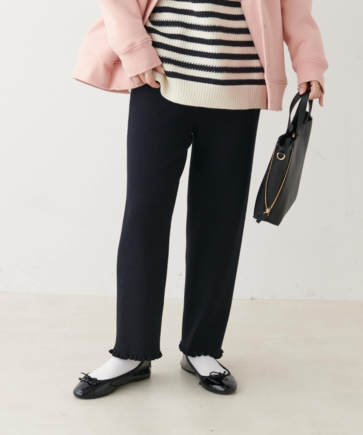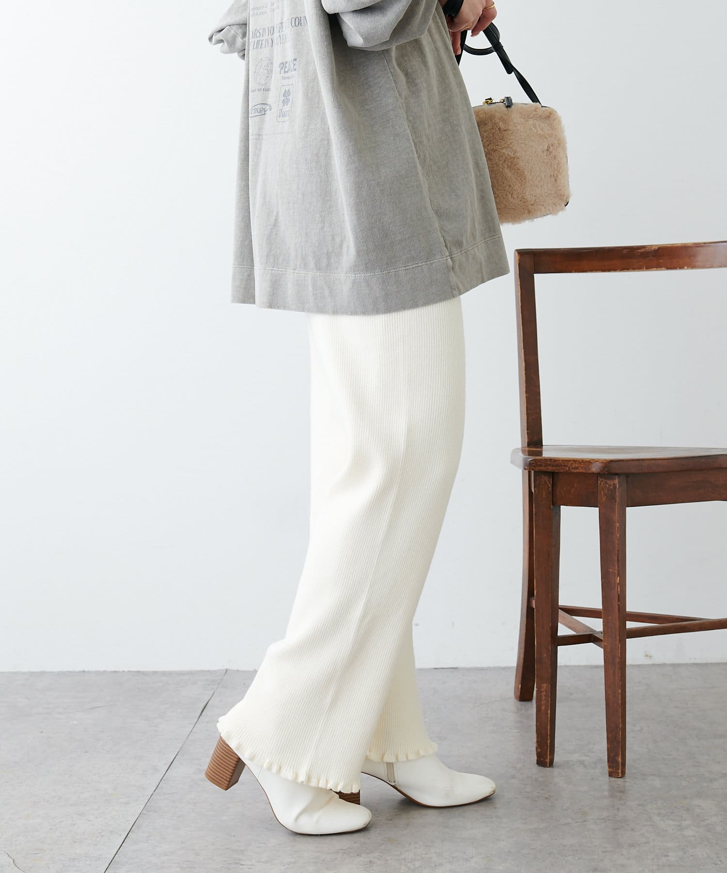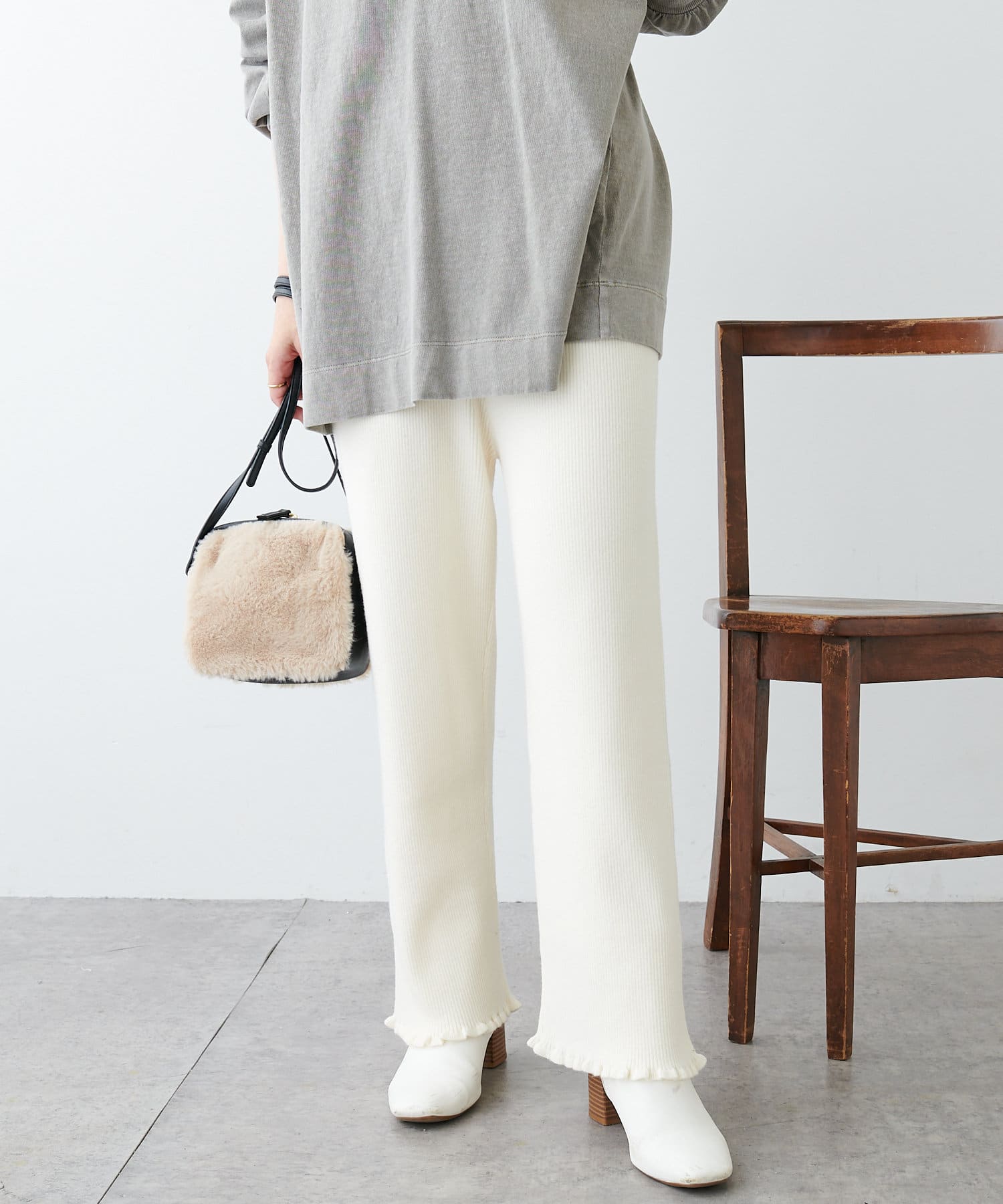 ◇ プチフリルがポイント◎着回し力抜群のリブニットパンツ ◇