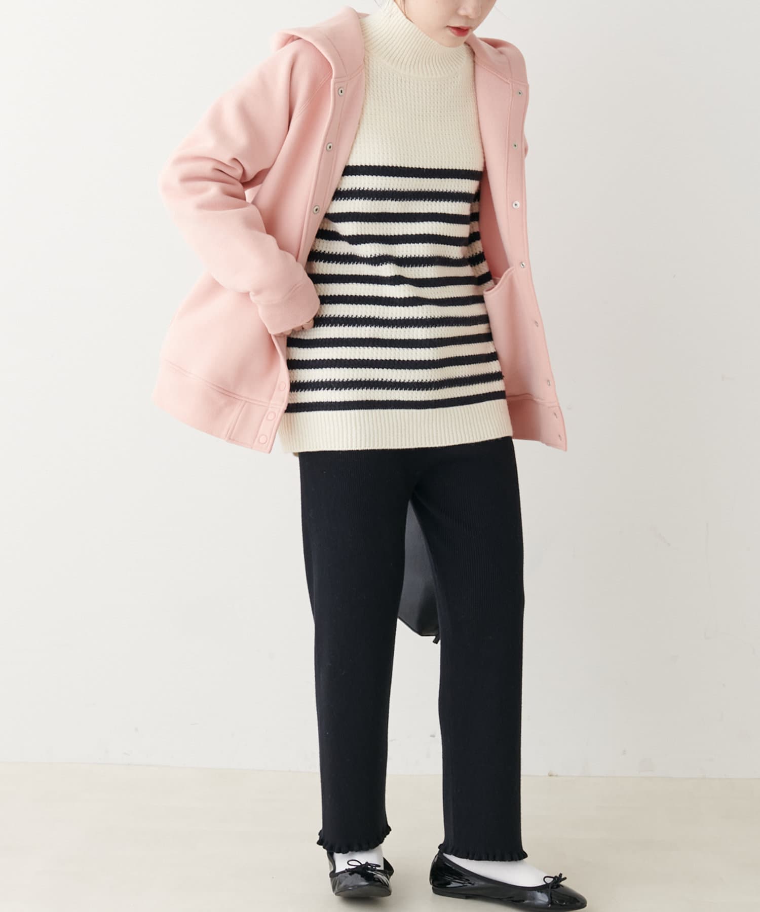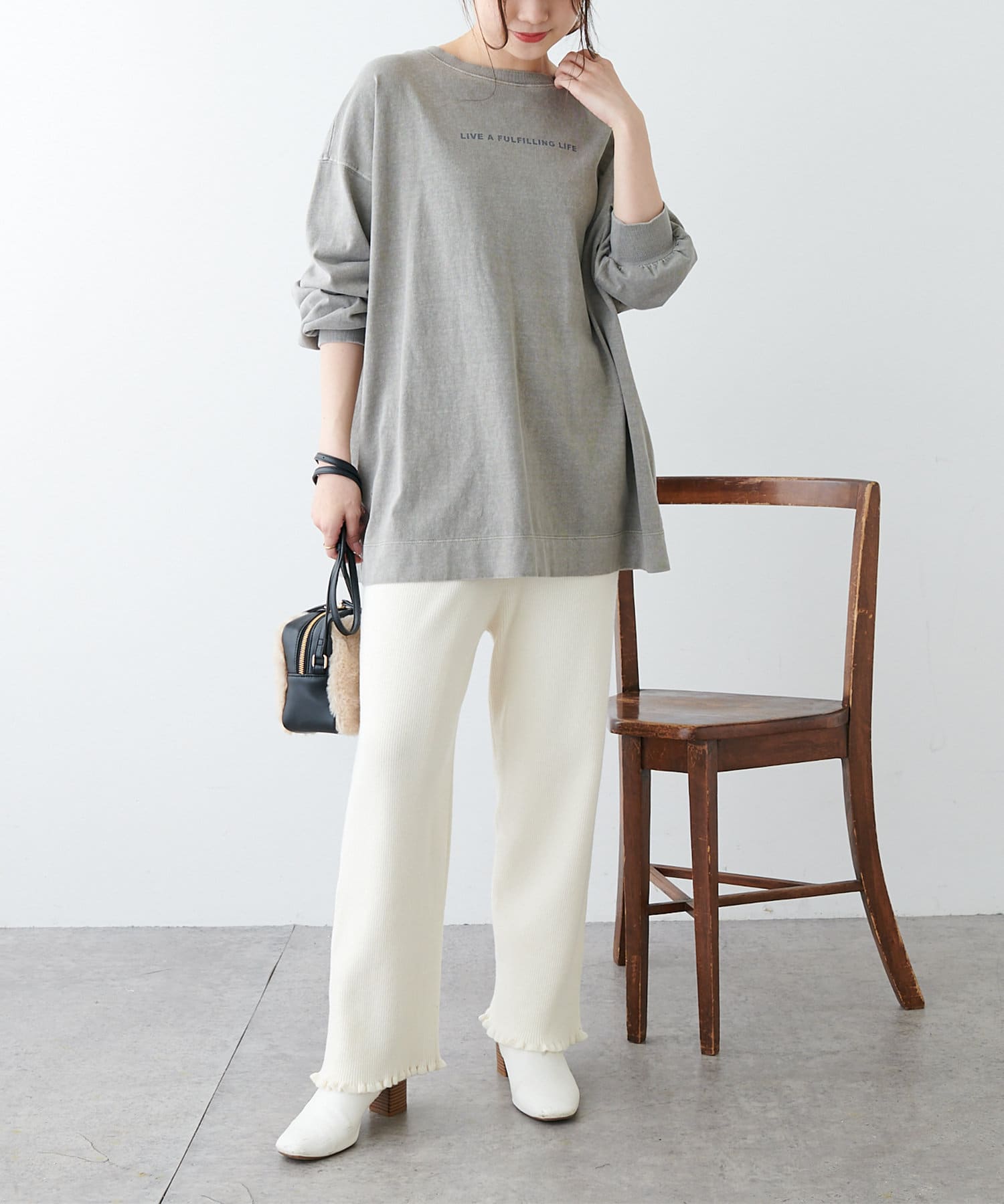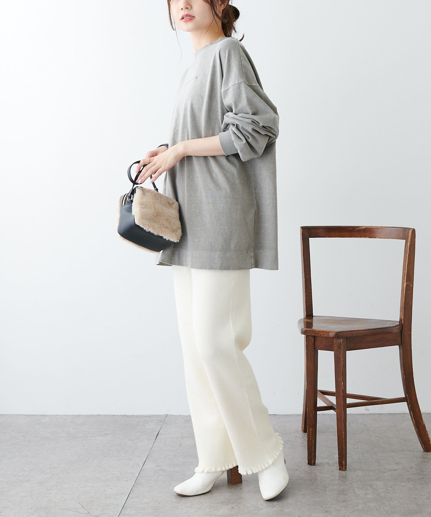 ウエストと裾にはフリルデザインが施され、アクセントに。ピュアルセシンならではの他にはないリブニットです。