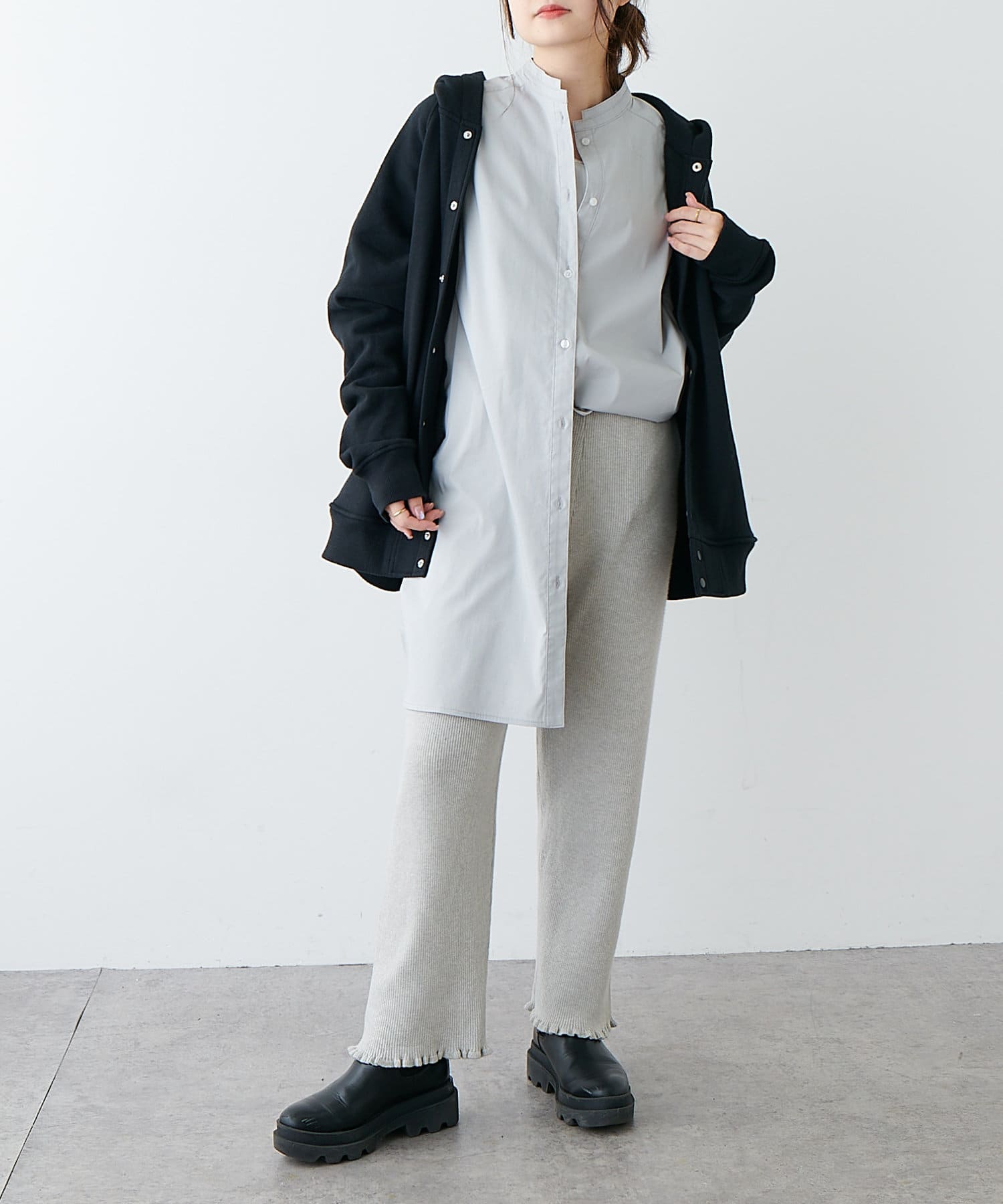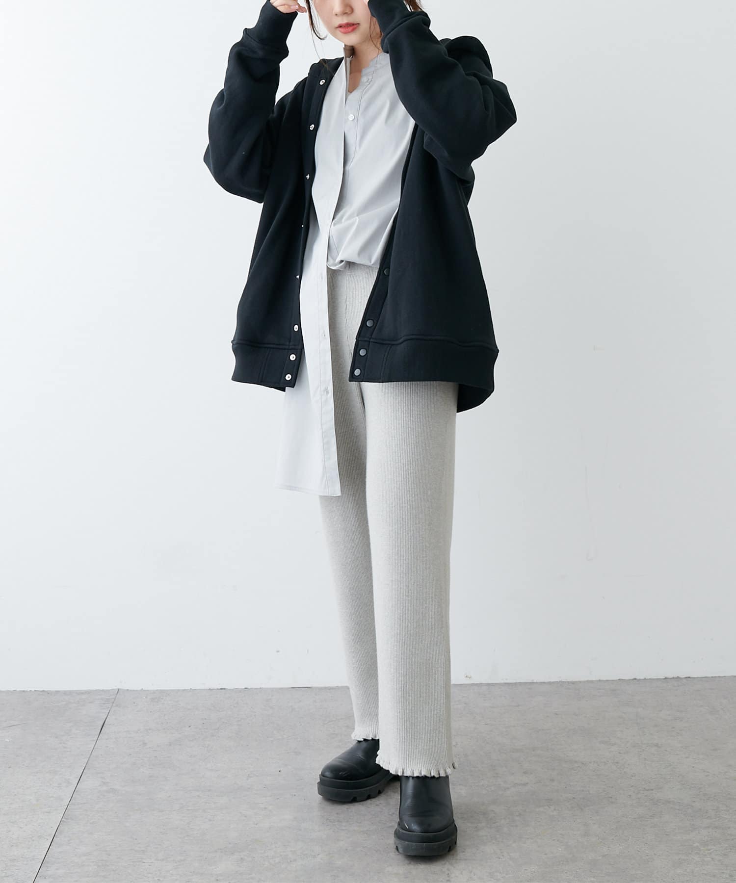 シーズンレスで楽しめるリブパンツは、合わせるトップスを選びません。