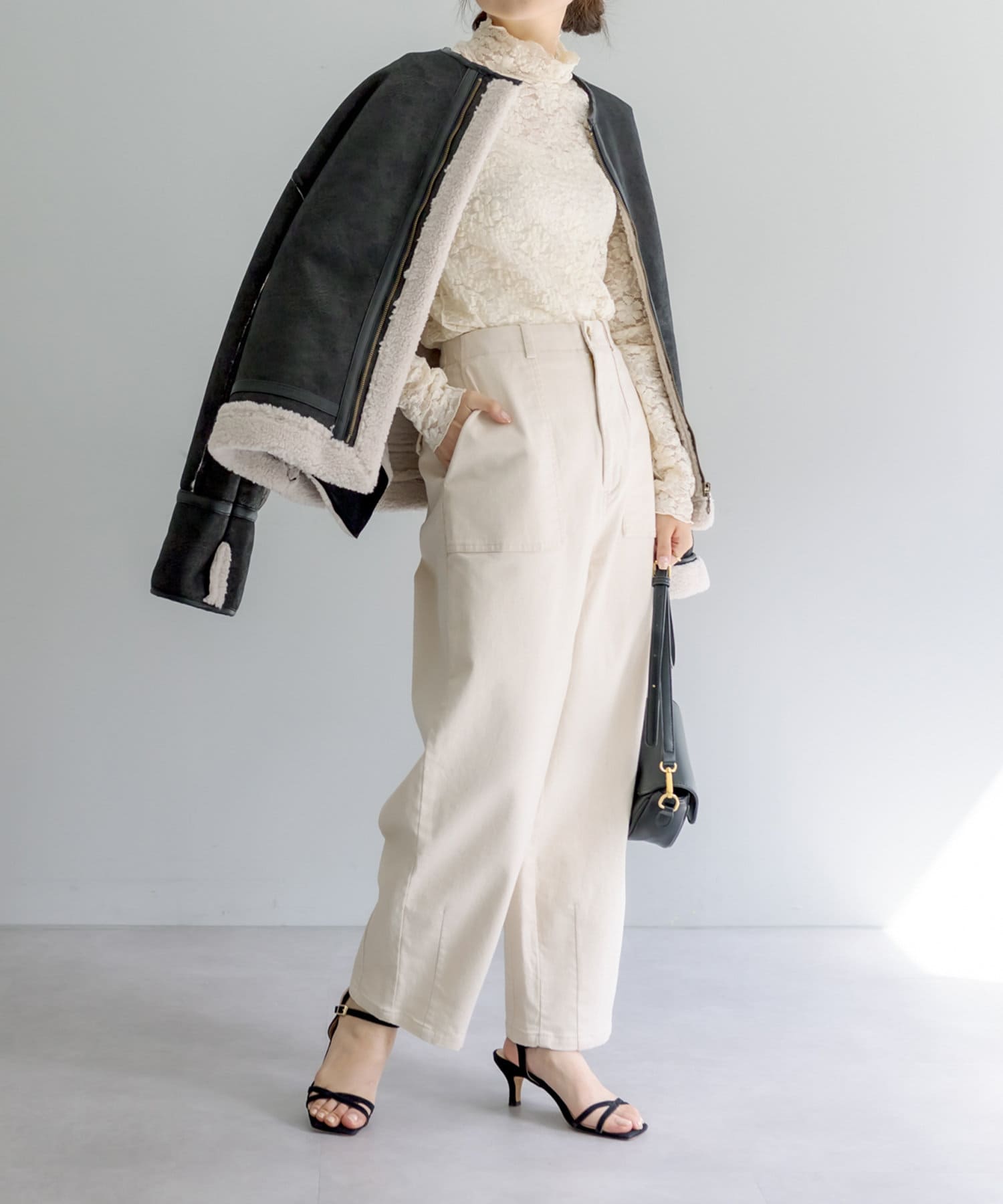 素材感:伸縮性があり、デイリーに着まわせるイージーな素材感。