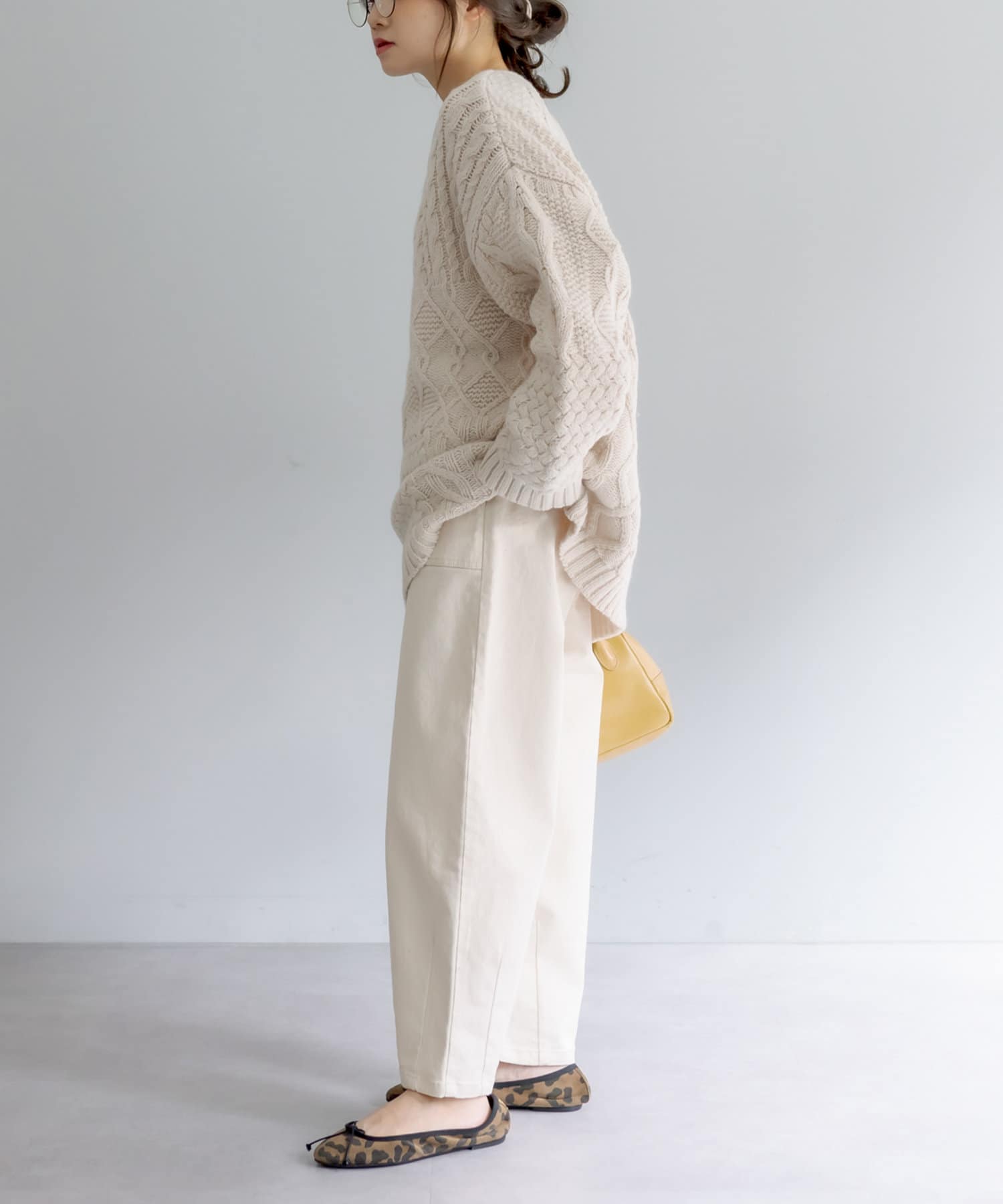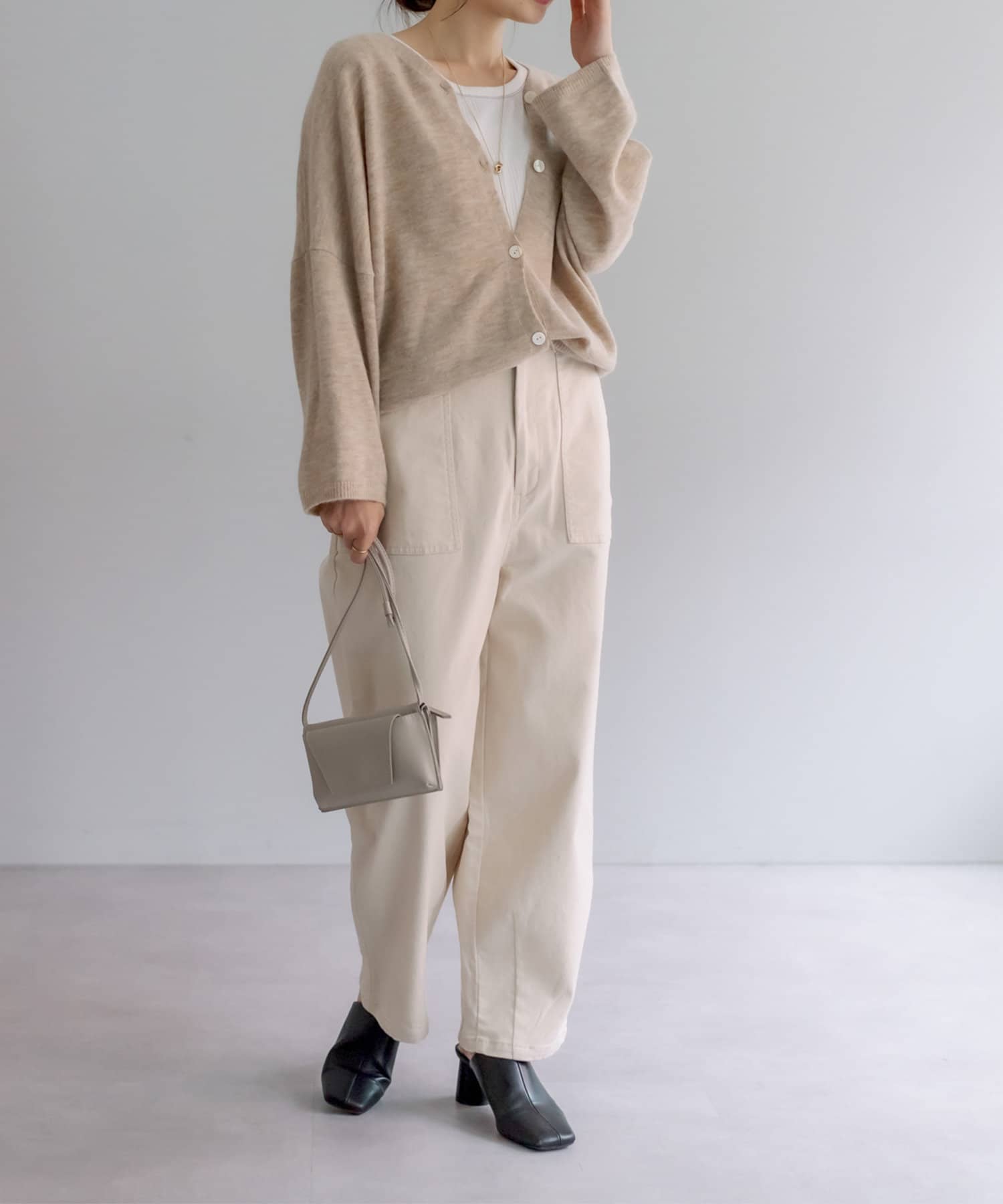 脚のラインを拾わないコクーン型で、バランスの良い着こなしを実現します。