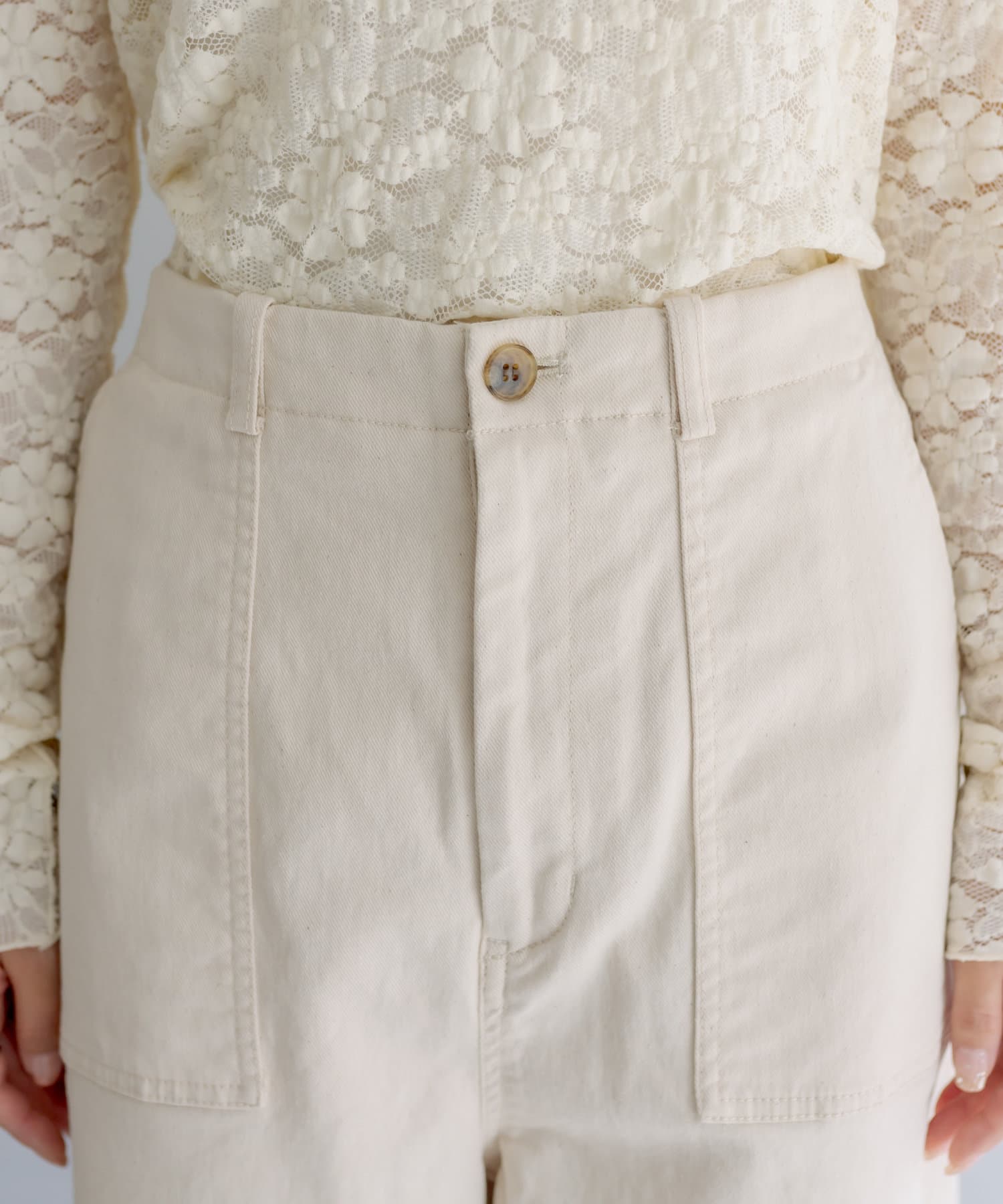 やや厚みがありますが、デニム程ハリ感が無いのでリラクシーな穿き心地です。