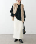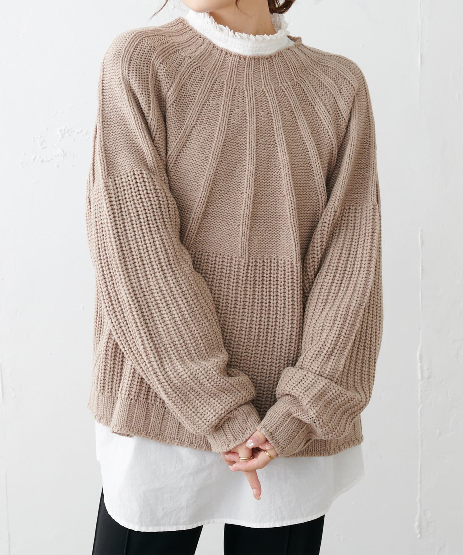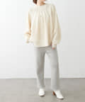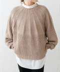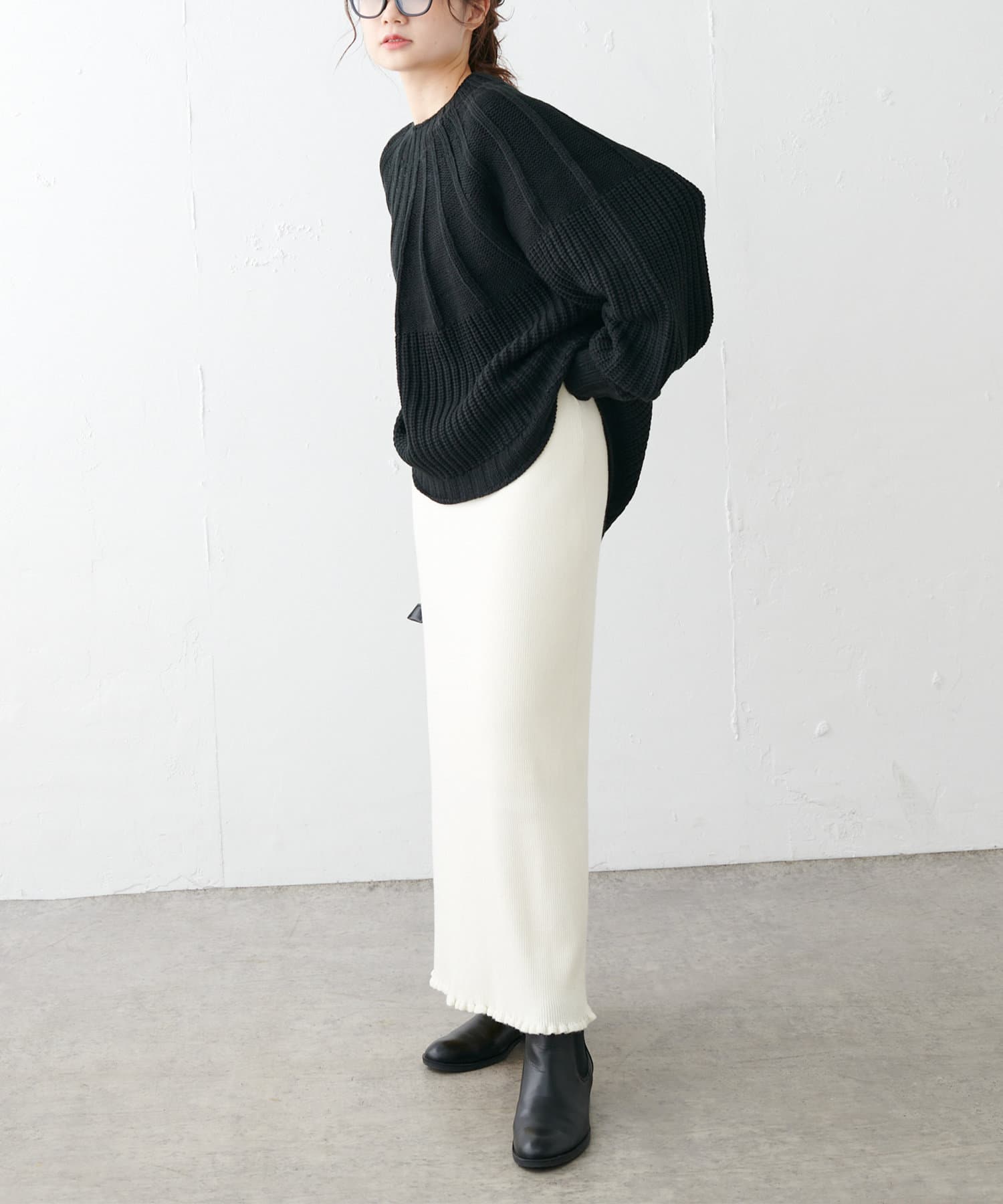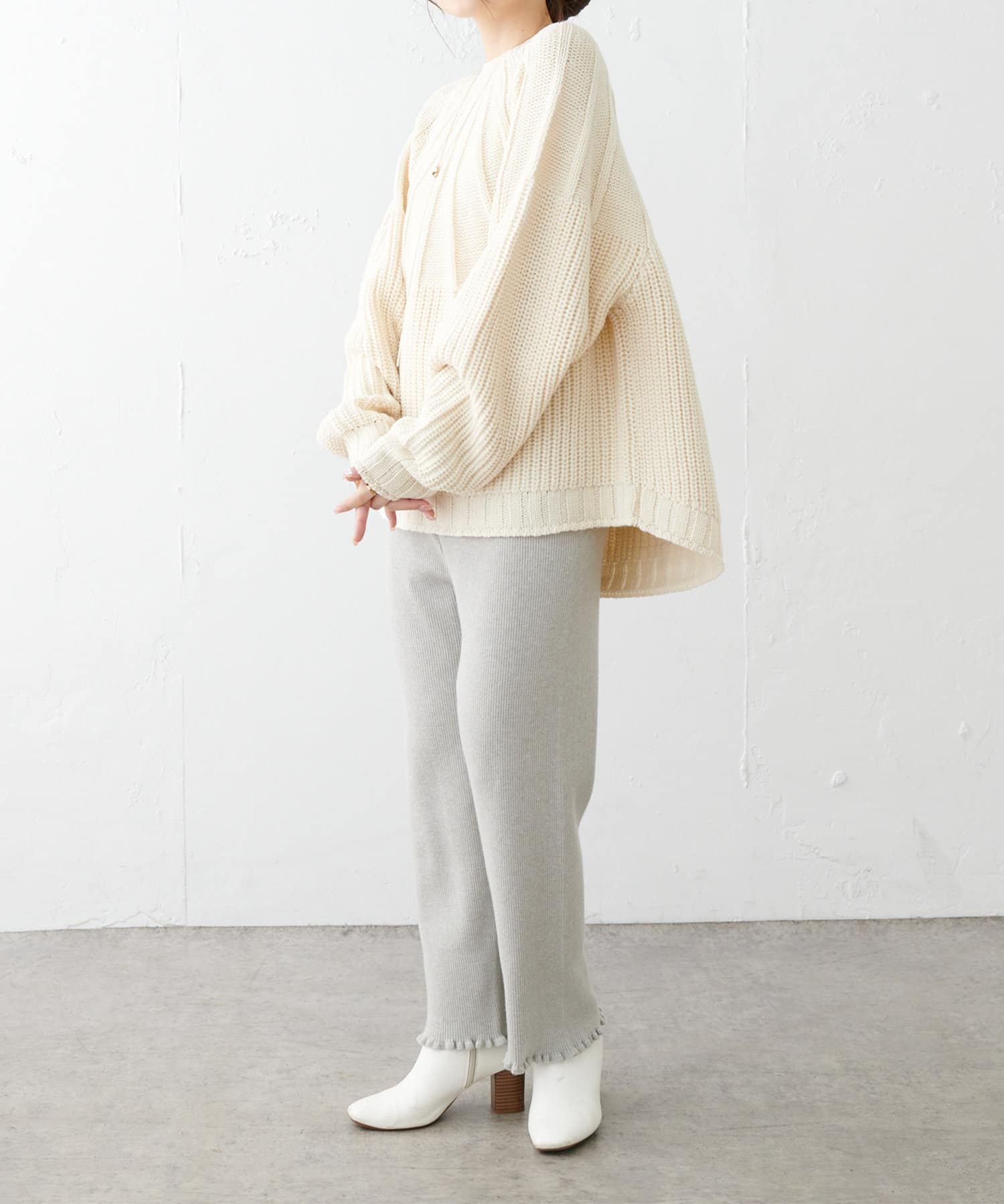 ボトムスを選ばないミドル丈に、ふっくらボリューム感が可愛らしいニットです。