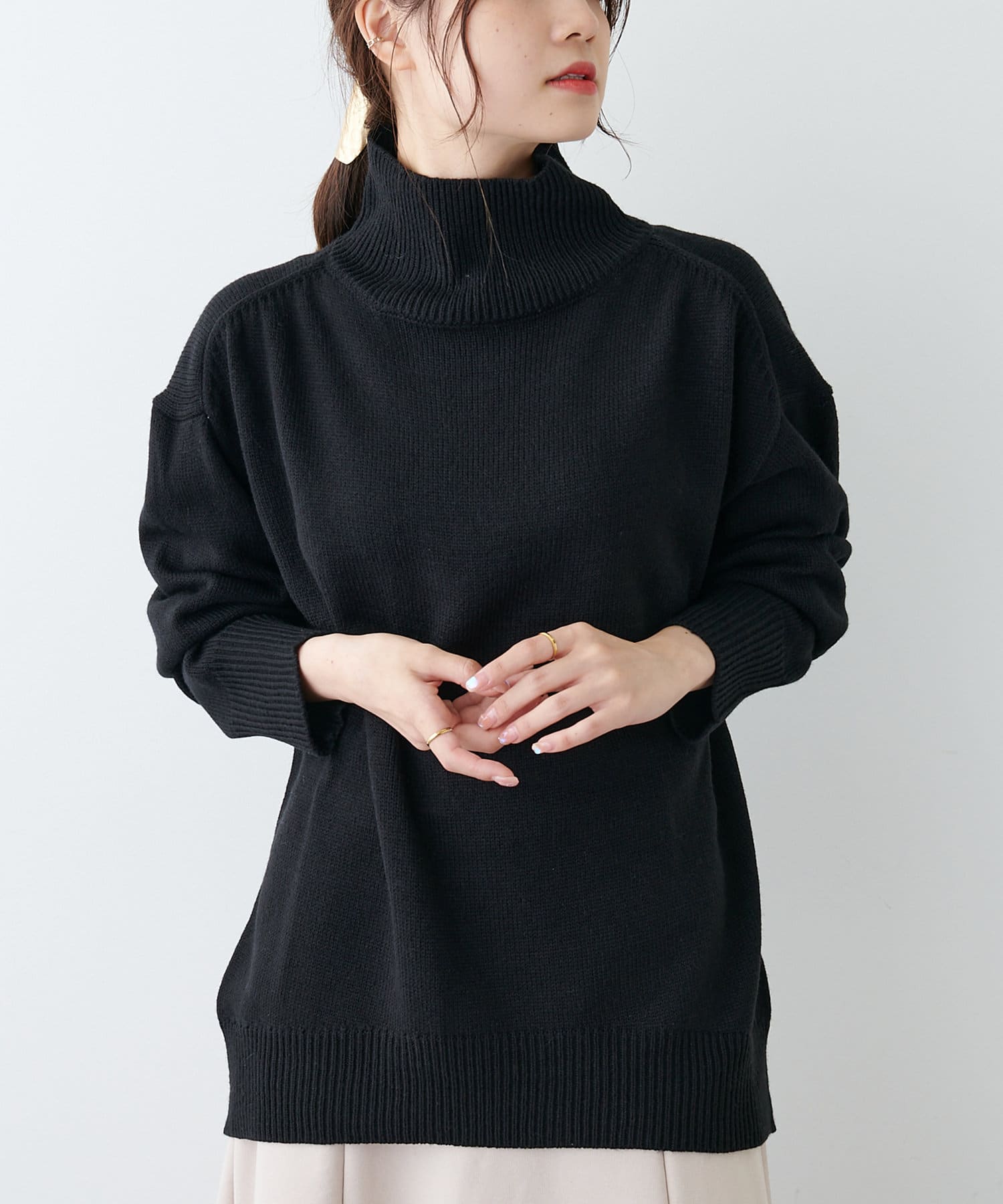 【Du noir】ウォッシャブルニットハイネックプルオーバー