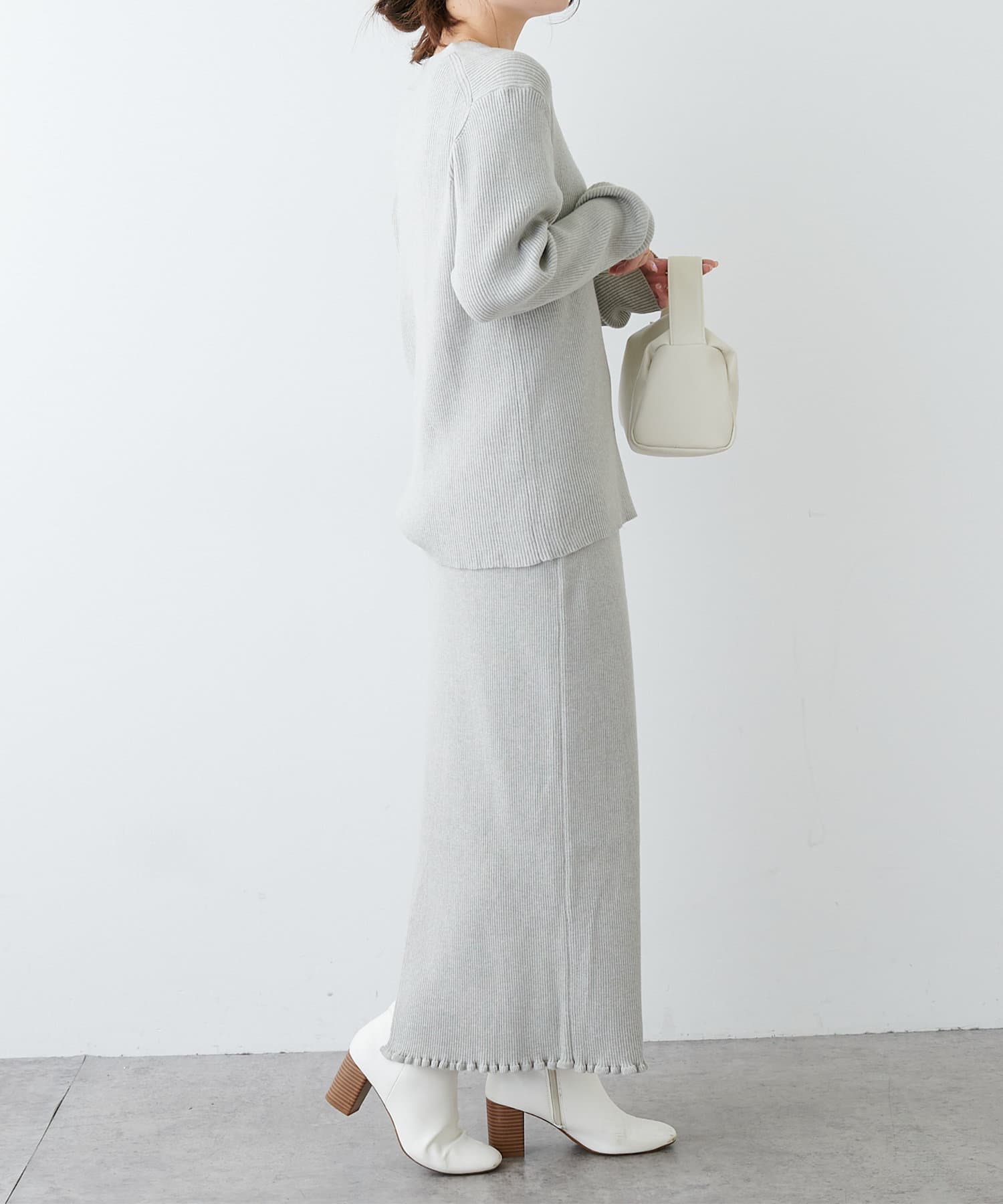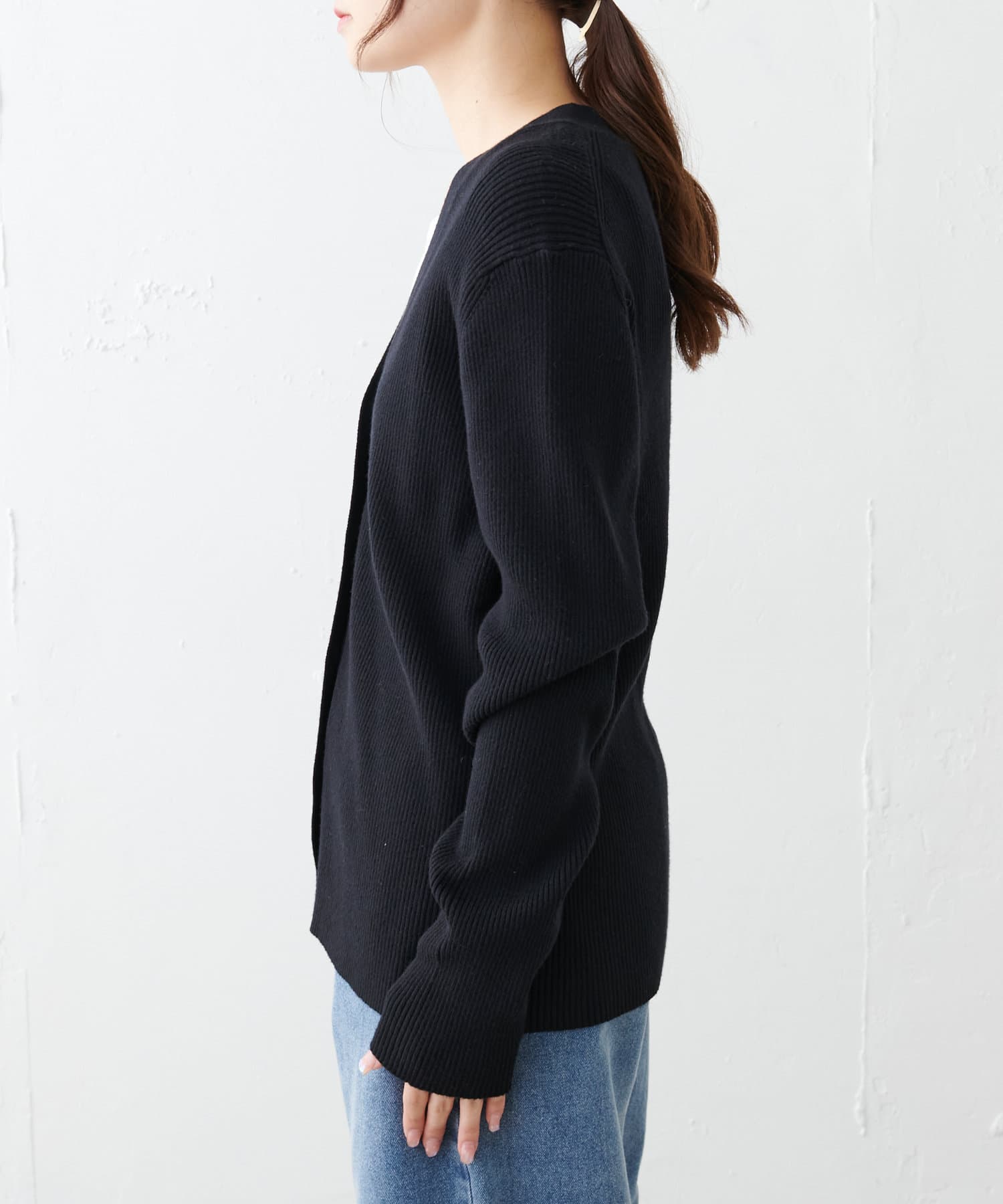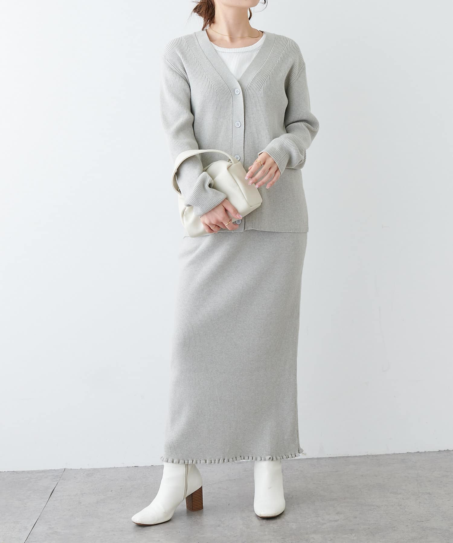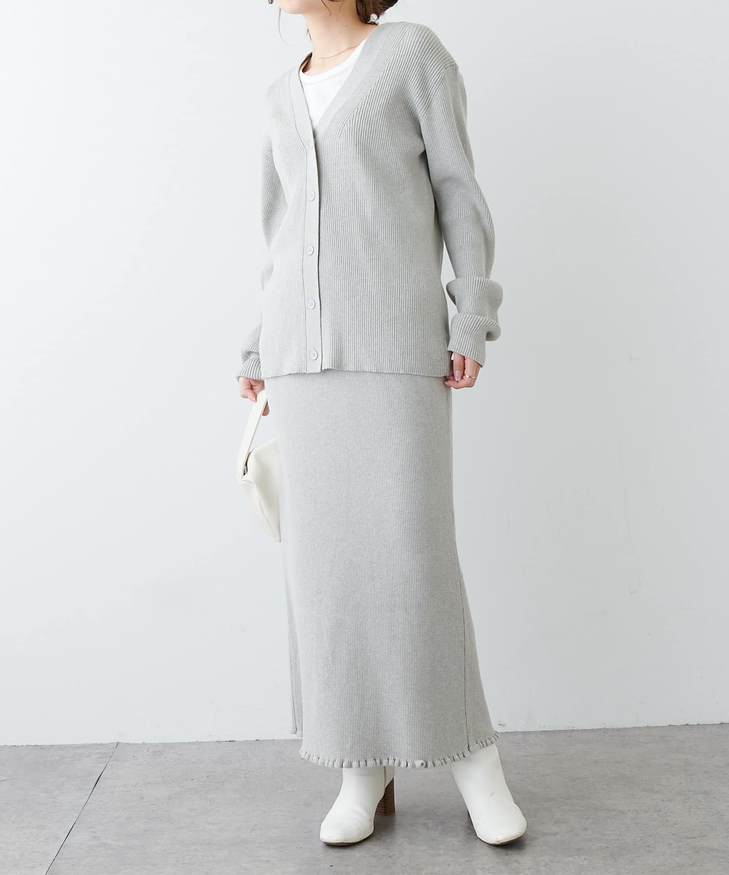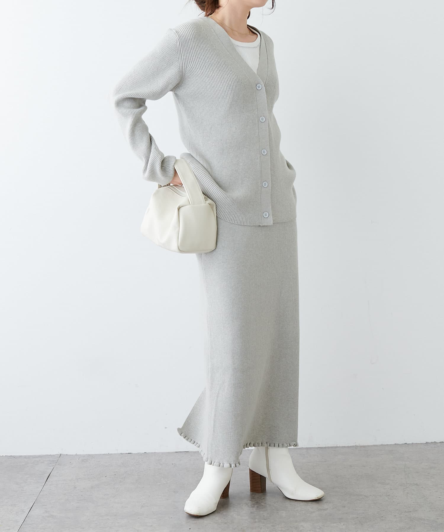 スッキリした身幅なので、冬はアウターの中にインナーカーディガンとしてコーディネートが楽しめます。