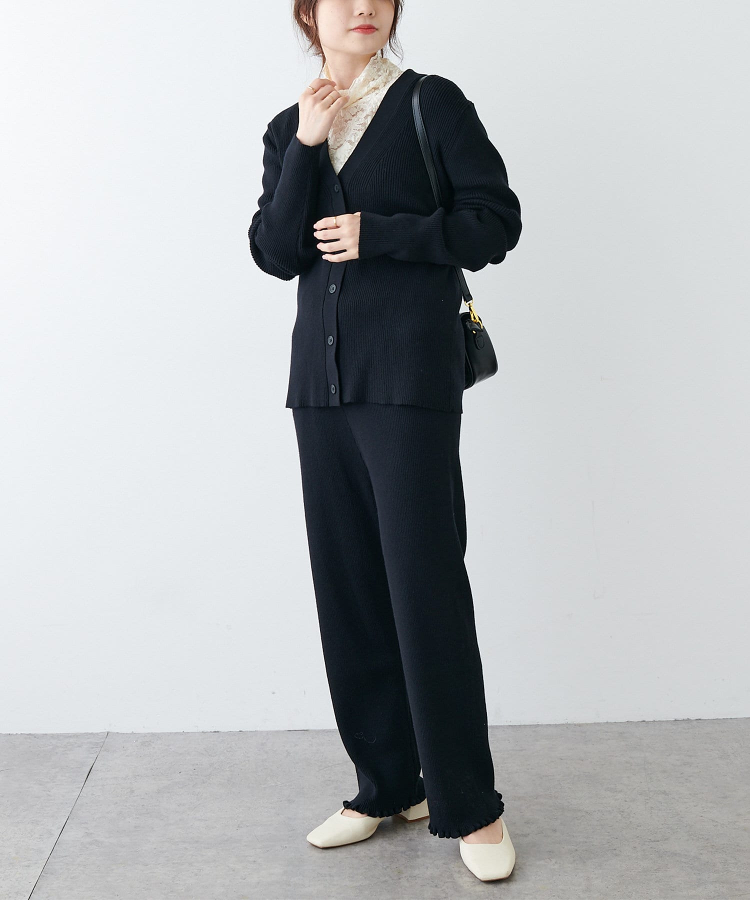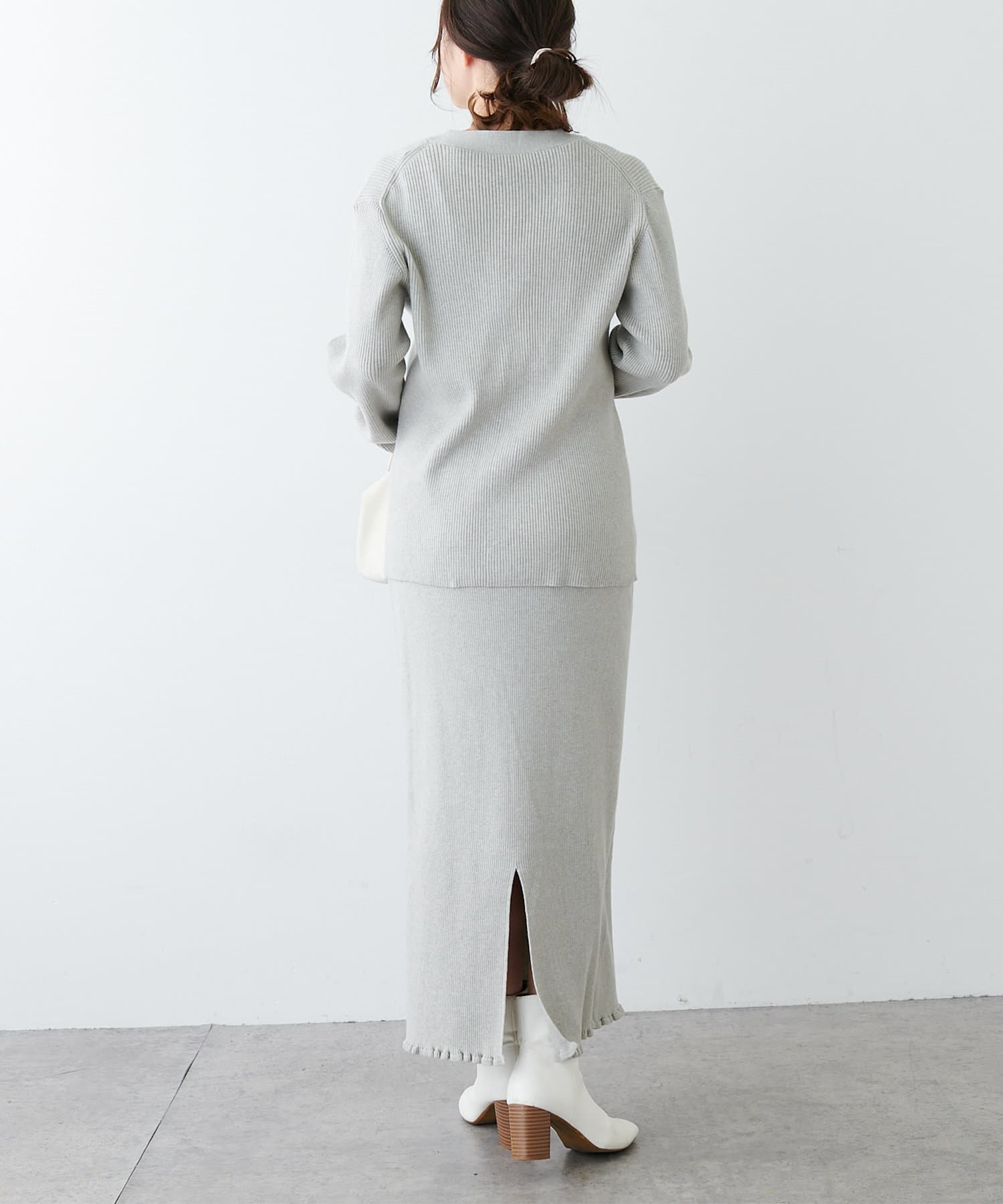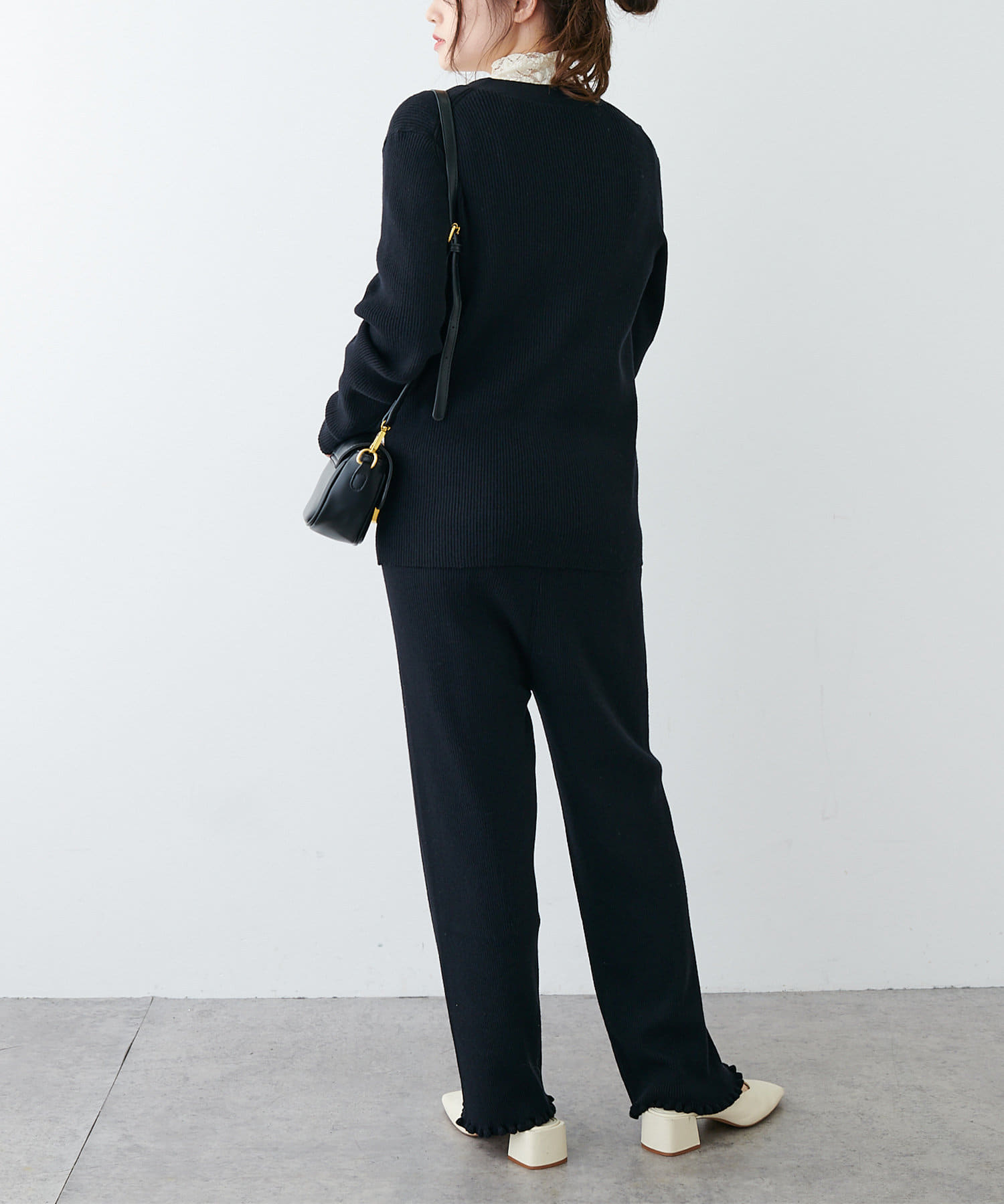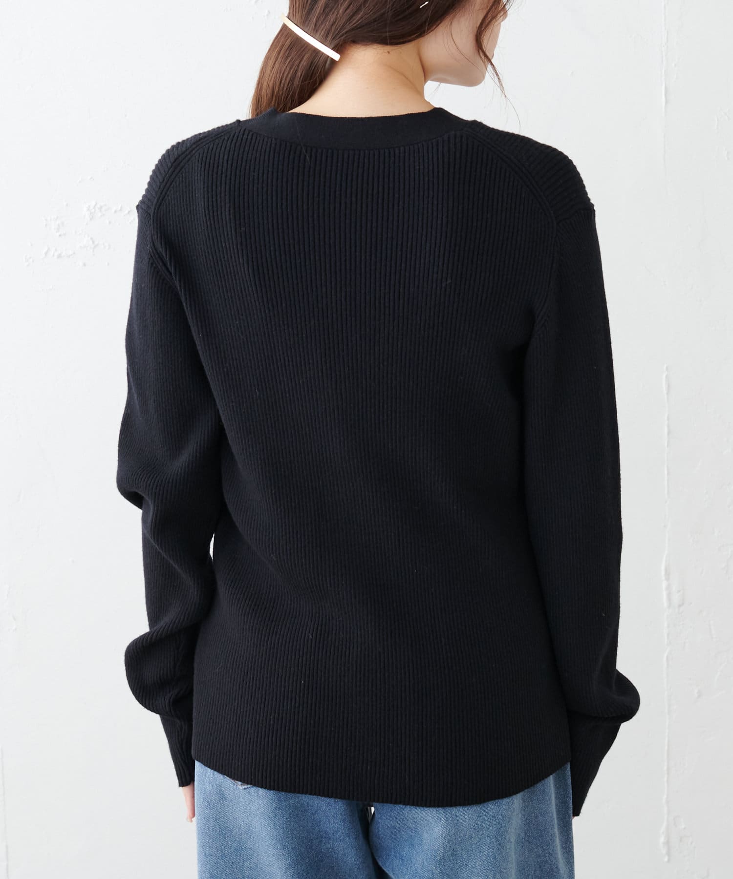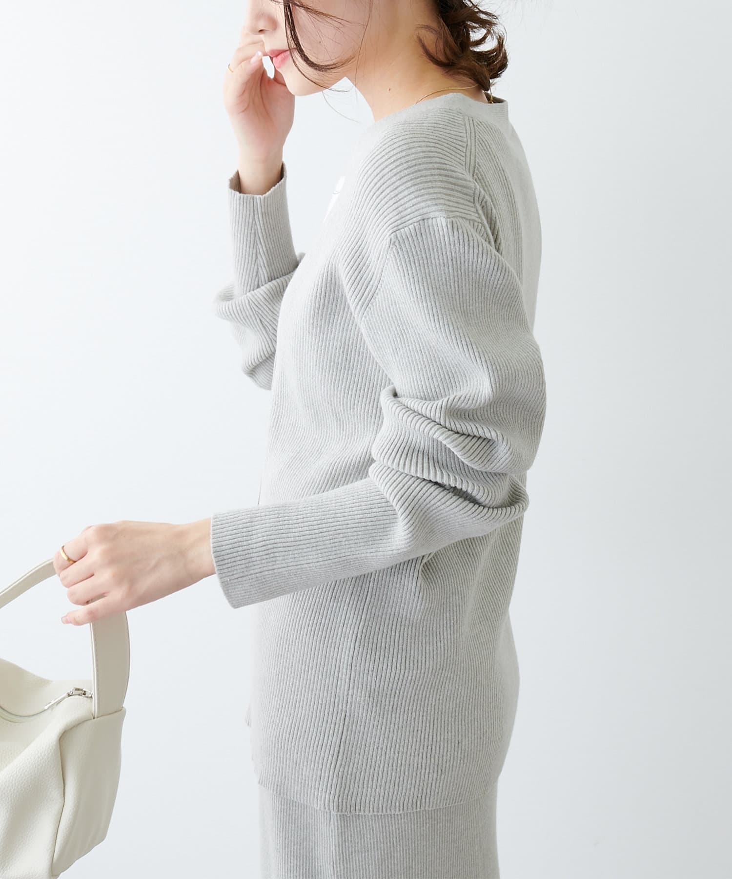 リブニット特有の細かい縦ラインが入っており、着やせ効果もアリ。