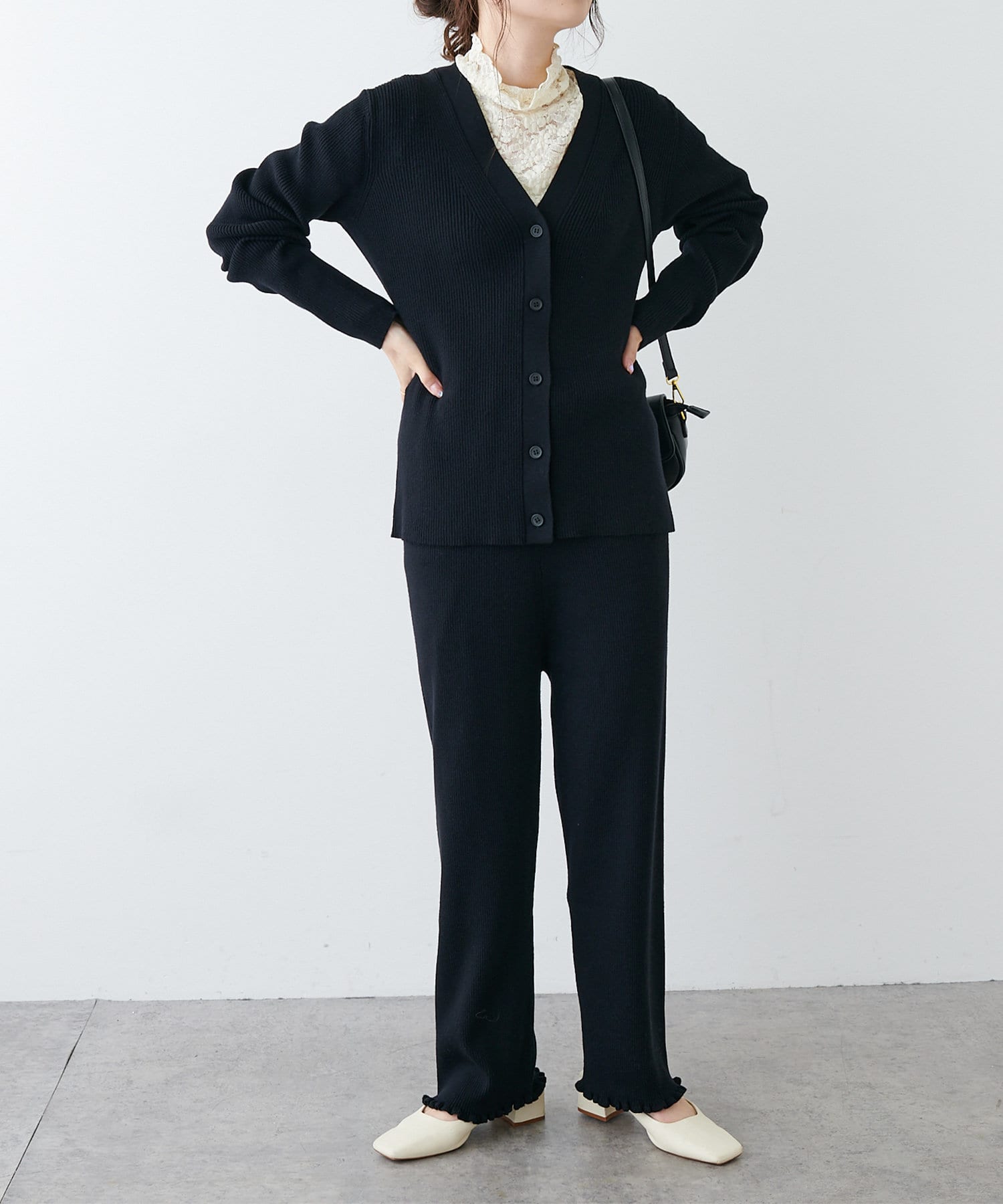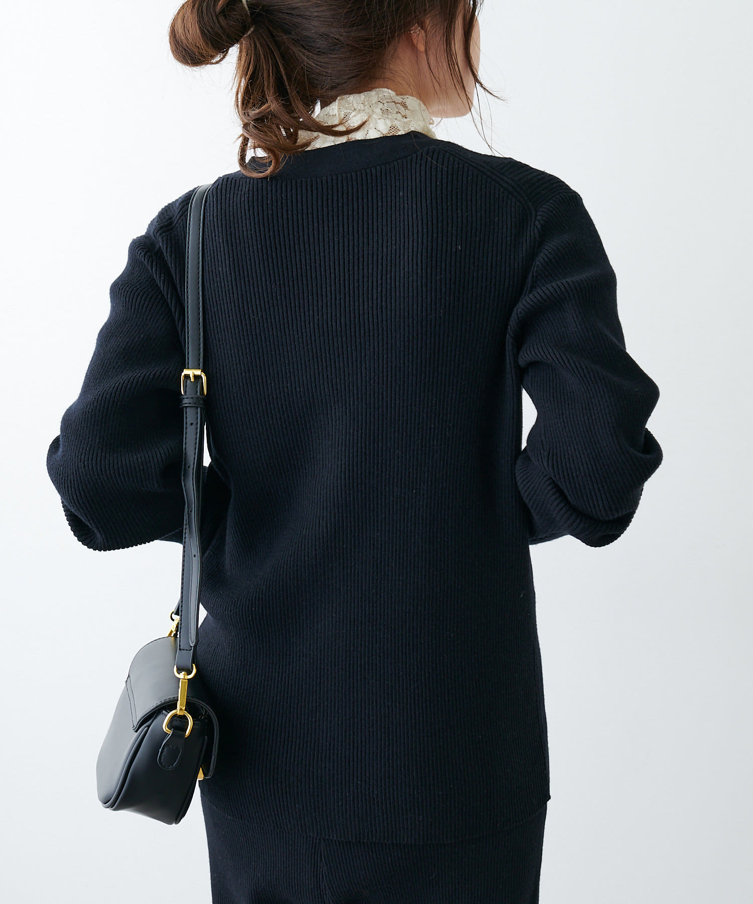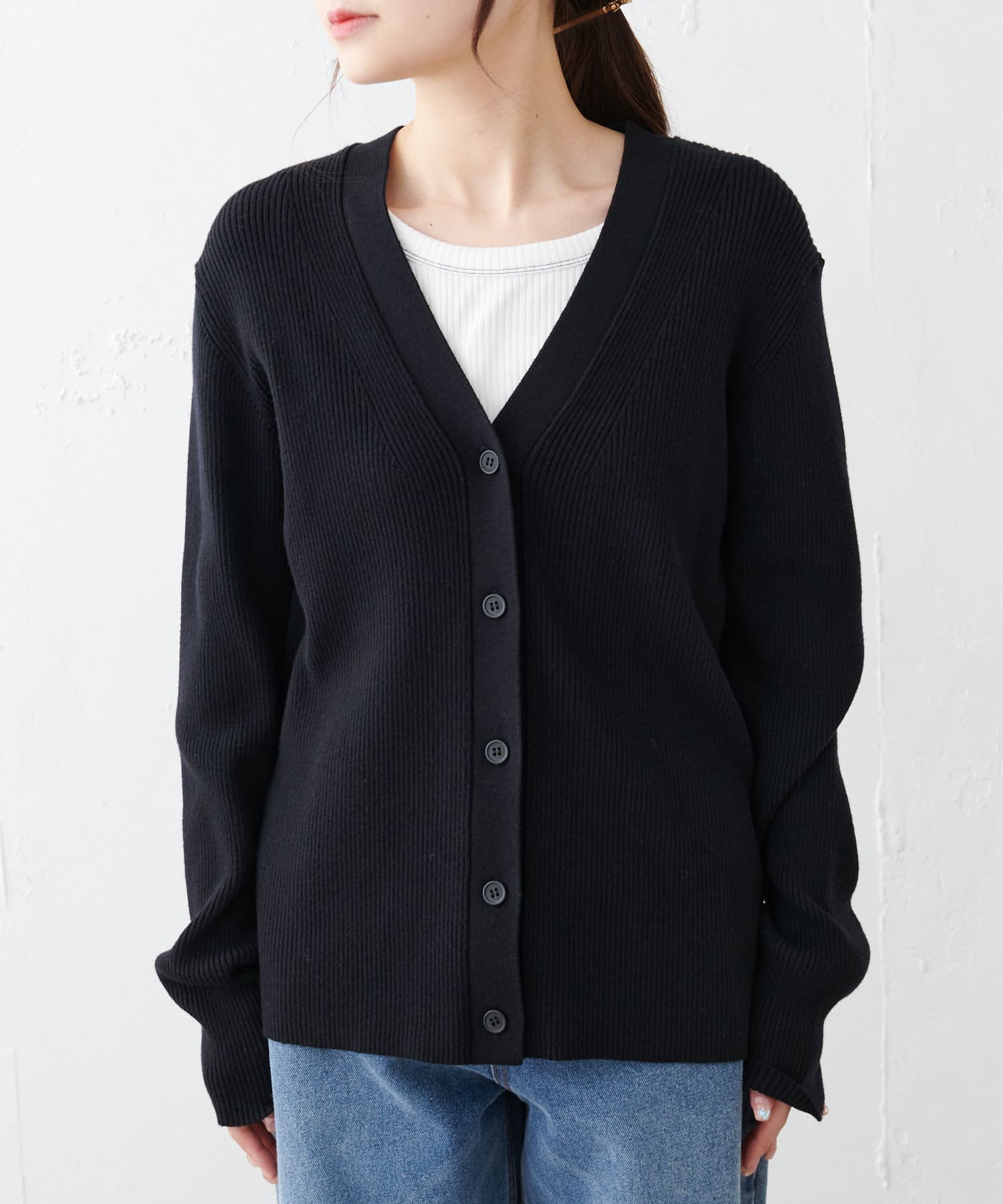 首元をスッキリみせてくれるVネックカーディガンは、秋冬の強い味方。