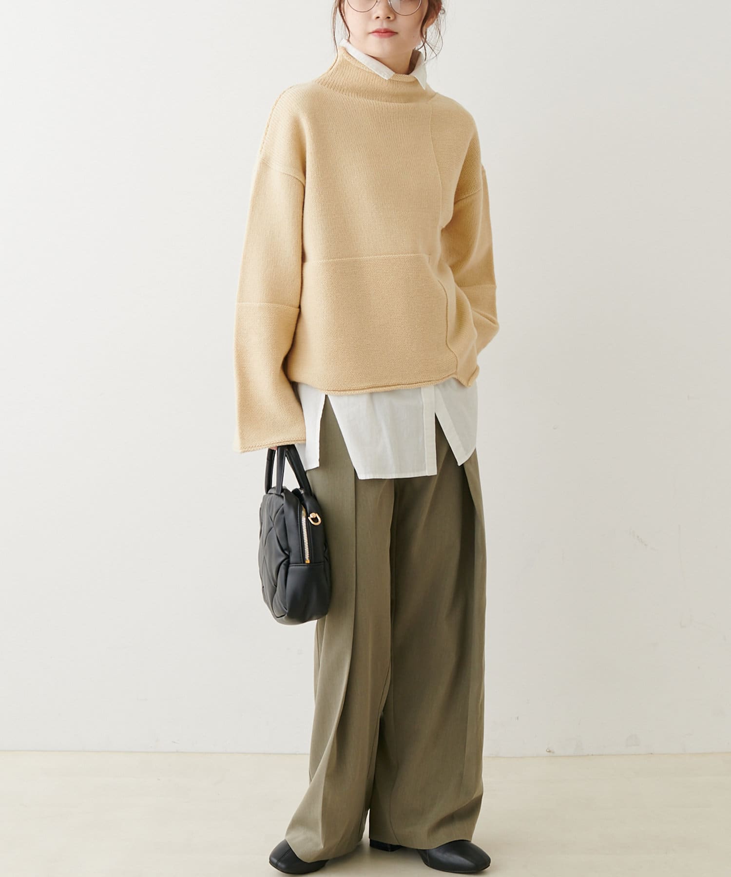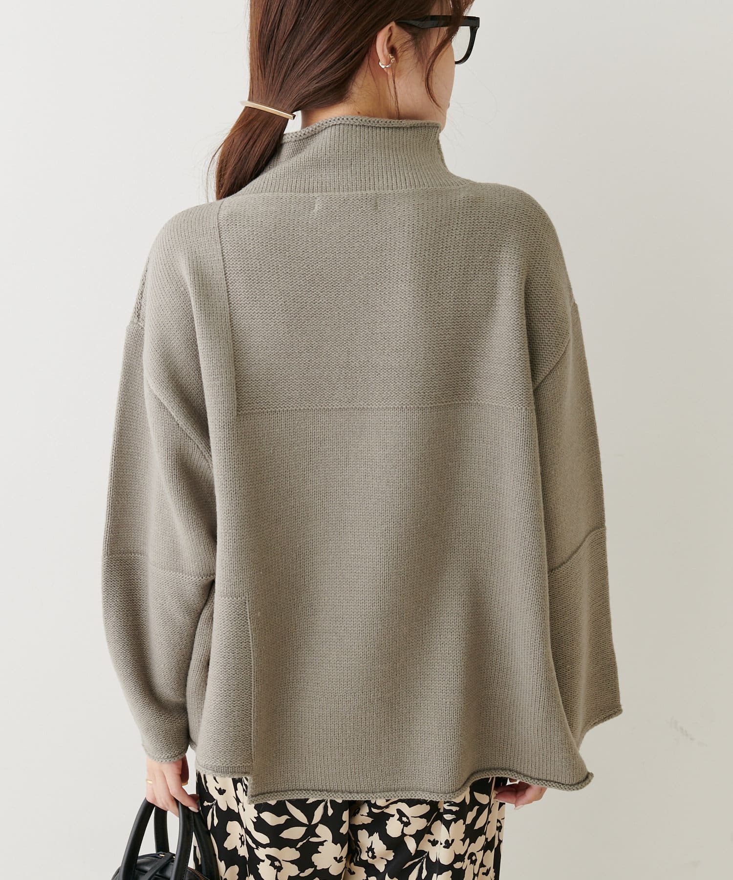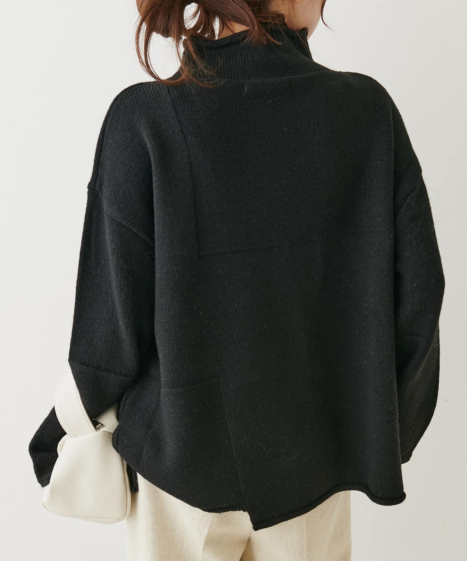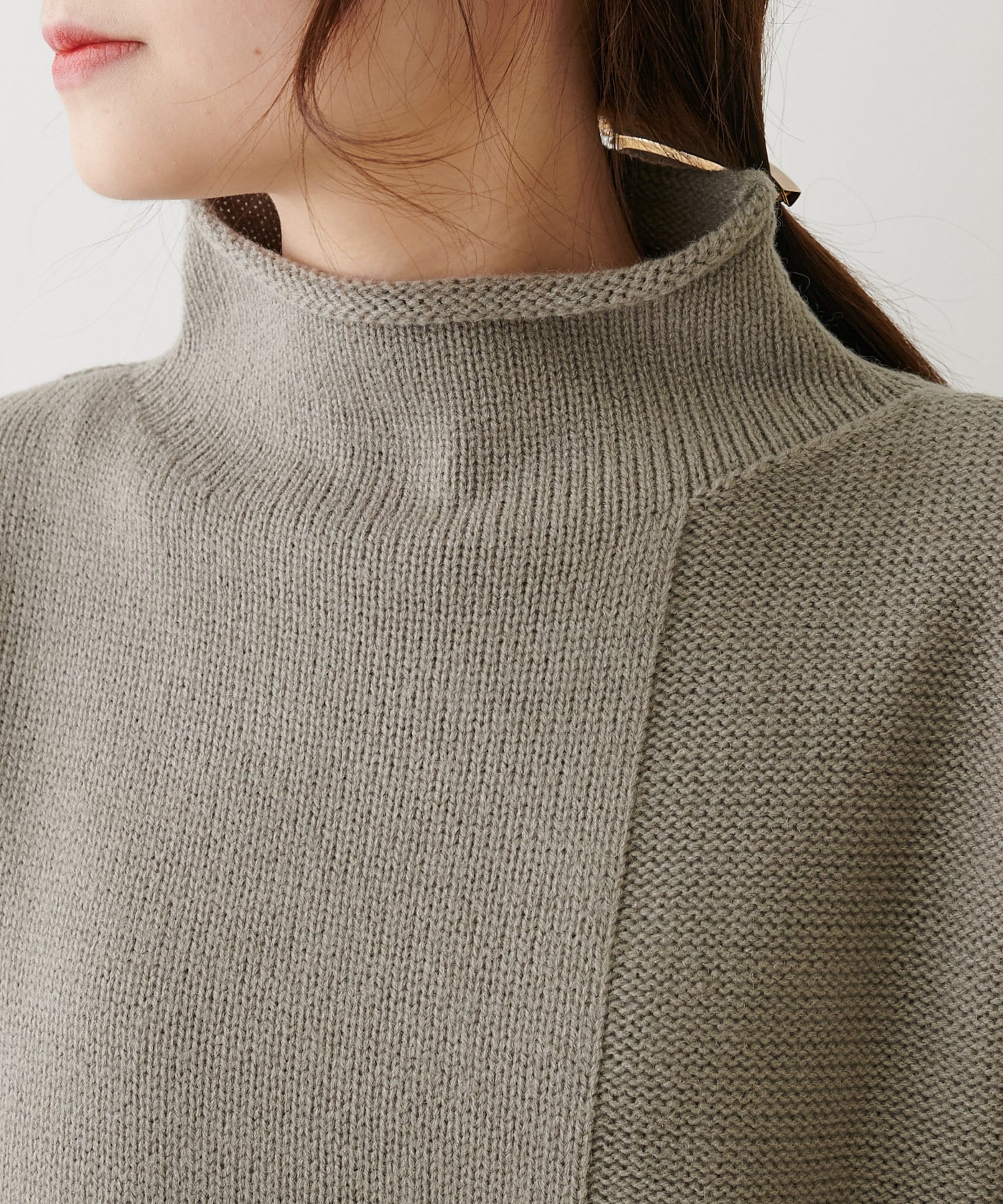 ボトルネックなので首周りにゆとりがあり、程良い高さなのでハイネックが苦手な方でも着やすいデザインに仕上げました。