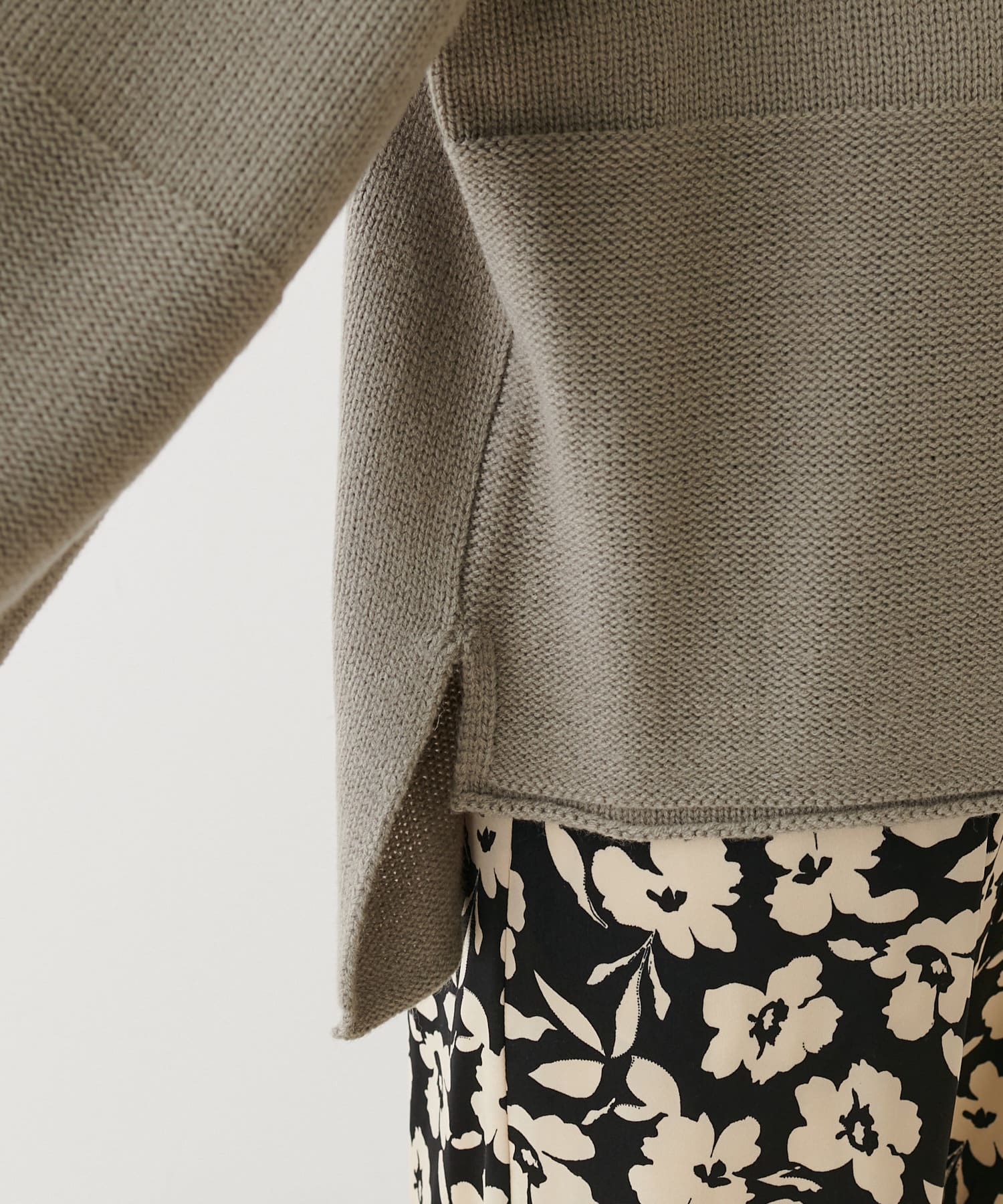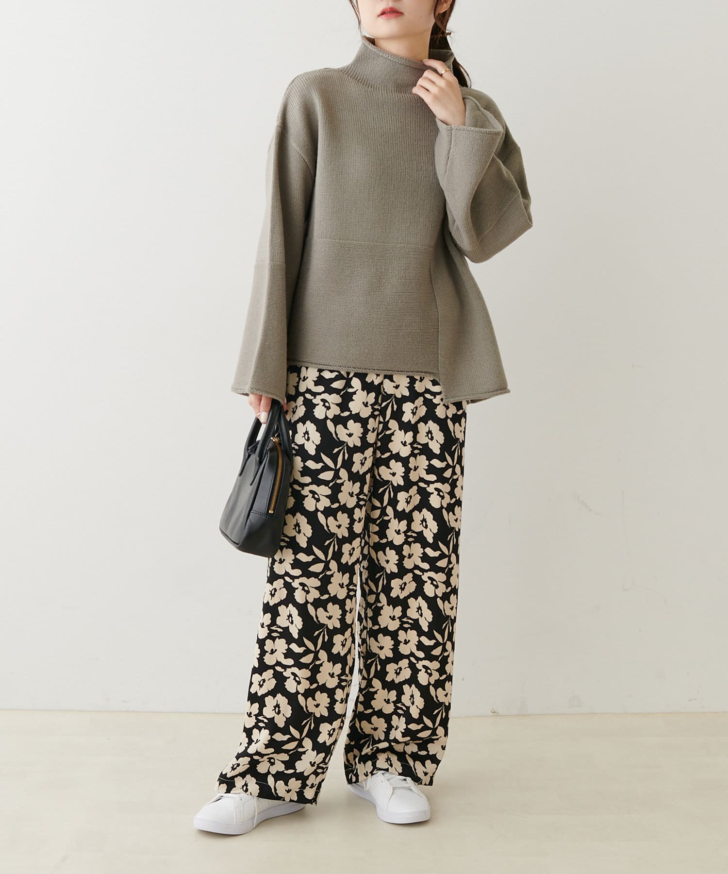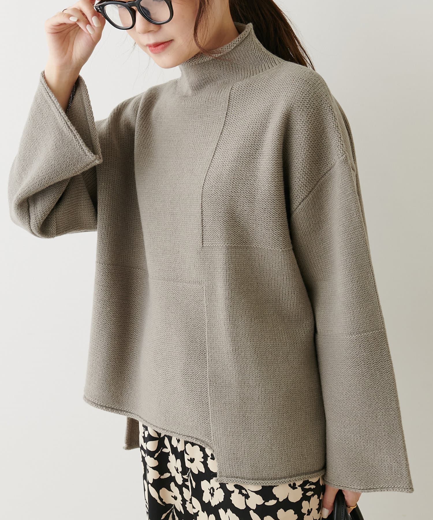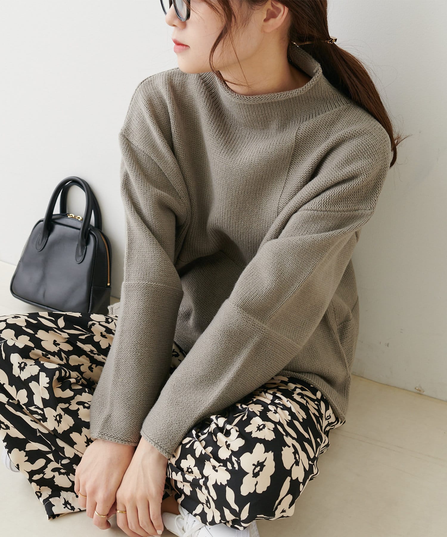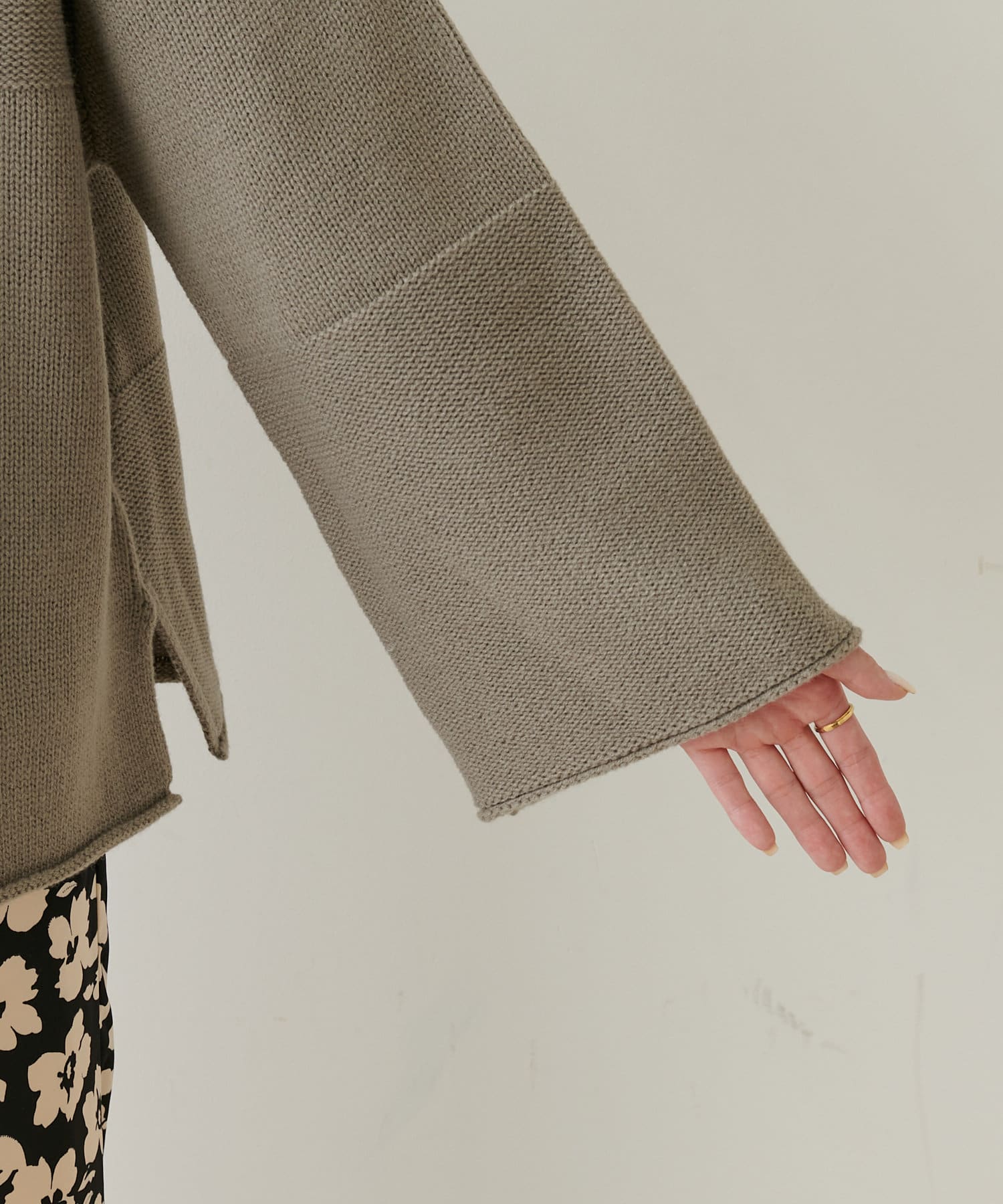 袖を幅広にする事で抜け感とルーズさが大人見えするニットです。