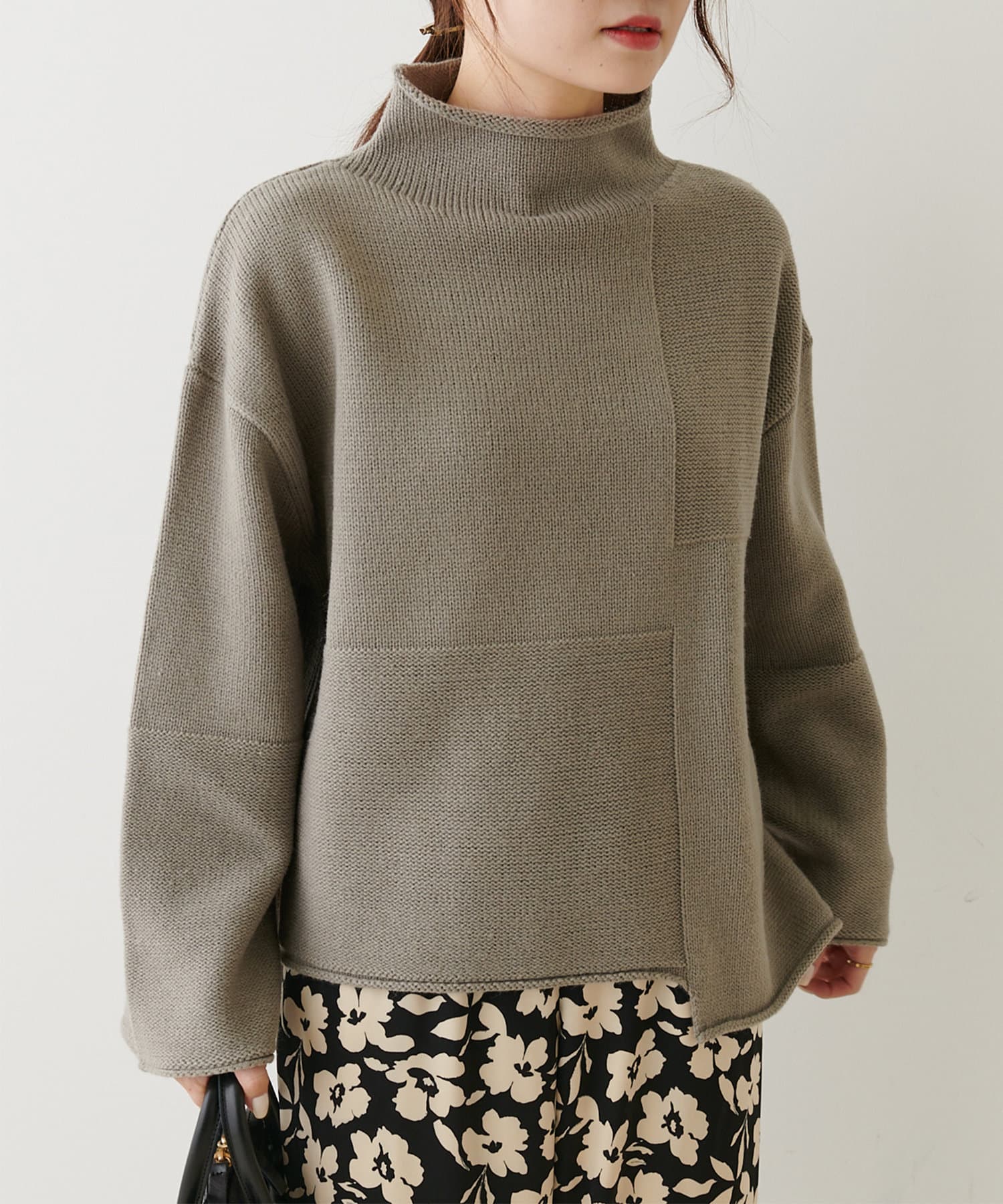 【Du noir】パッチワーク風ハイネックニットプルオーバー