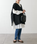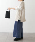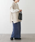 やや大きめなシルエットなので、ボトムスは細身のデニムやタイトスカートに合わせるとすっきりとまとまります。