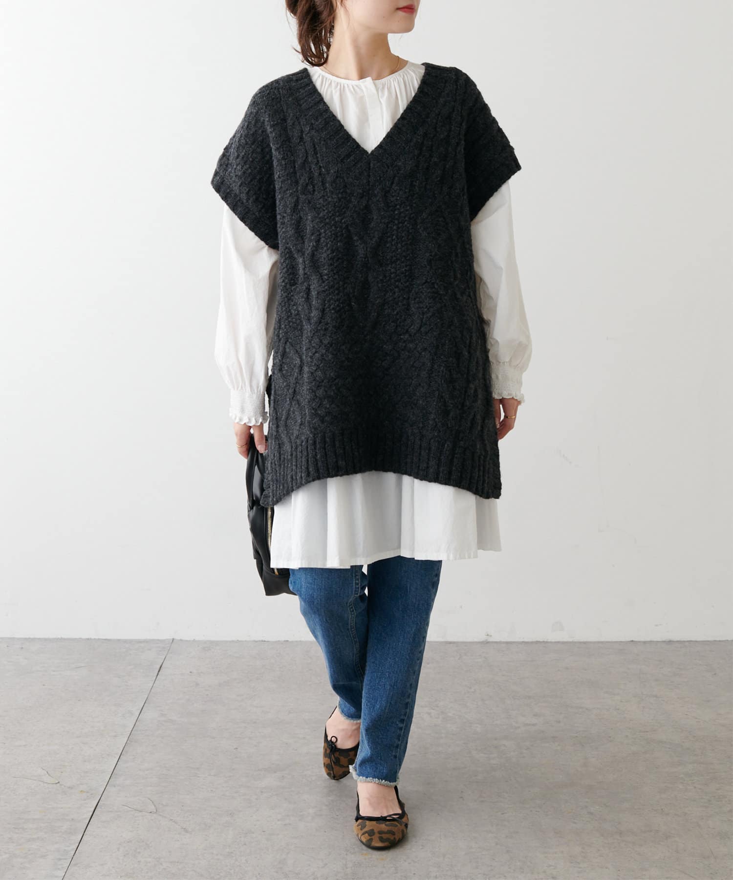 シンプルなスタイリングに重ねるだけでこなれ感が漂うアイテムです。