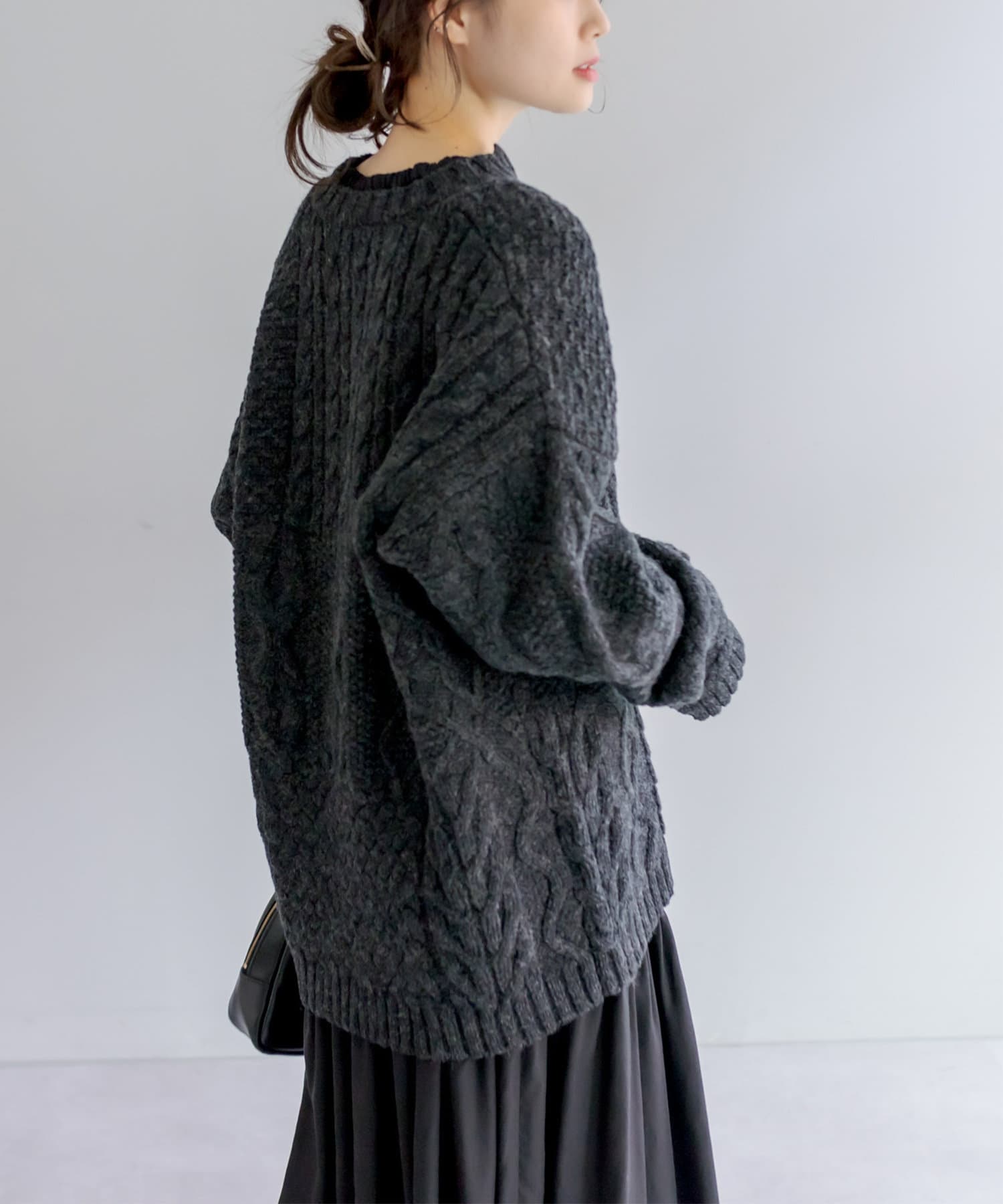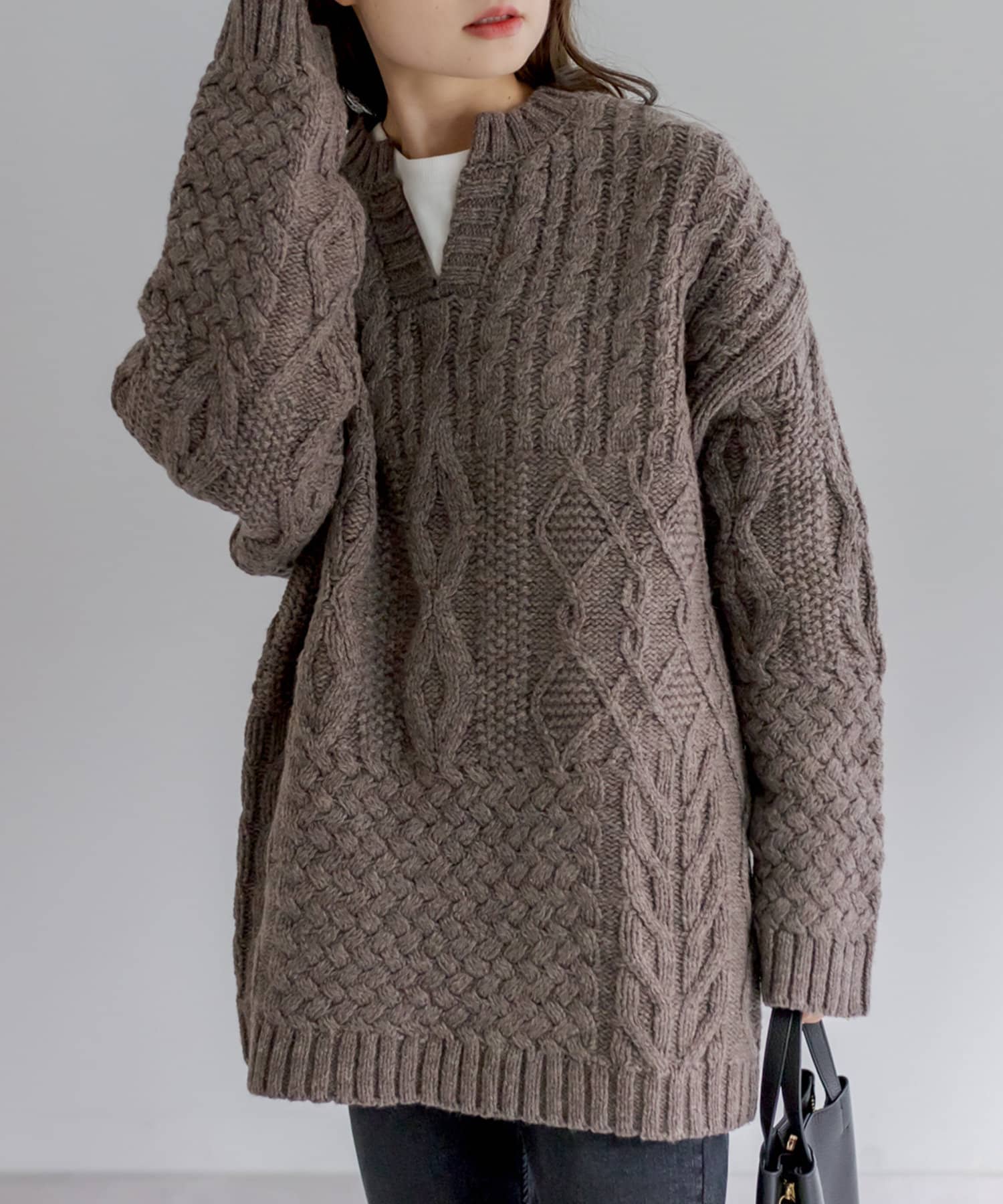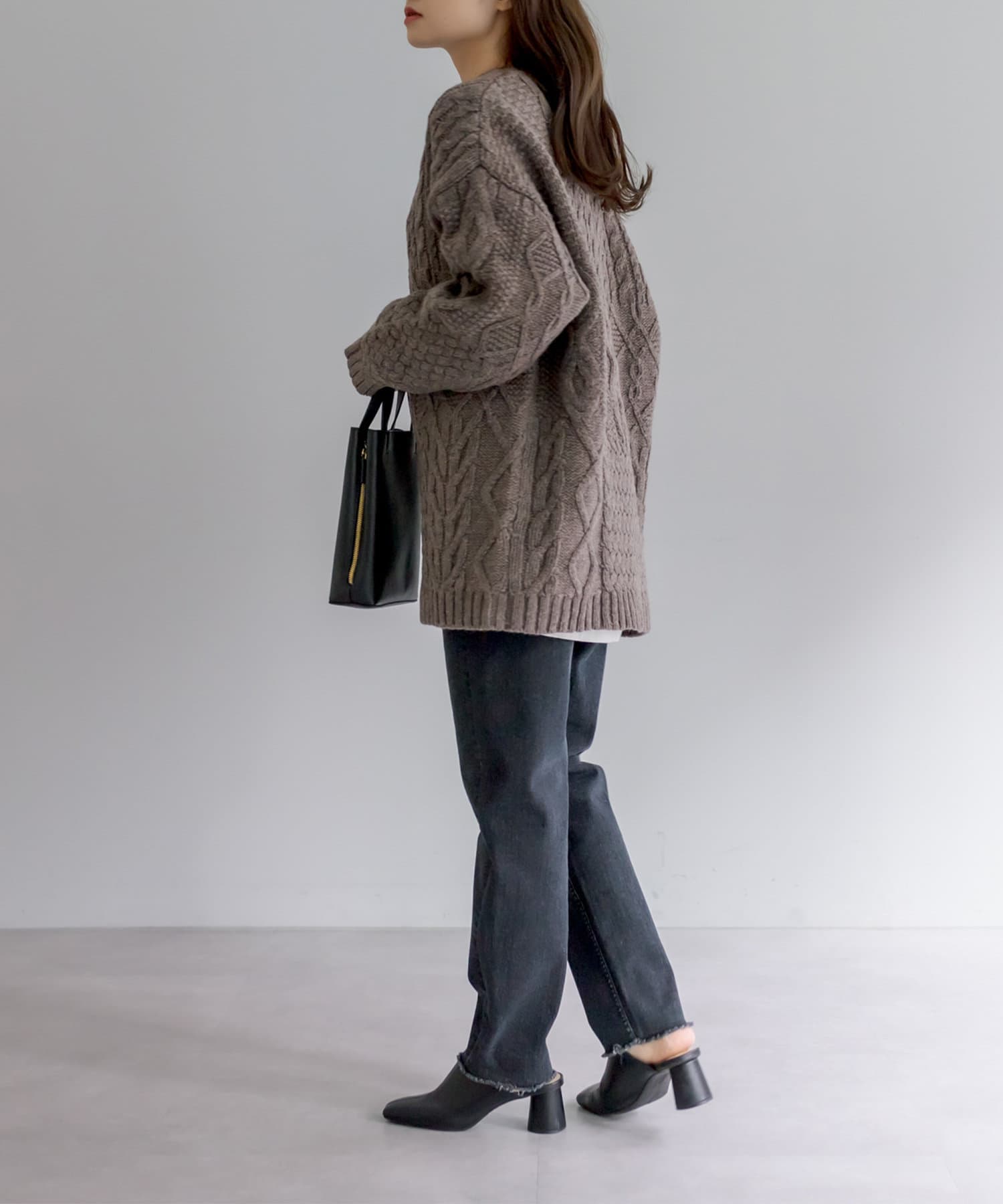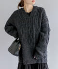 一枚でも様になるニットですが、タートルネックやカットソーと合わせれば雰囲気の違ったスタイリングが楽しめます。