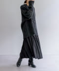 体型カバーが叶うゆとりのあるシルエットにキーネックデザインで女性らしさをプラス。