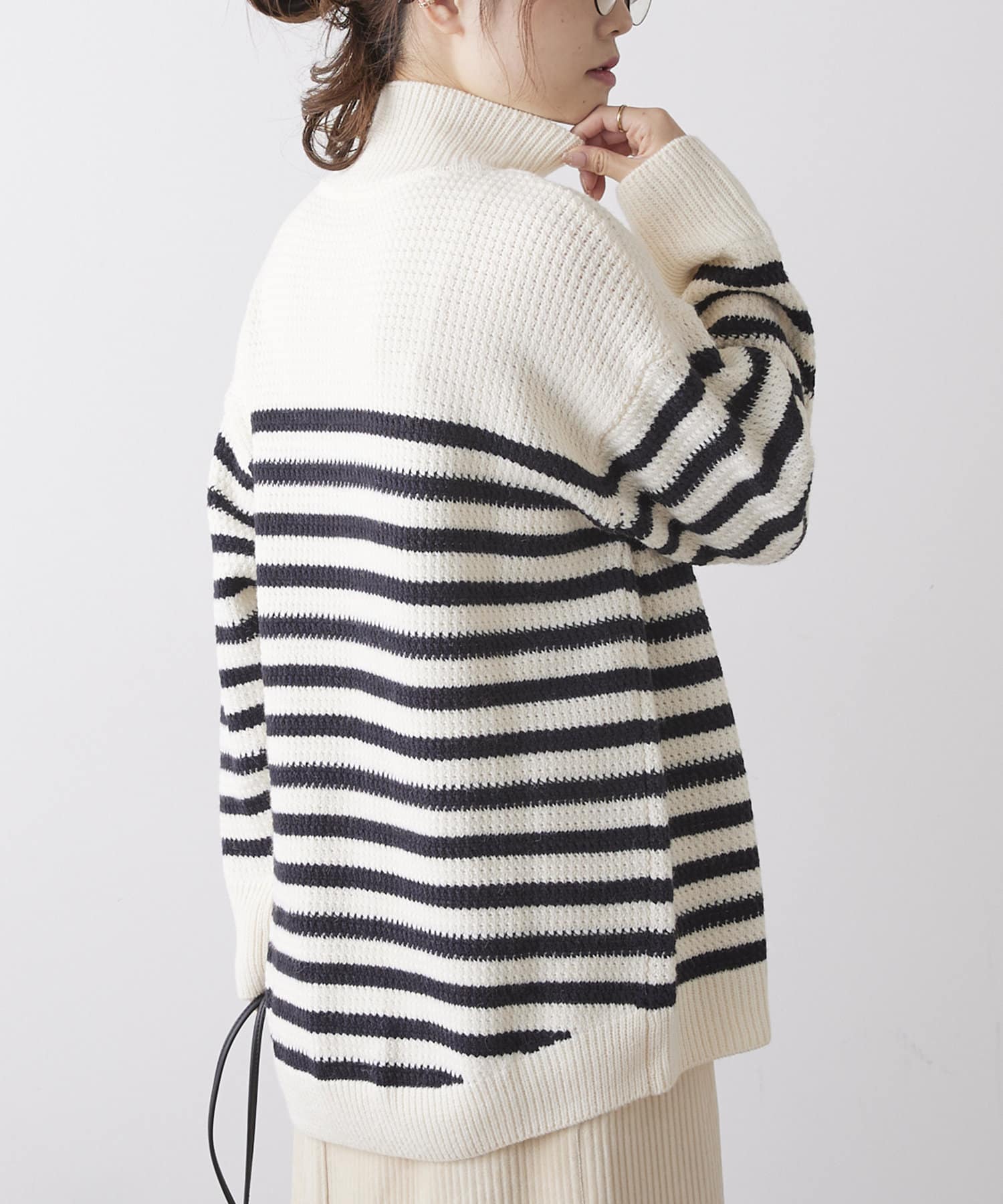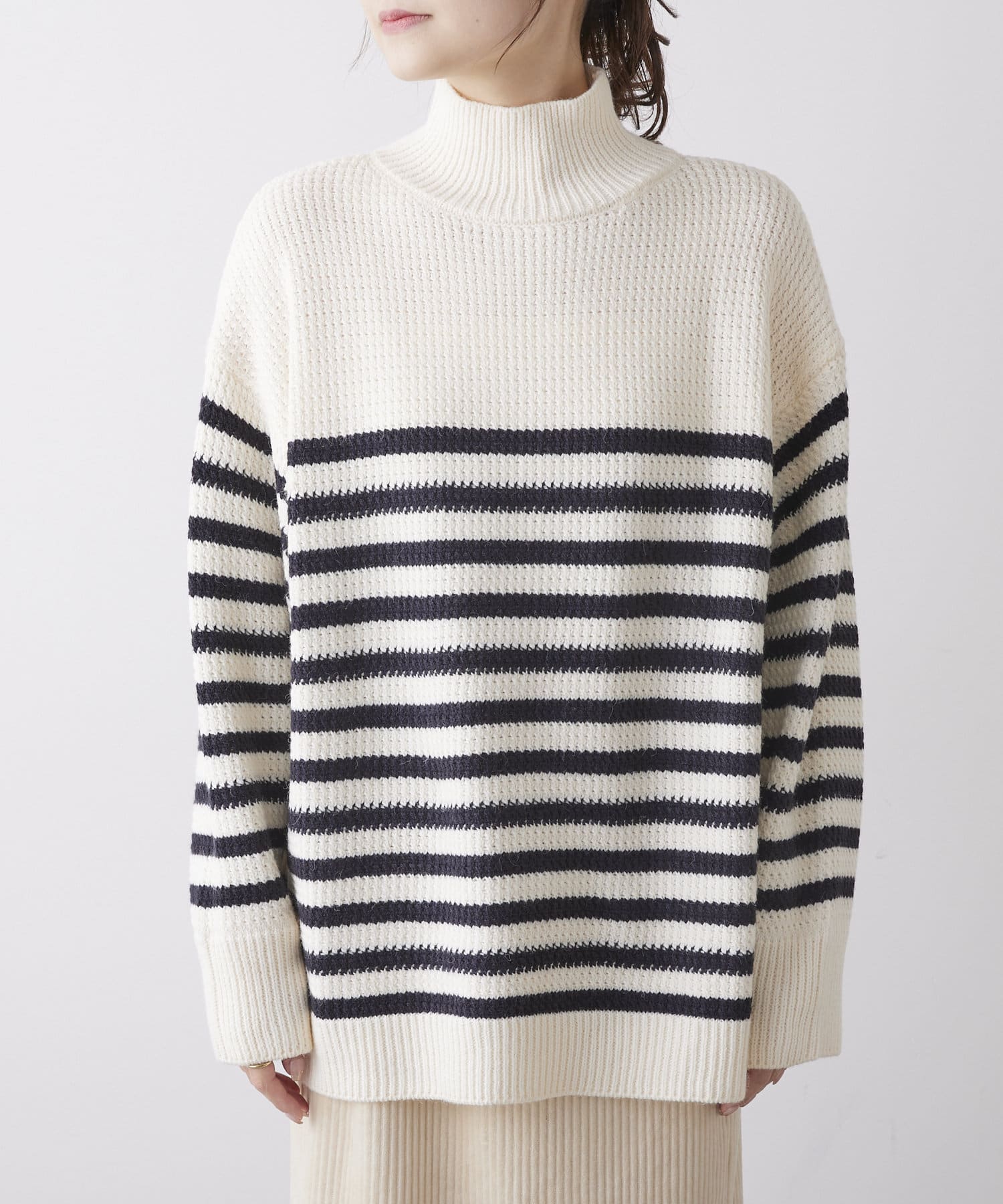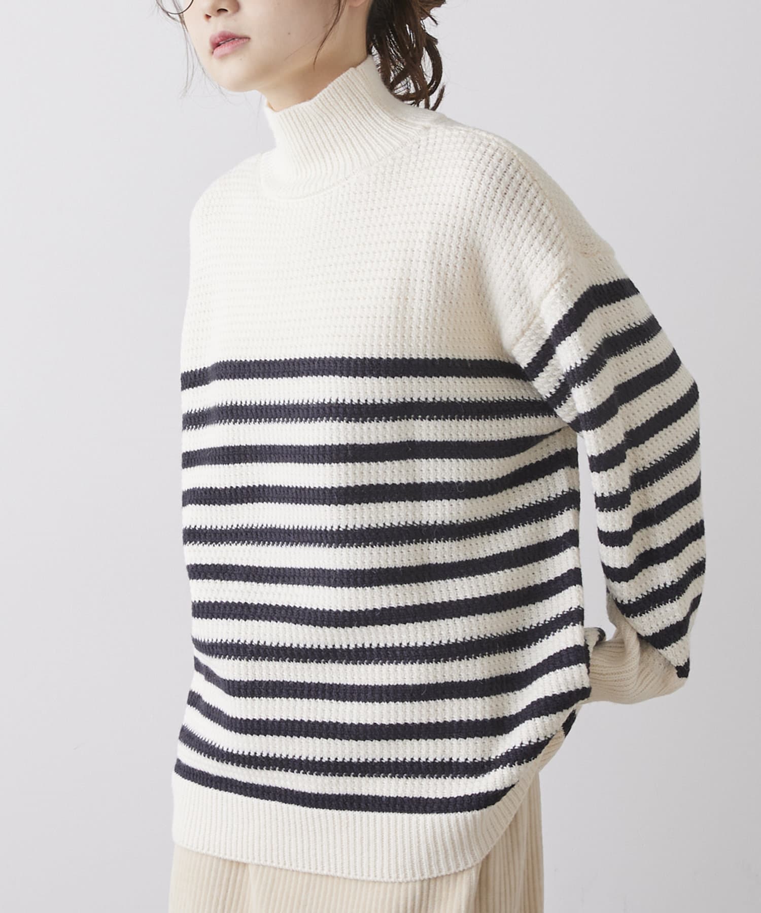 パネルボーダーハイネックニットプルオーバー