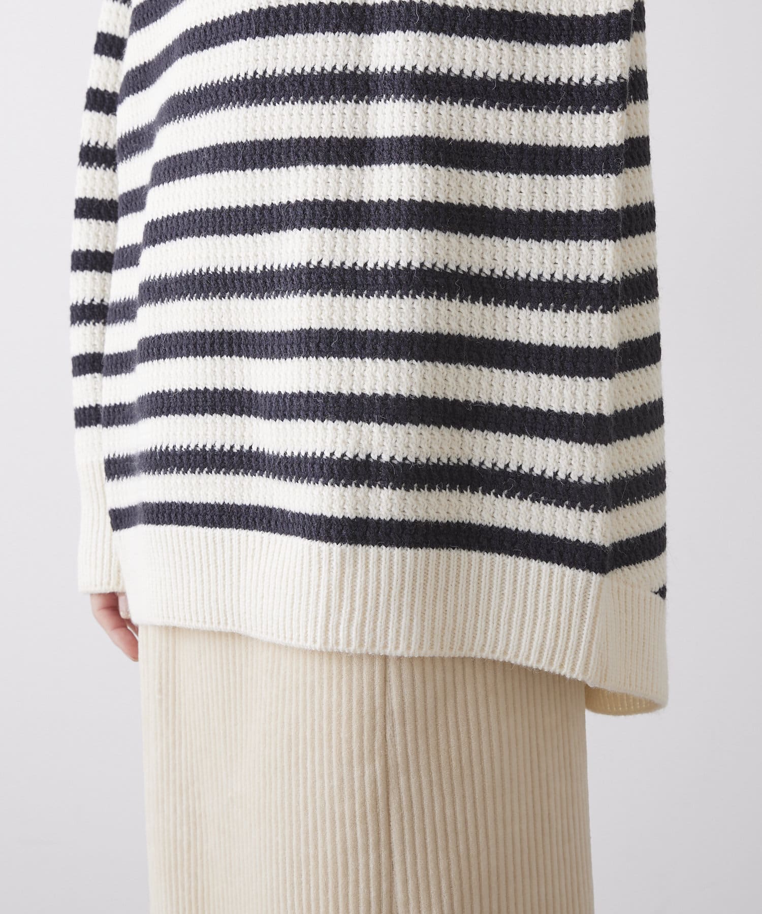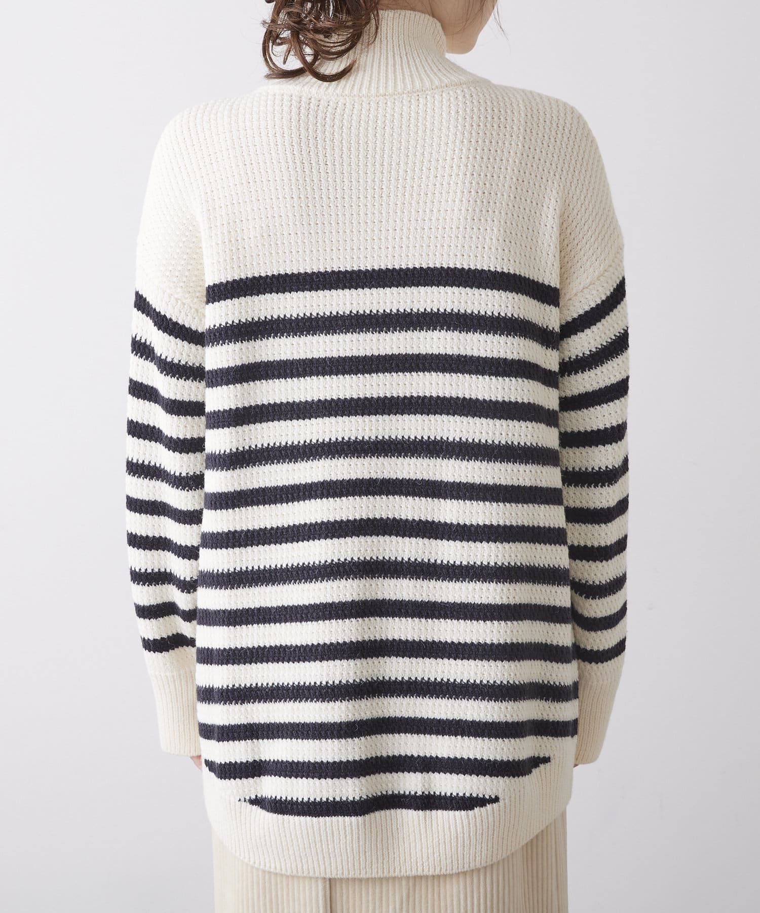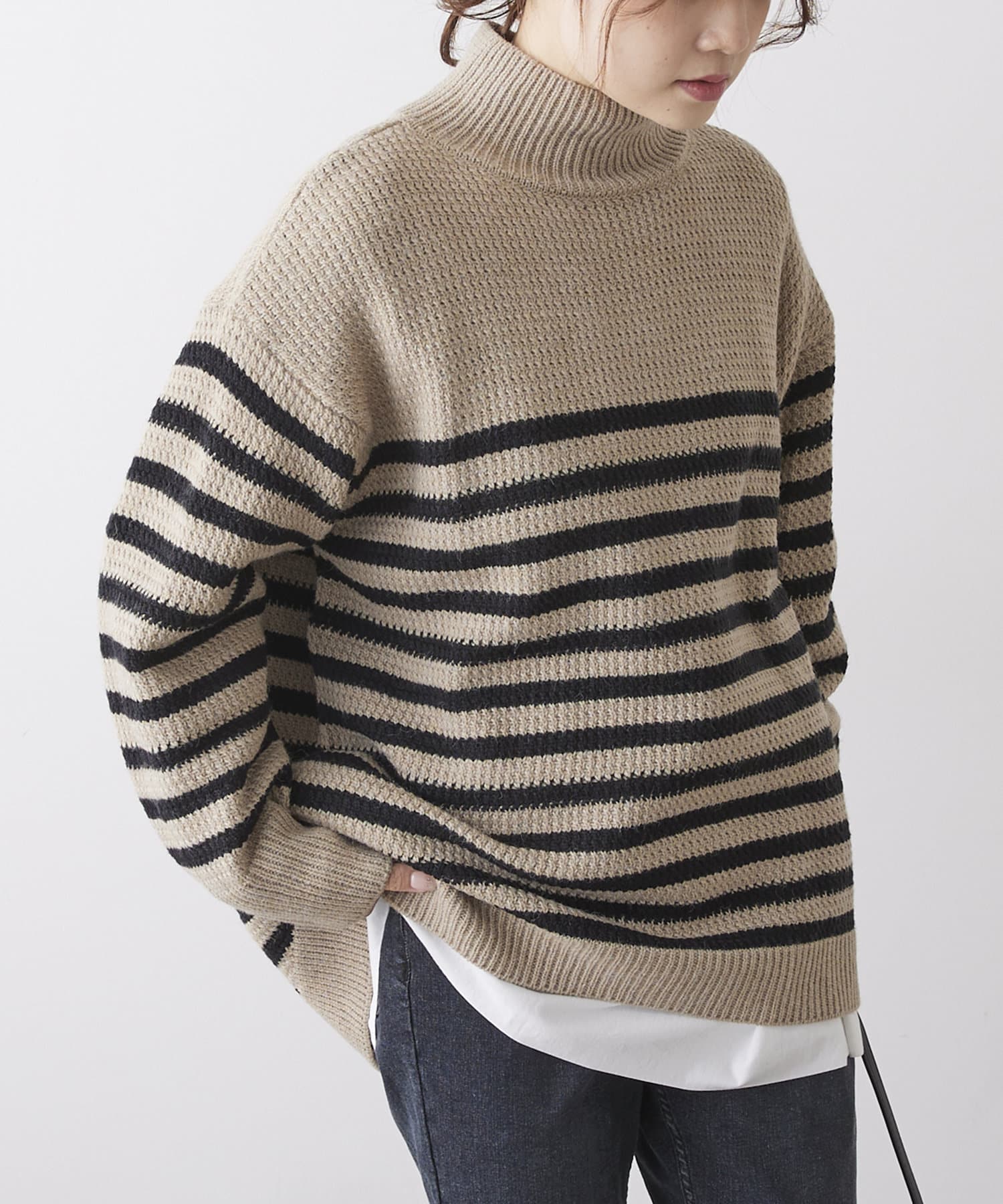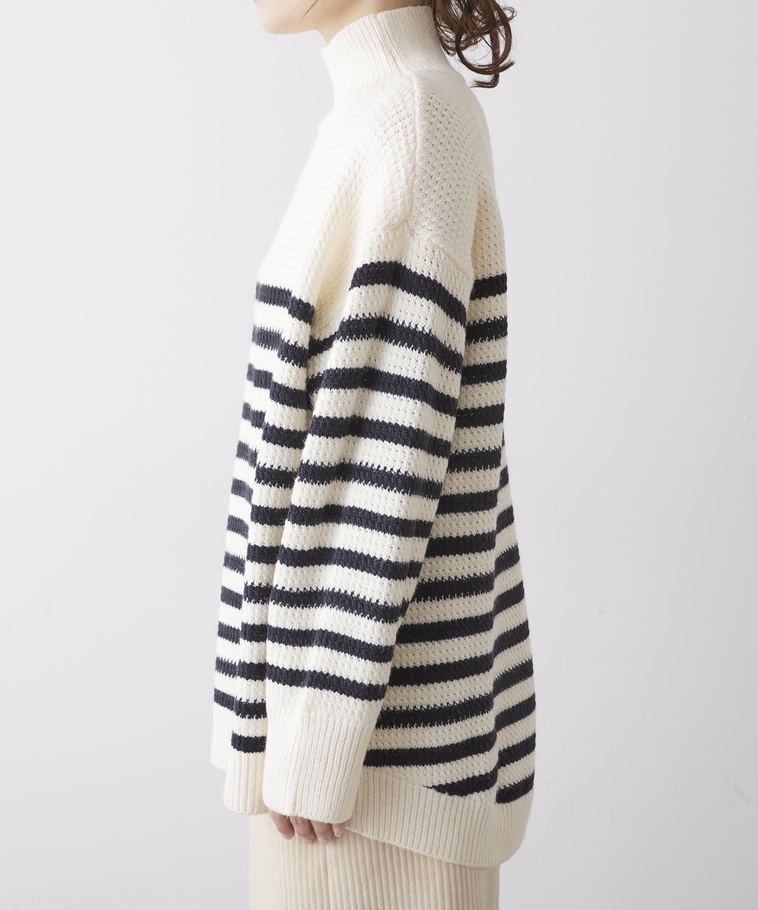 パネルボーダーハイネックニットプルオーバー