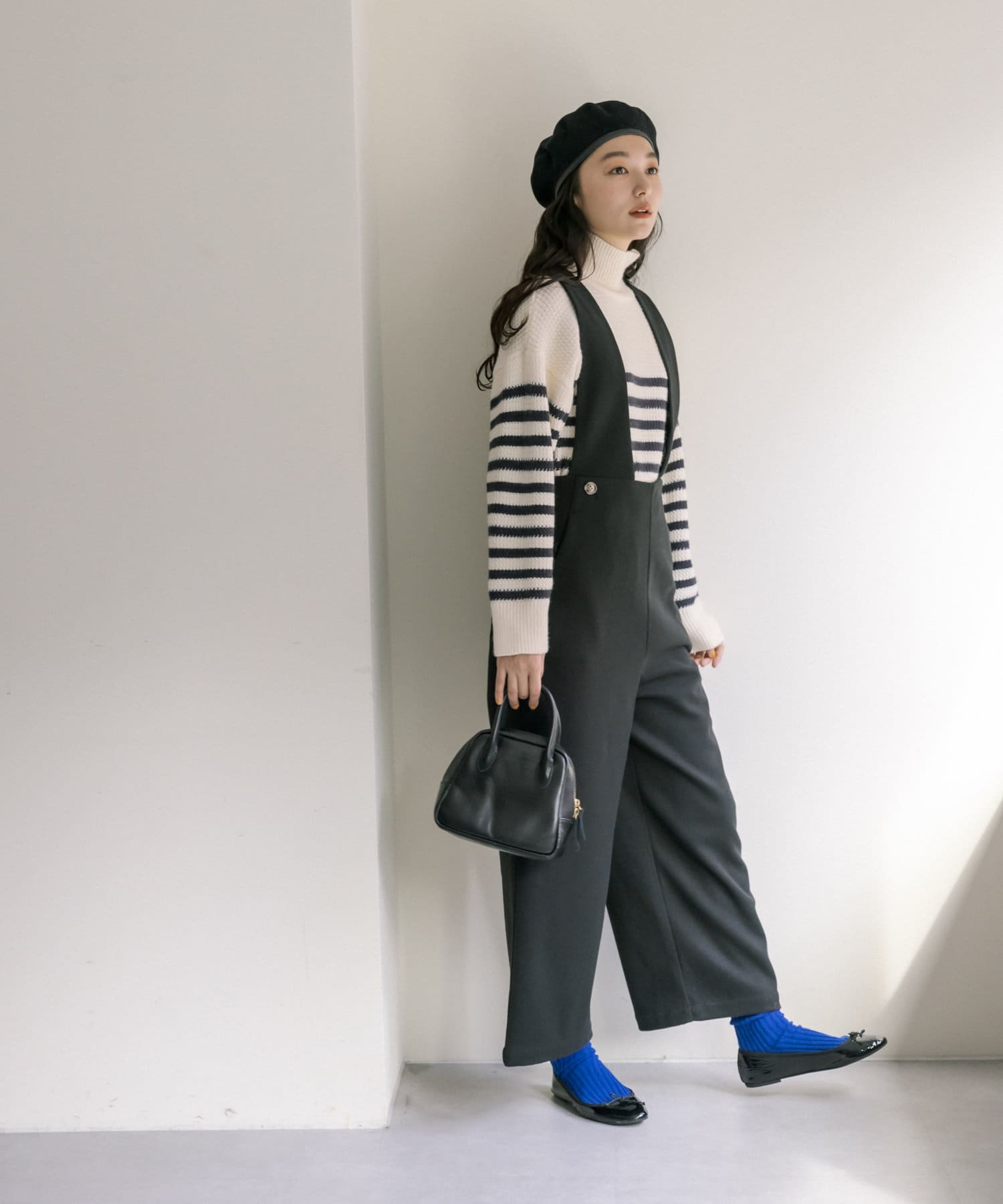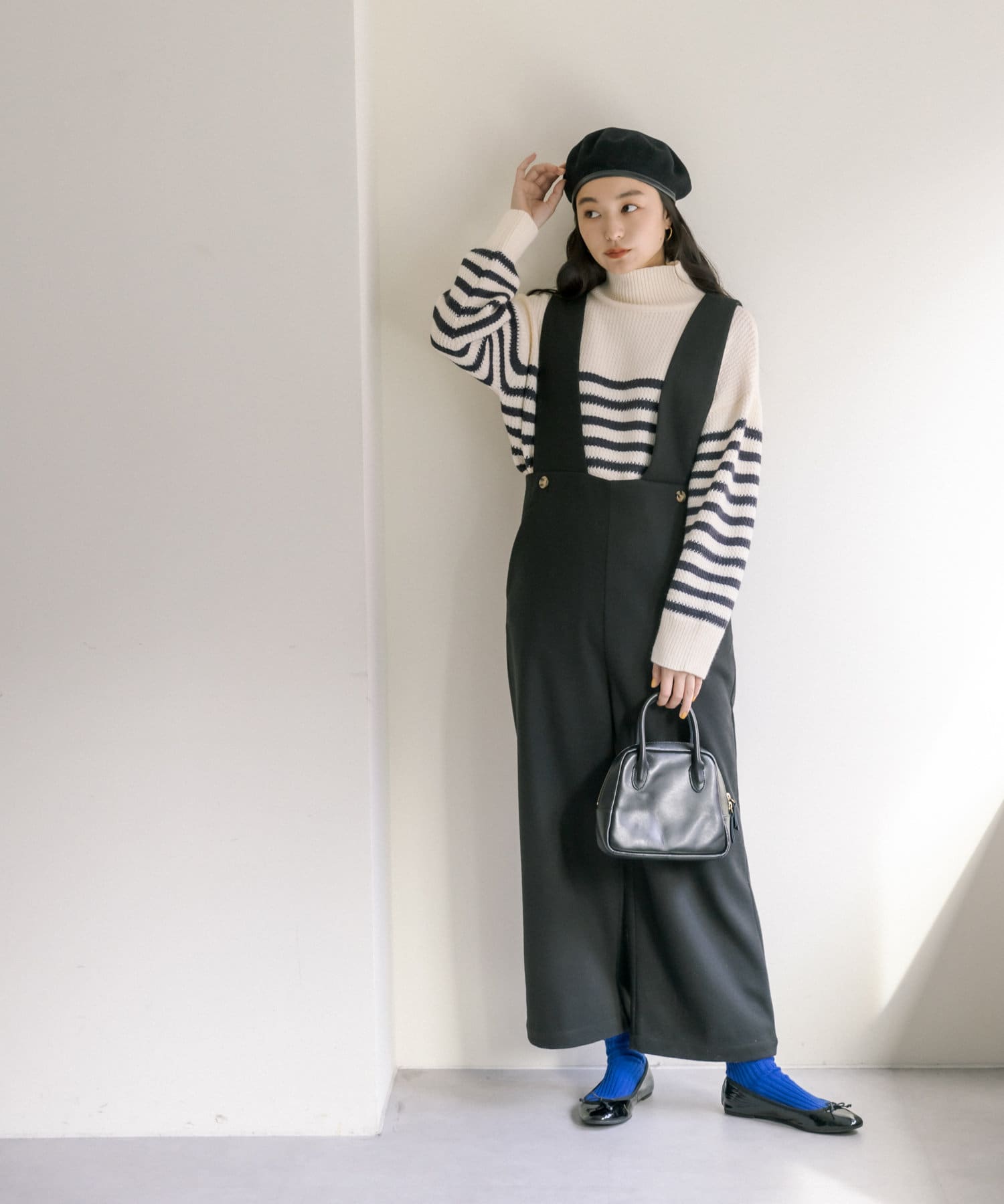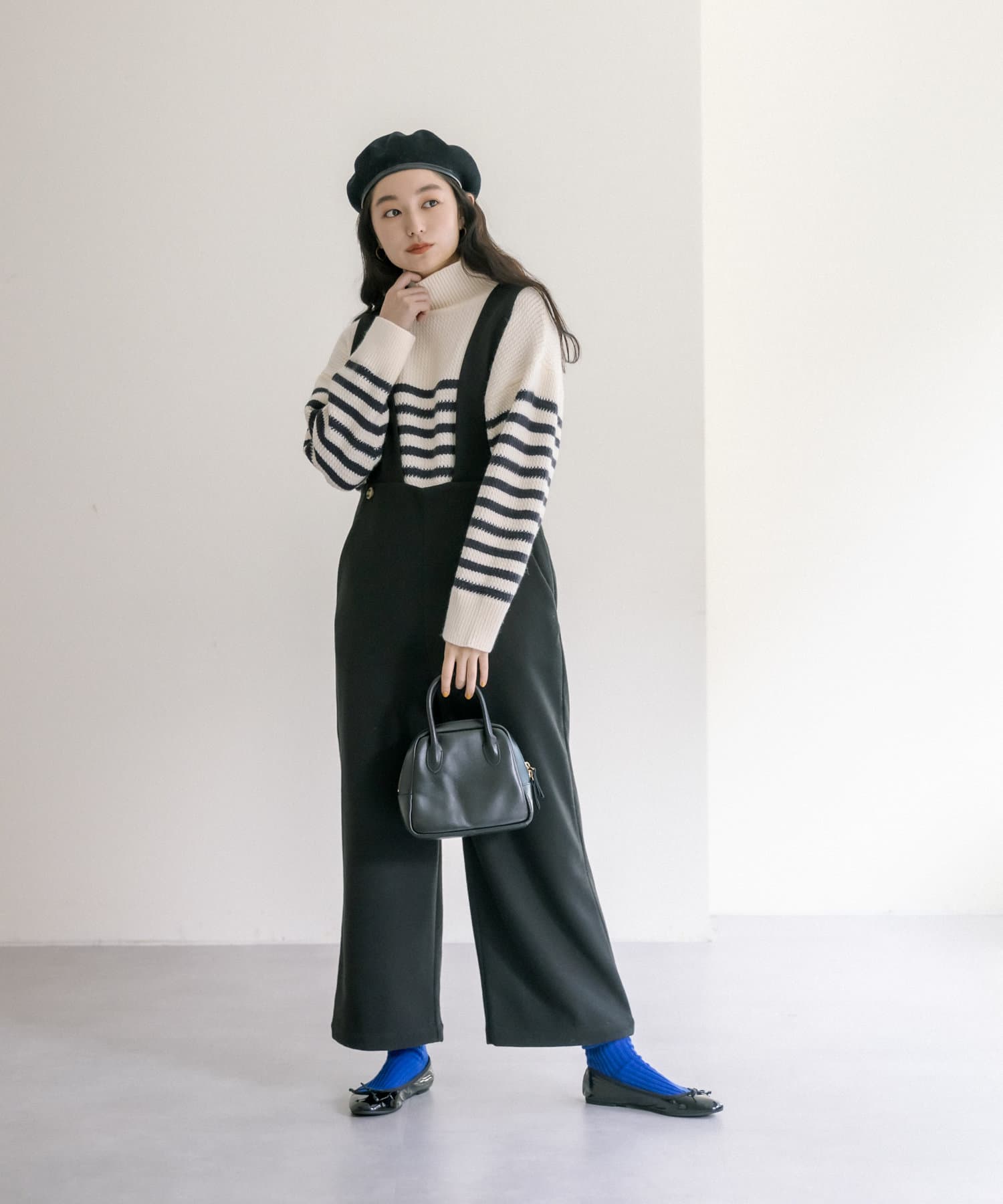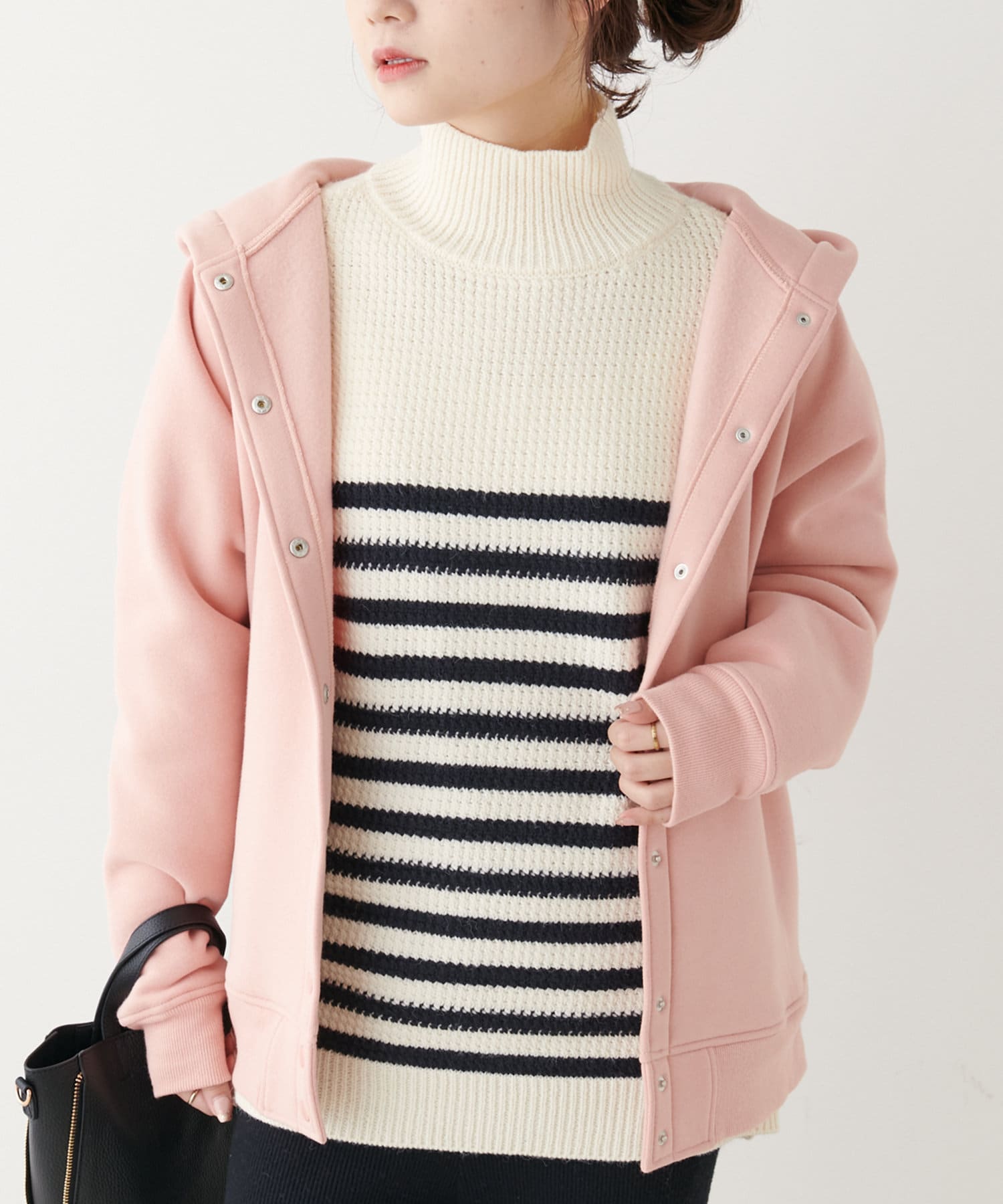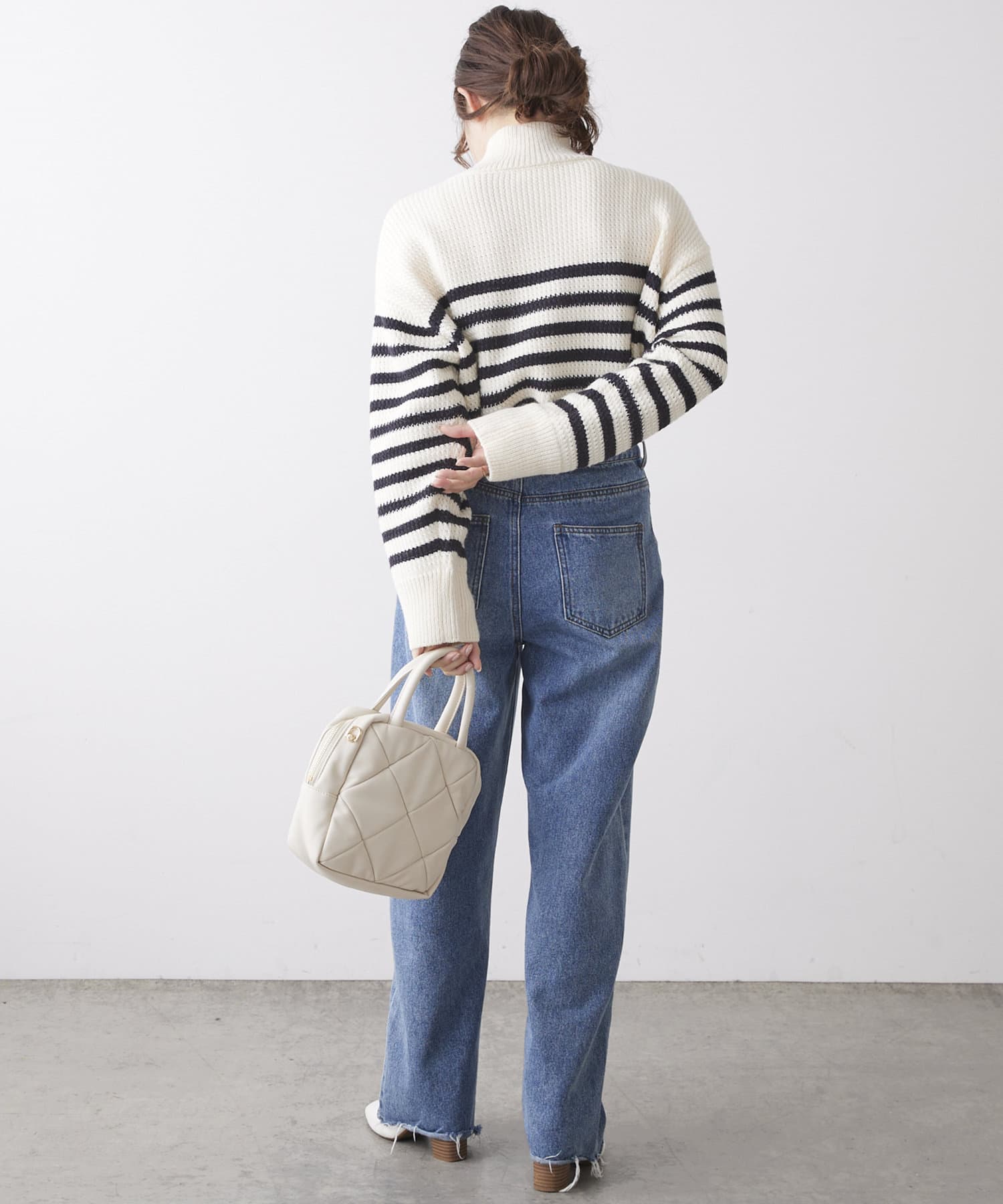 少し太めのローゲージの糸を使用することで、綺麗見えするハイネックもカジュアルにデイリーユース出来るようなデザインに。