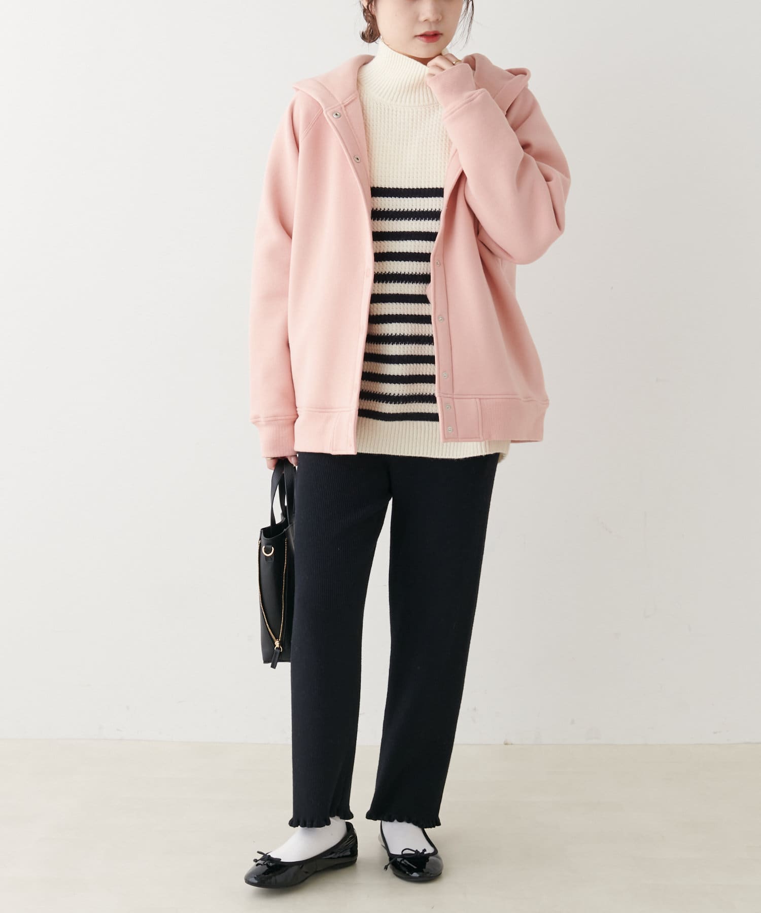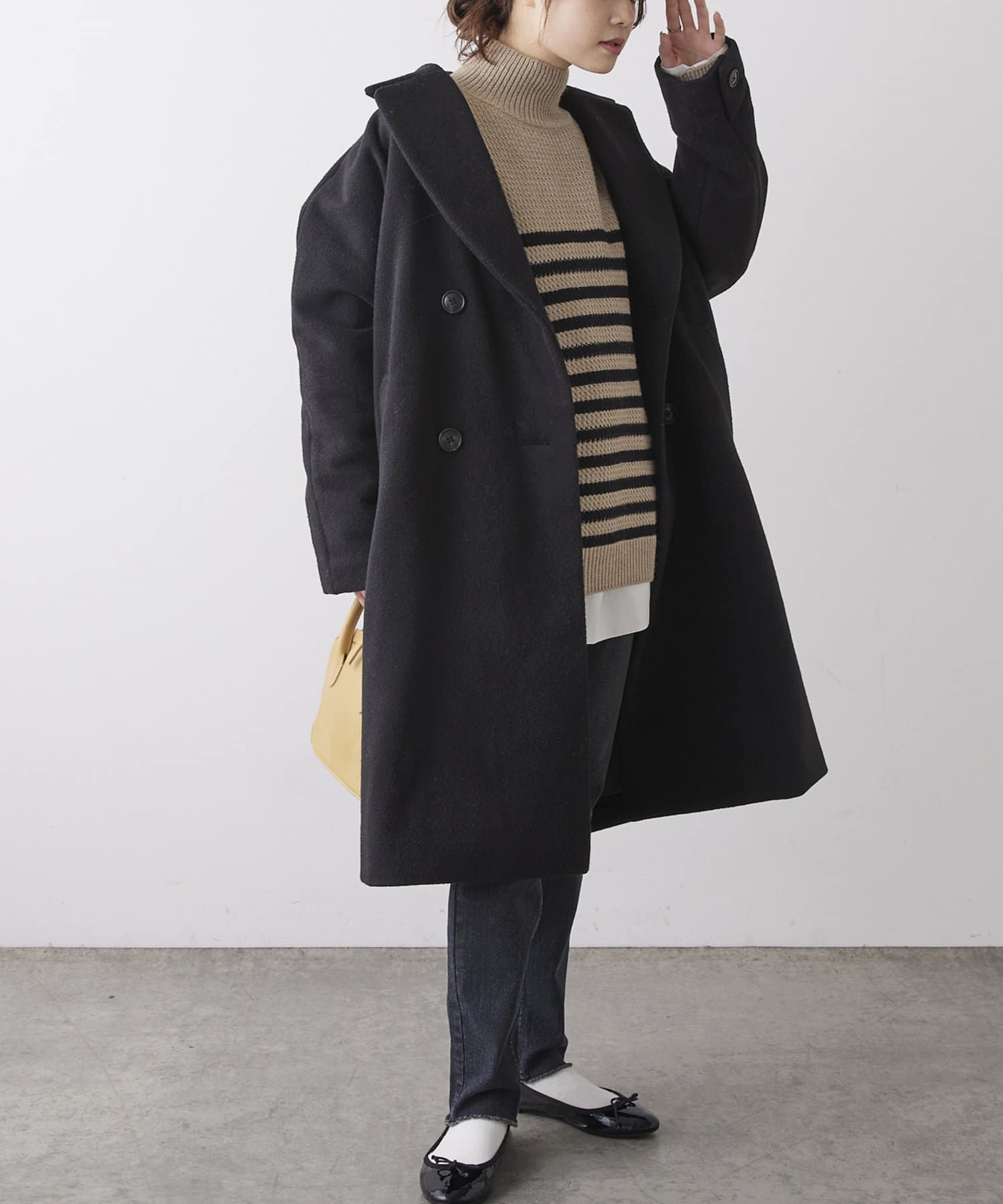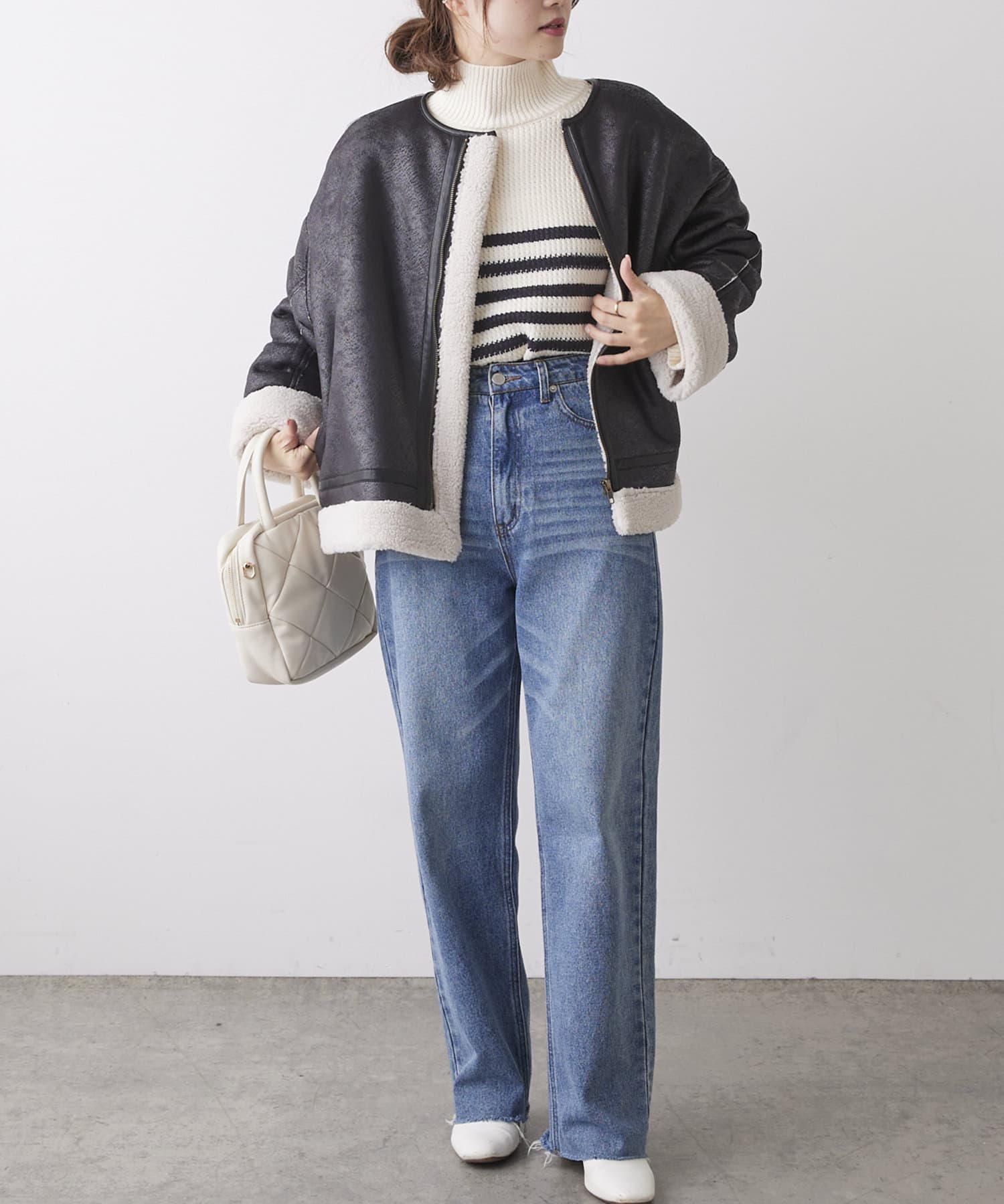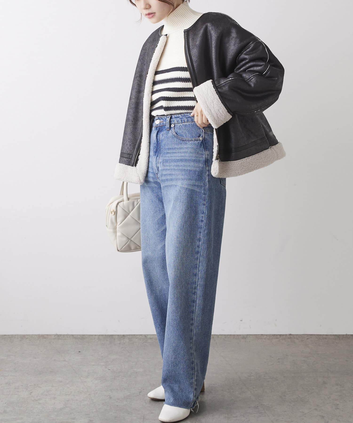 フラッフィーな素材感で体を包み込んだ柔らかなスタイルの提案。