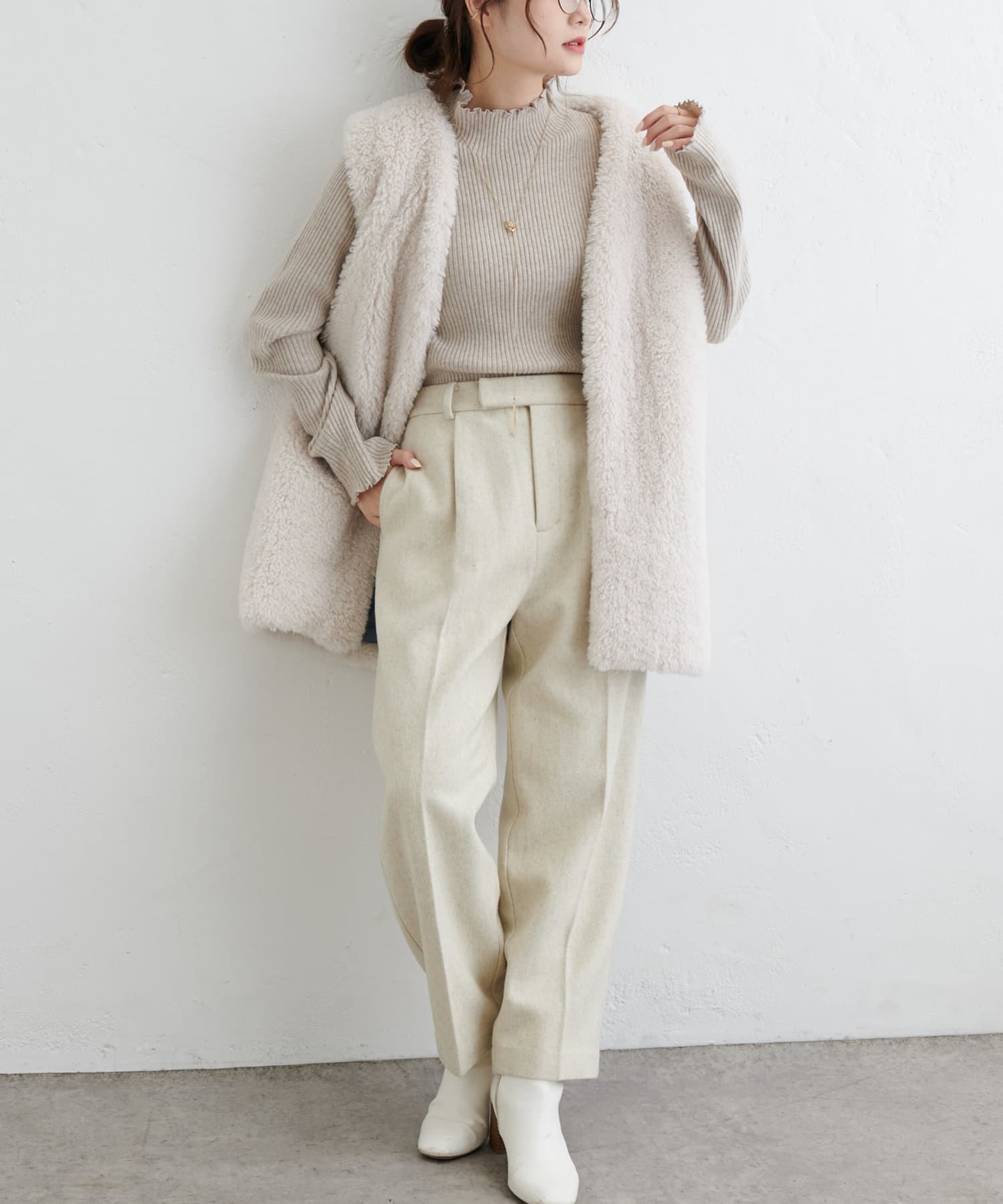 一枚着としてはもちろん、インナーとしてファーベストなど合わせたレイヤードスタイルもオススメ◎