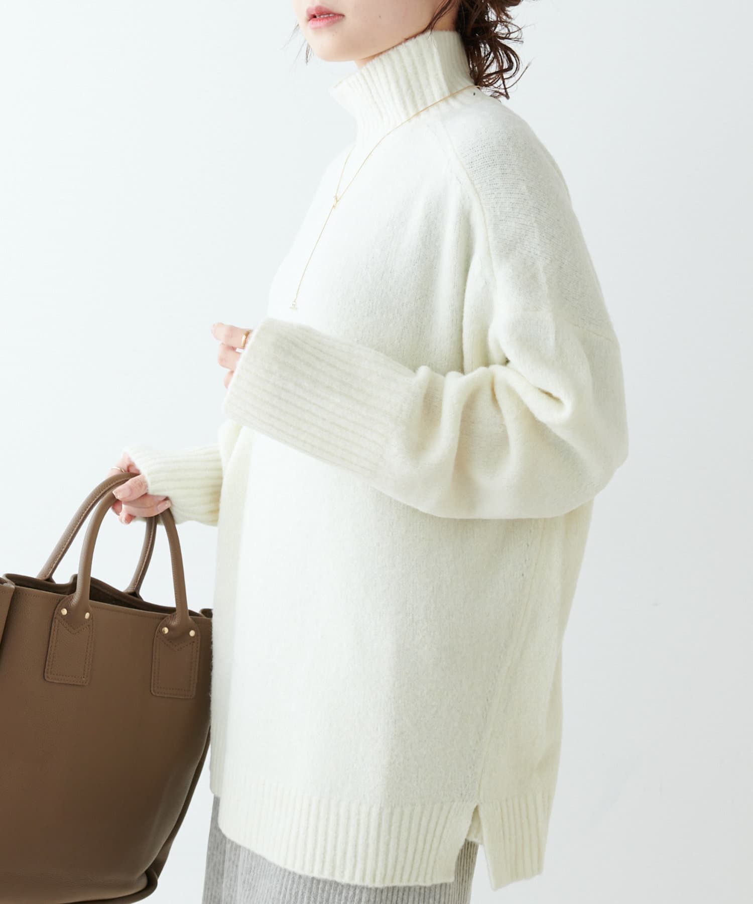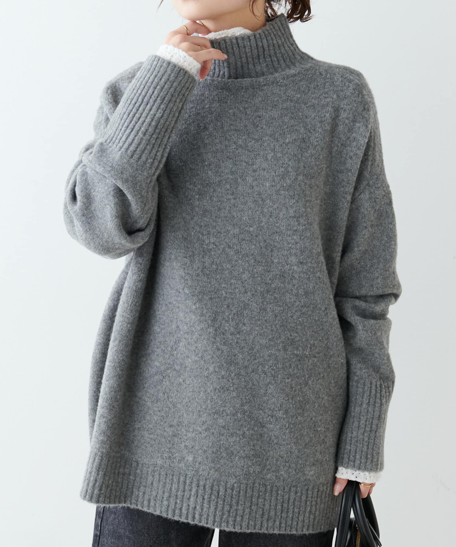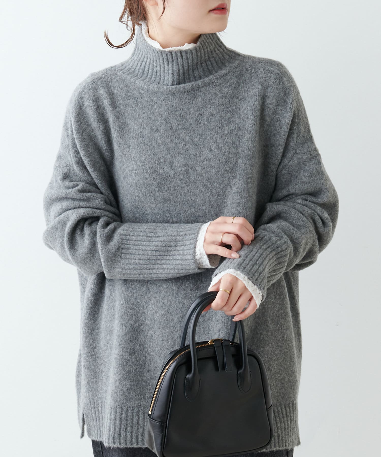 合わせやすいカラー展開とハイネックのデザインは様々なアウターとも相性が良く、
