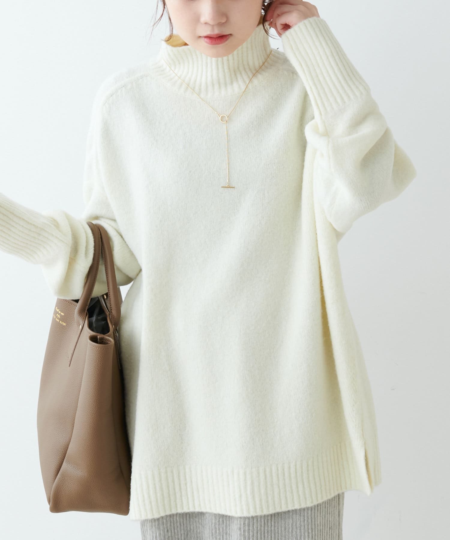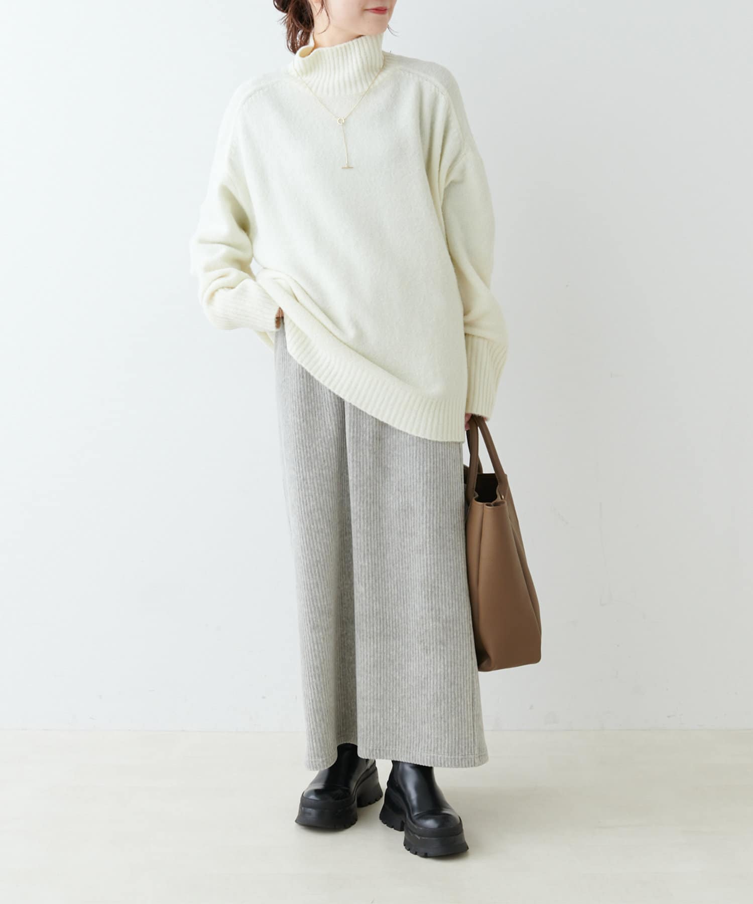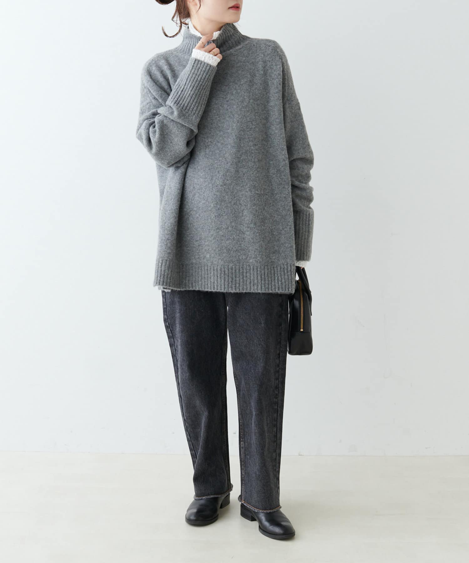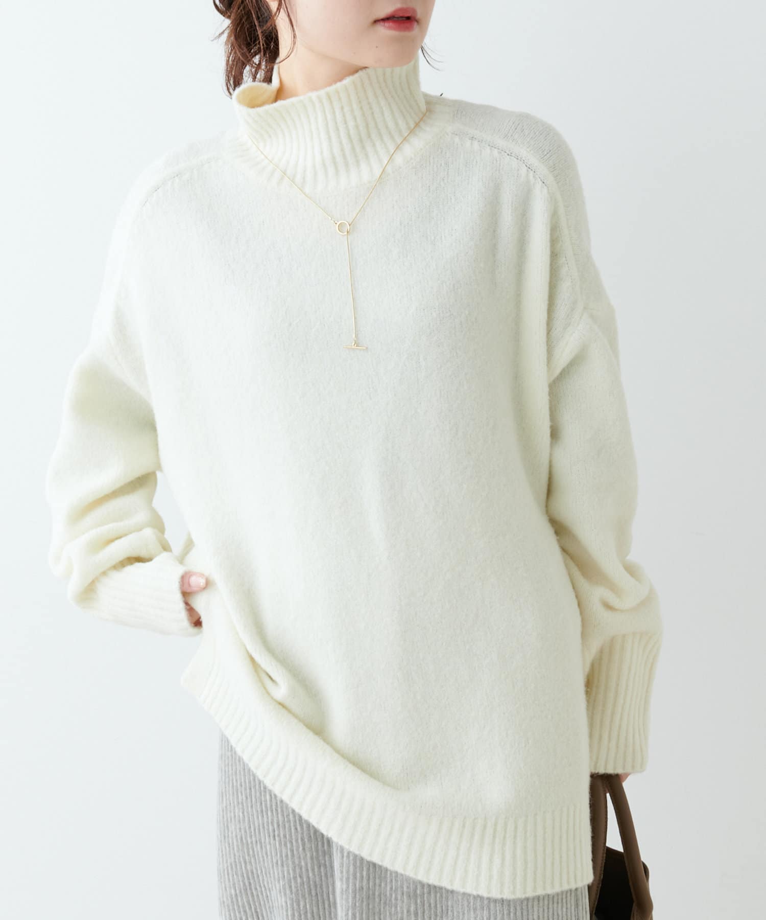 合わせやすいカラー展開とハイネックのデザインは様々なアウターとも相性が良く、