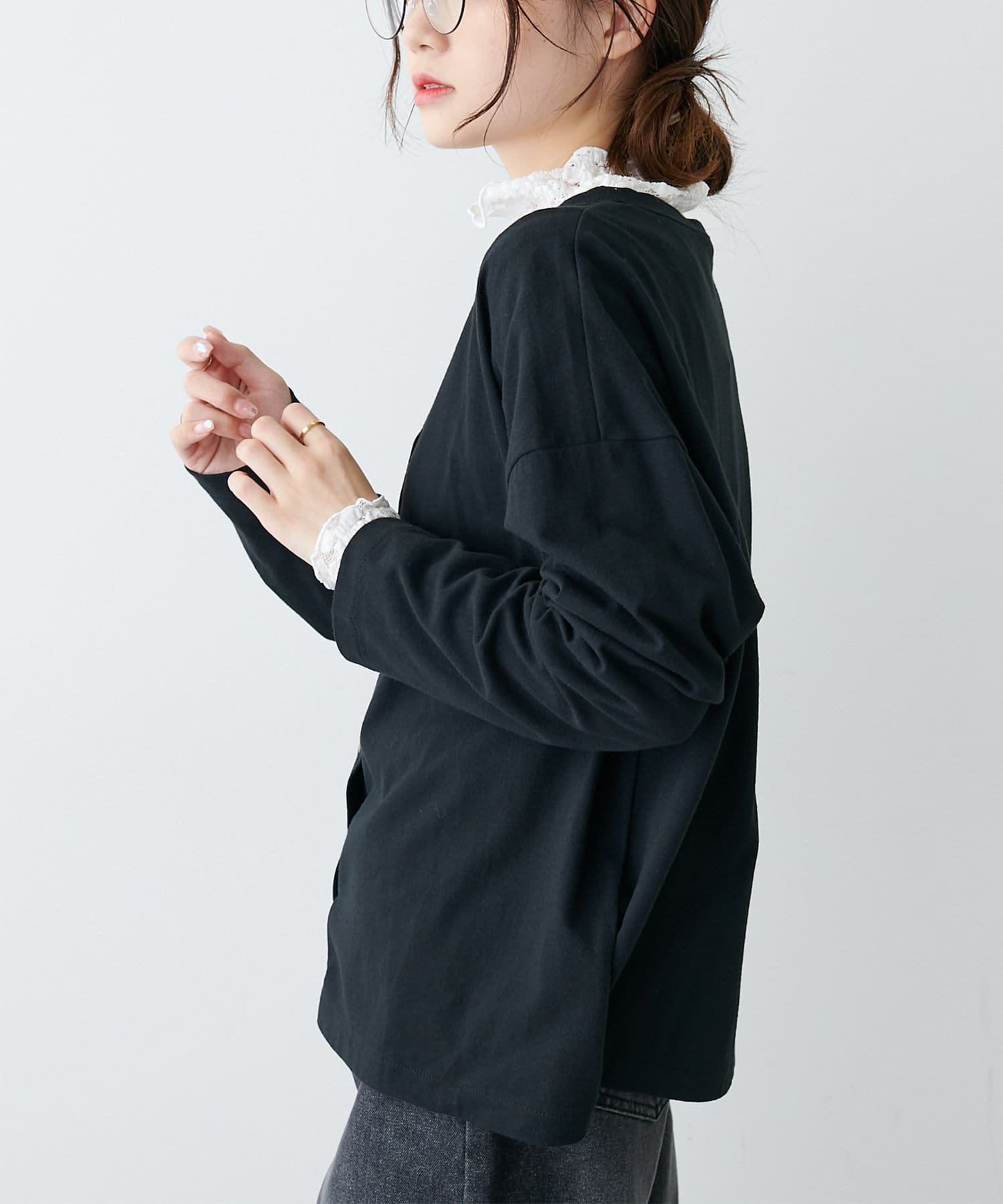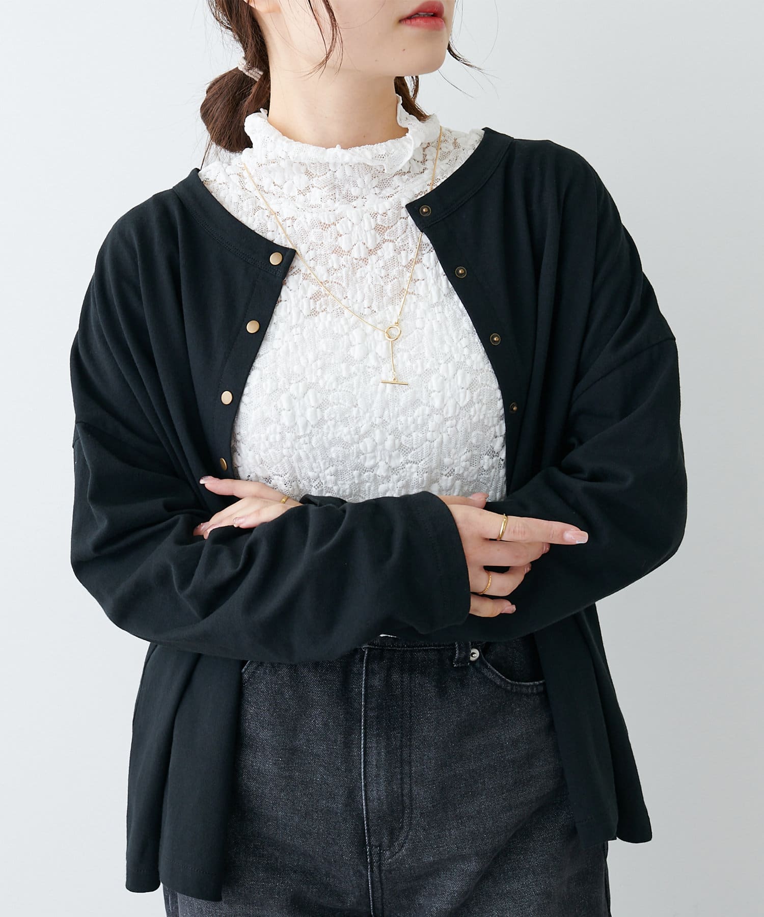 ハイネックインナーやレースインナーを合わせるのもおすすめです。