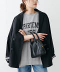 ゆとりのあるワイドなシルエットと肩線のおちたドロップショルダーが