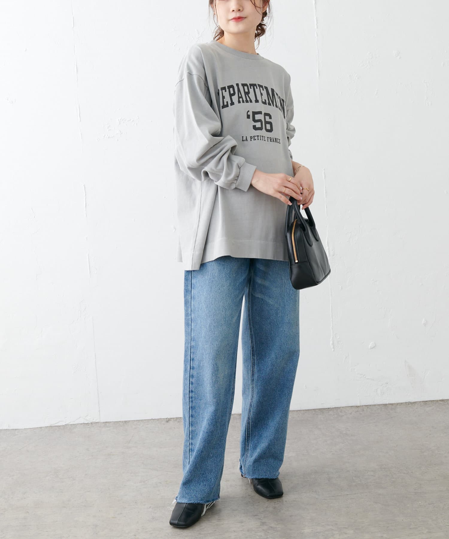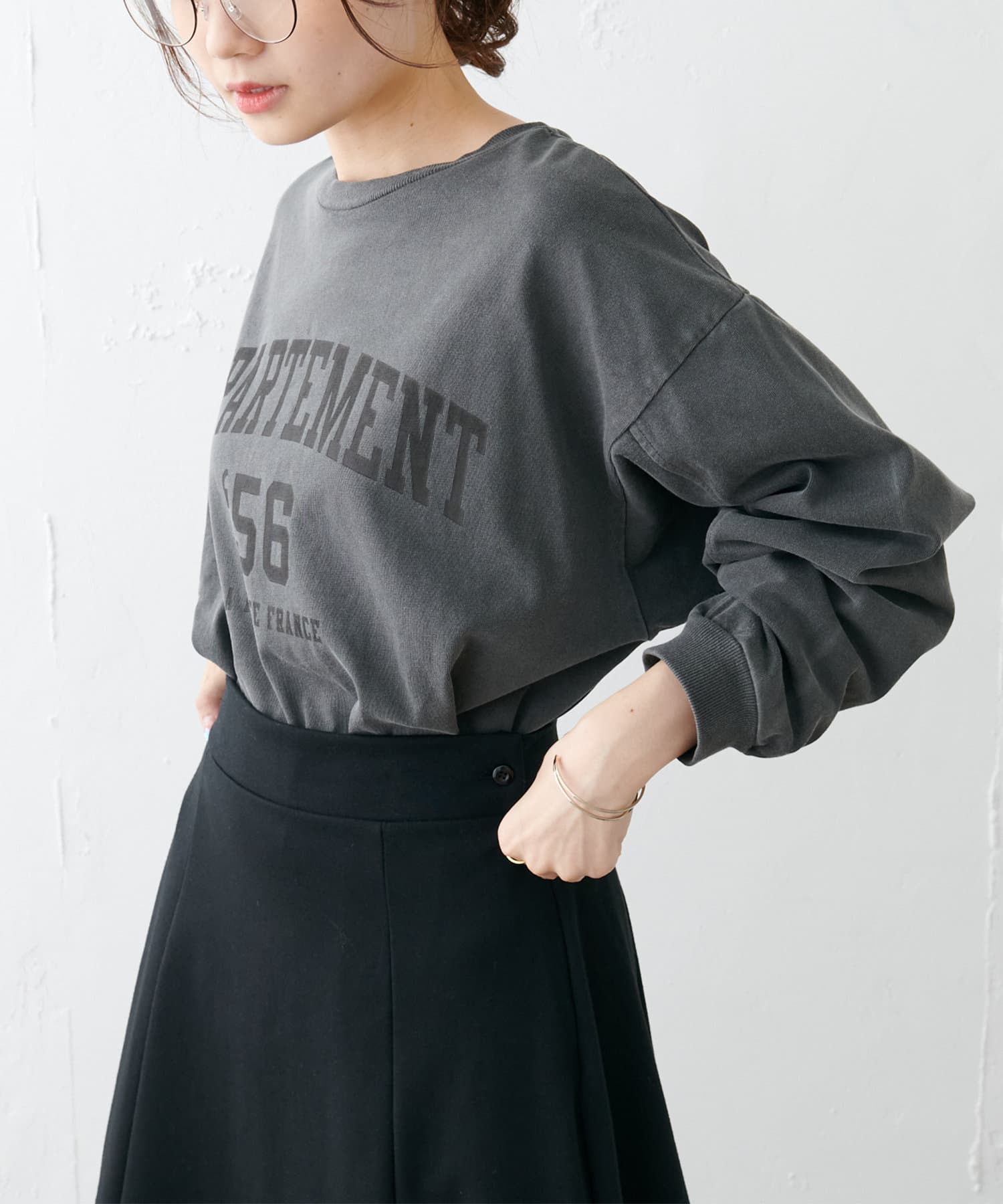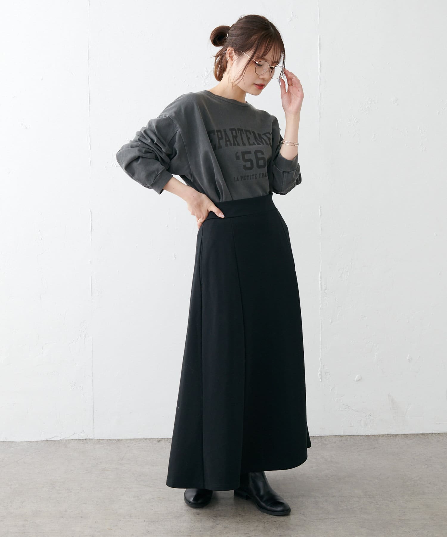 タックインはボトムスを選ばず合わせやすく、アウトスタイルではあえてワイドパンツやロングスカートを合わせても旬の着こなしが完成します。シンプルになりやすいので、トレンドのカラーアイテムや季節らしいシーズンアイテムを取り入れるのがおすすめです。