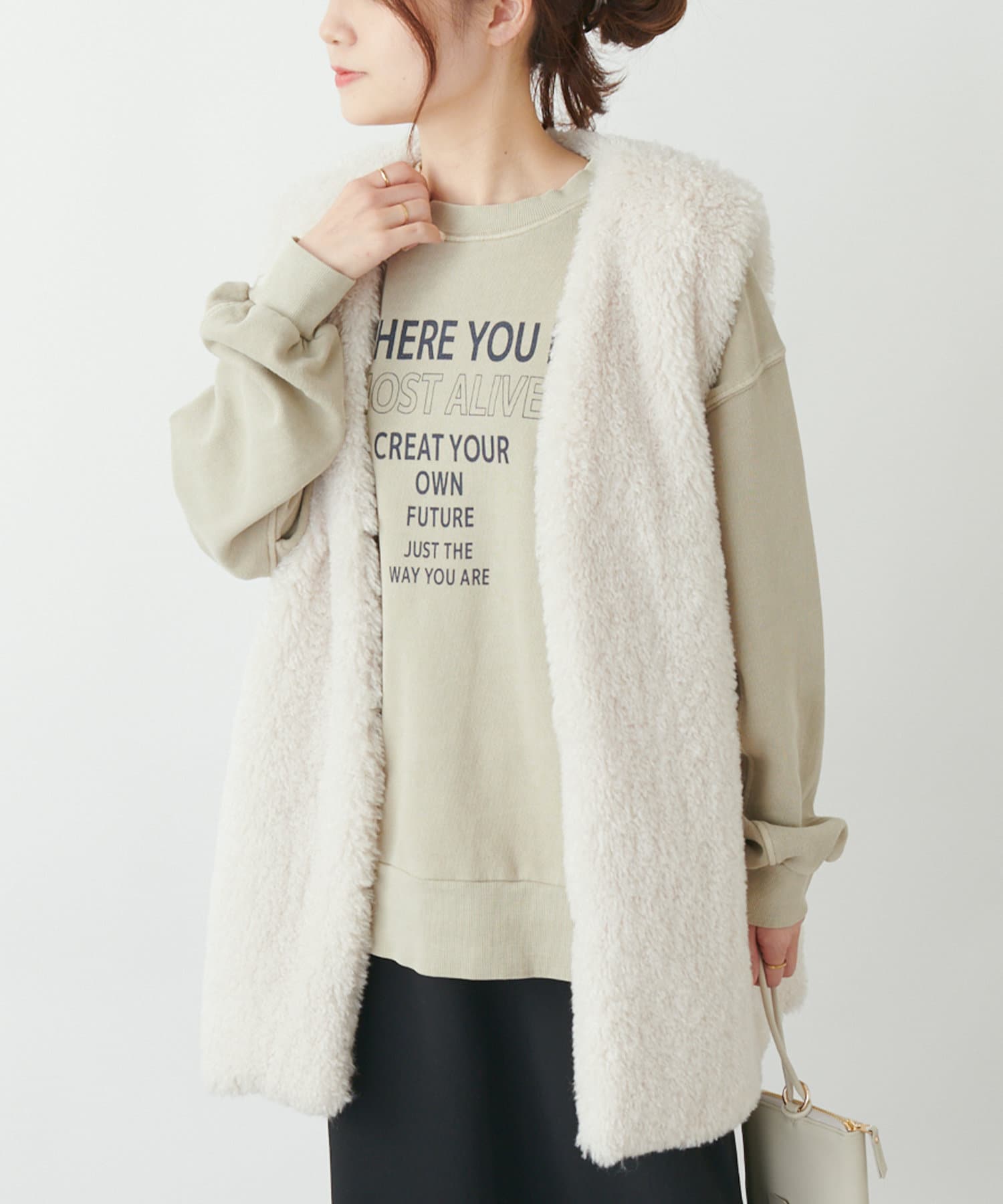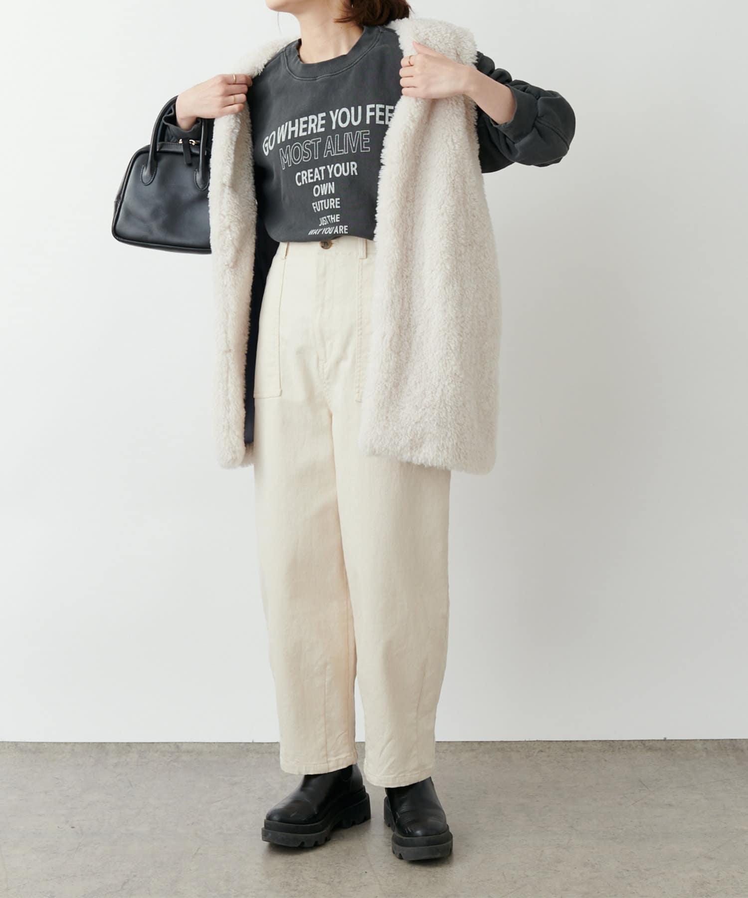 絶妙な生地の厚みなので、タックインし、シルエットの変化を楽しむのも◎