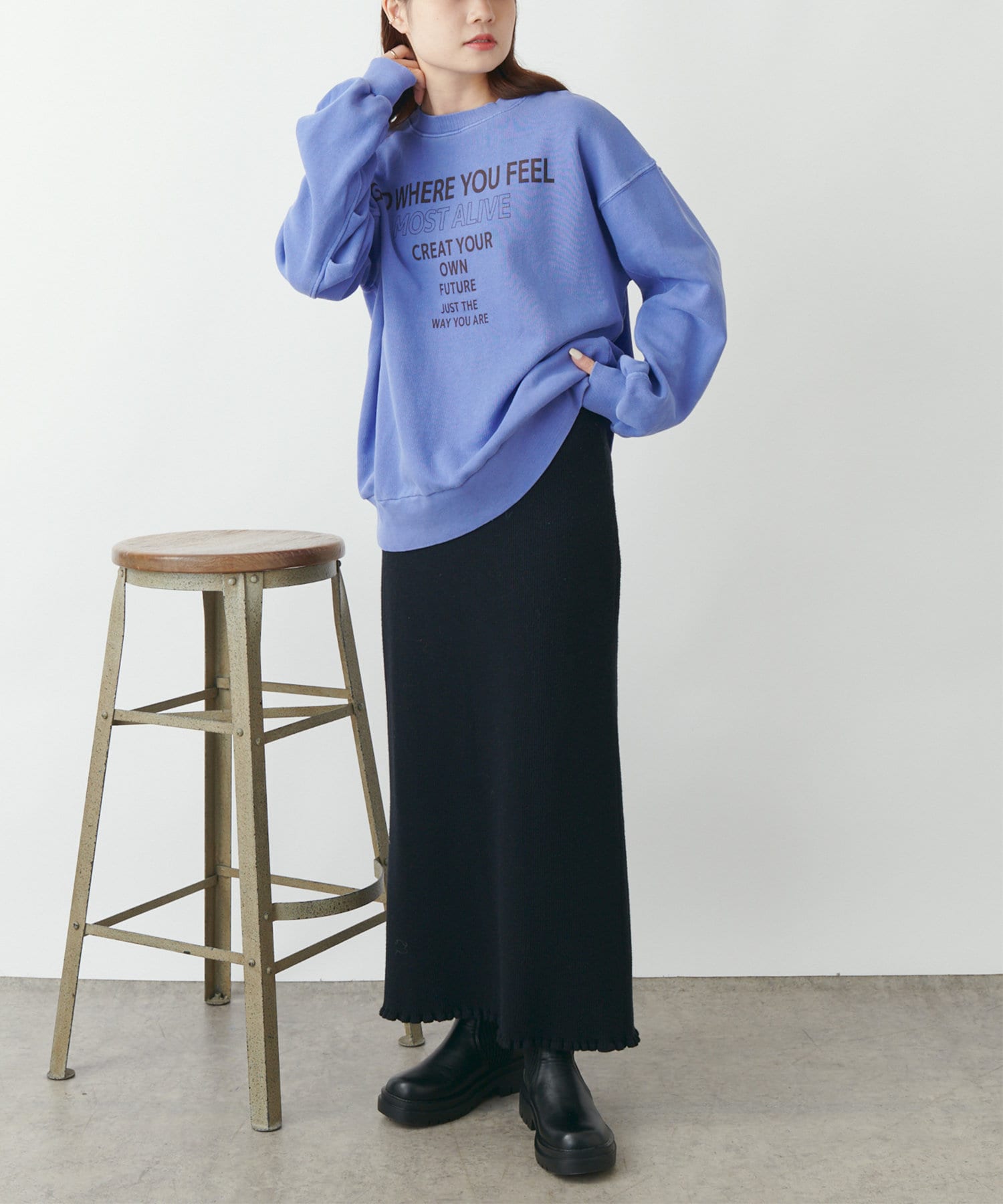 ピグメント加工施すことでビンテージな色合いを表現したカジュアルスウェット。