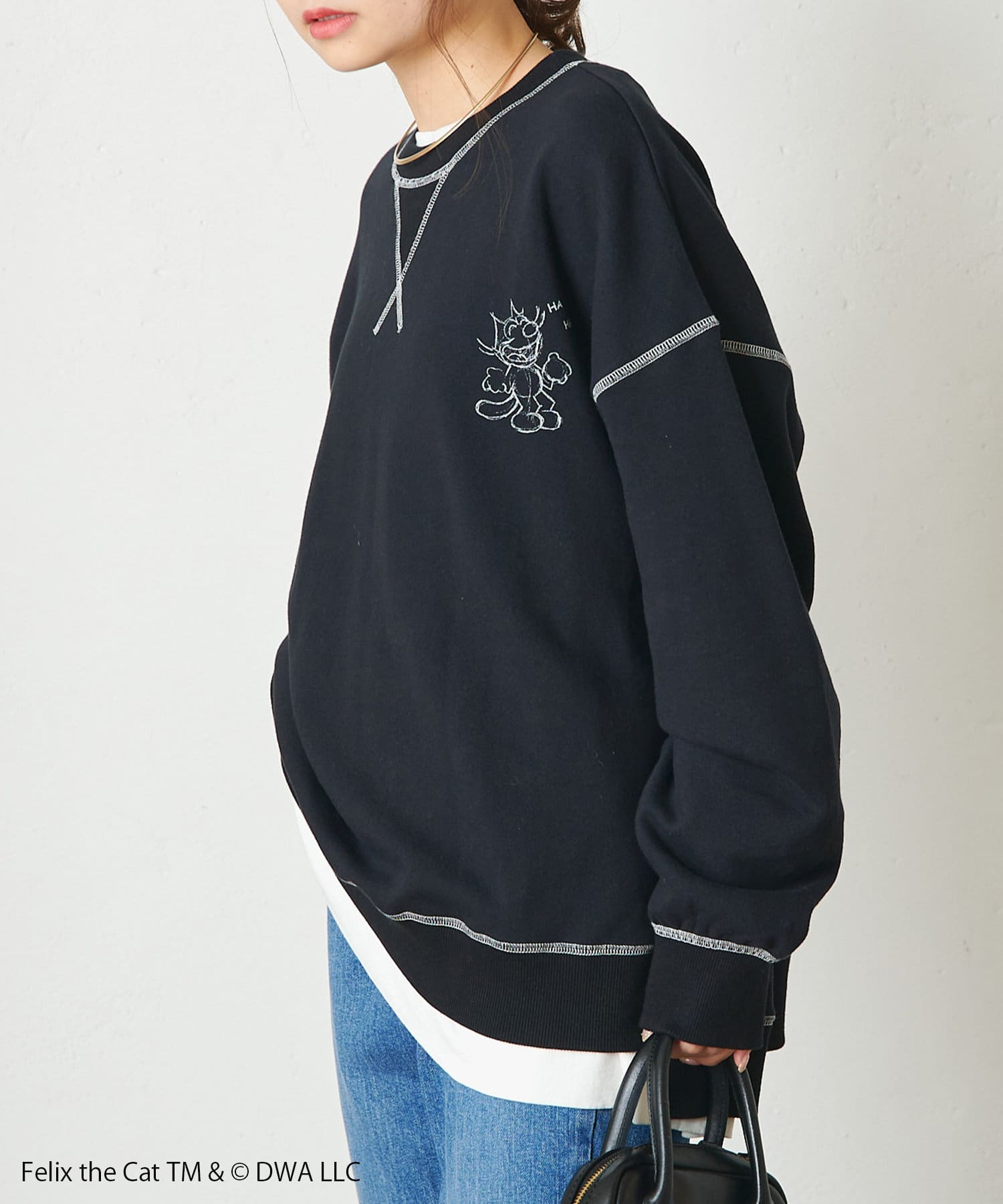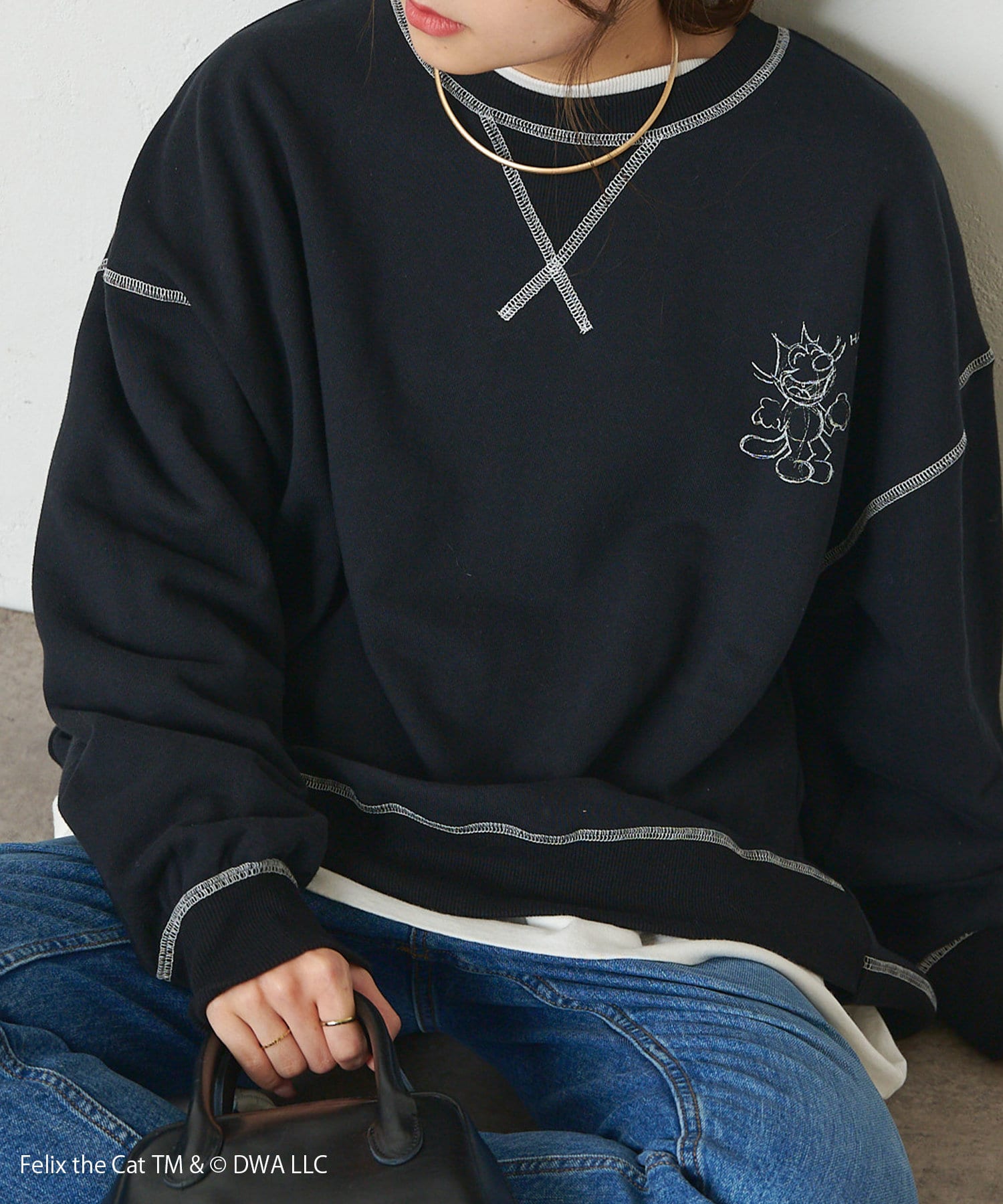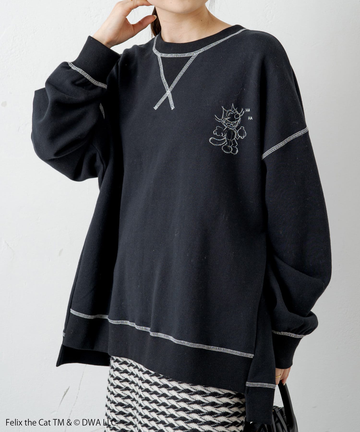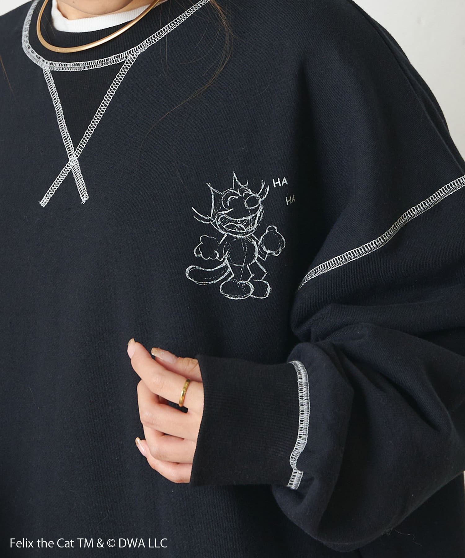 クラシカルな線画のフィリックスがワンポイントになったスウェットプルオーバー。