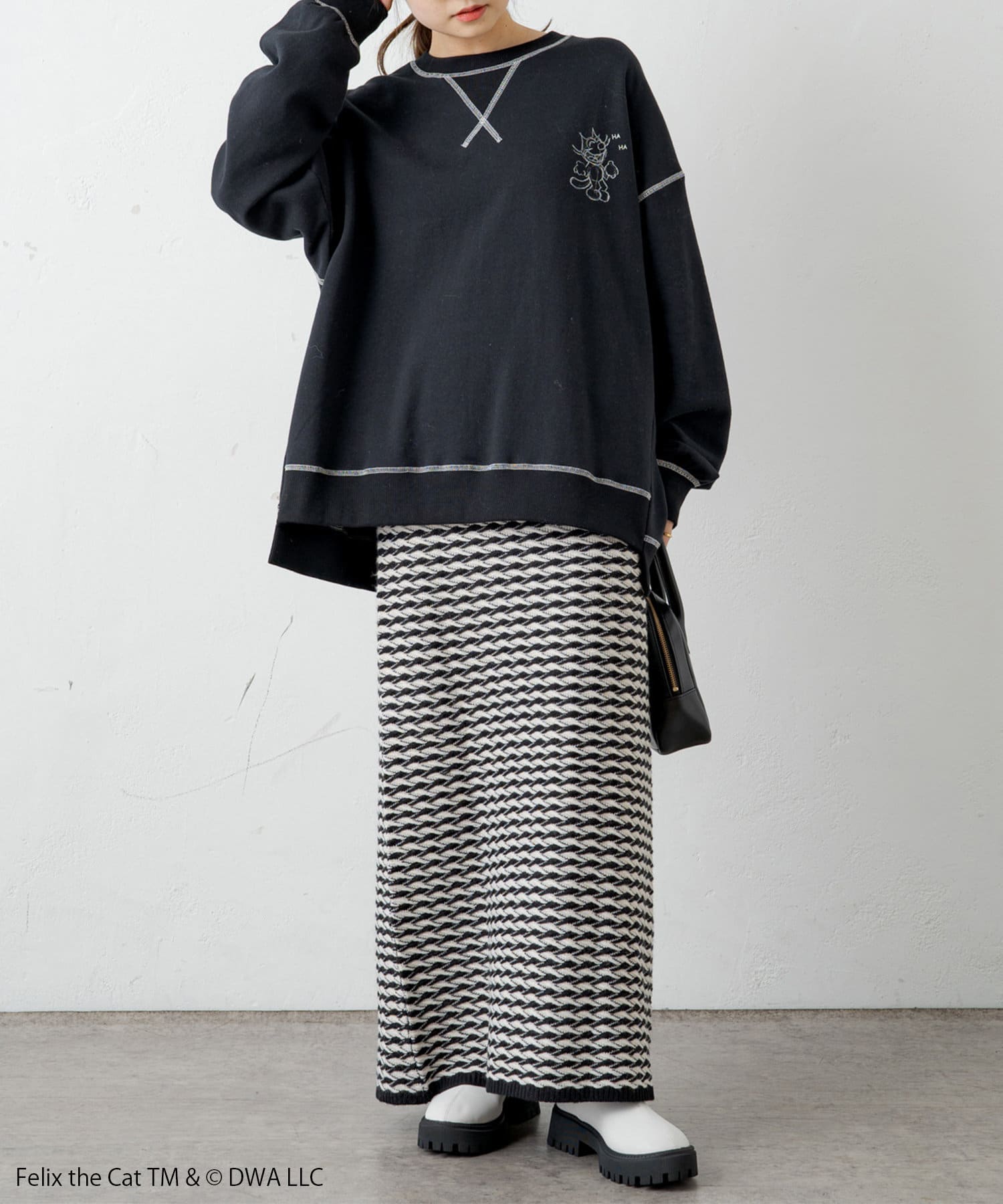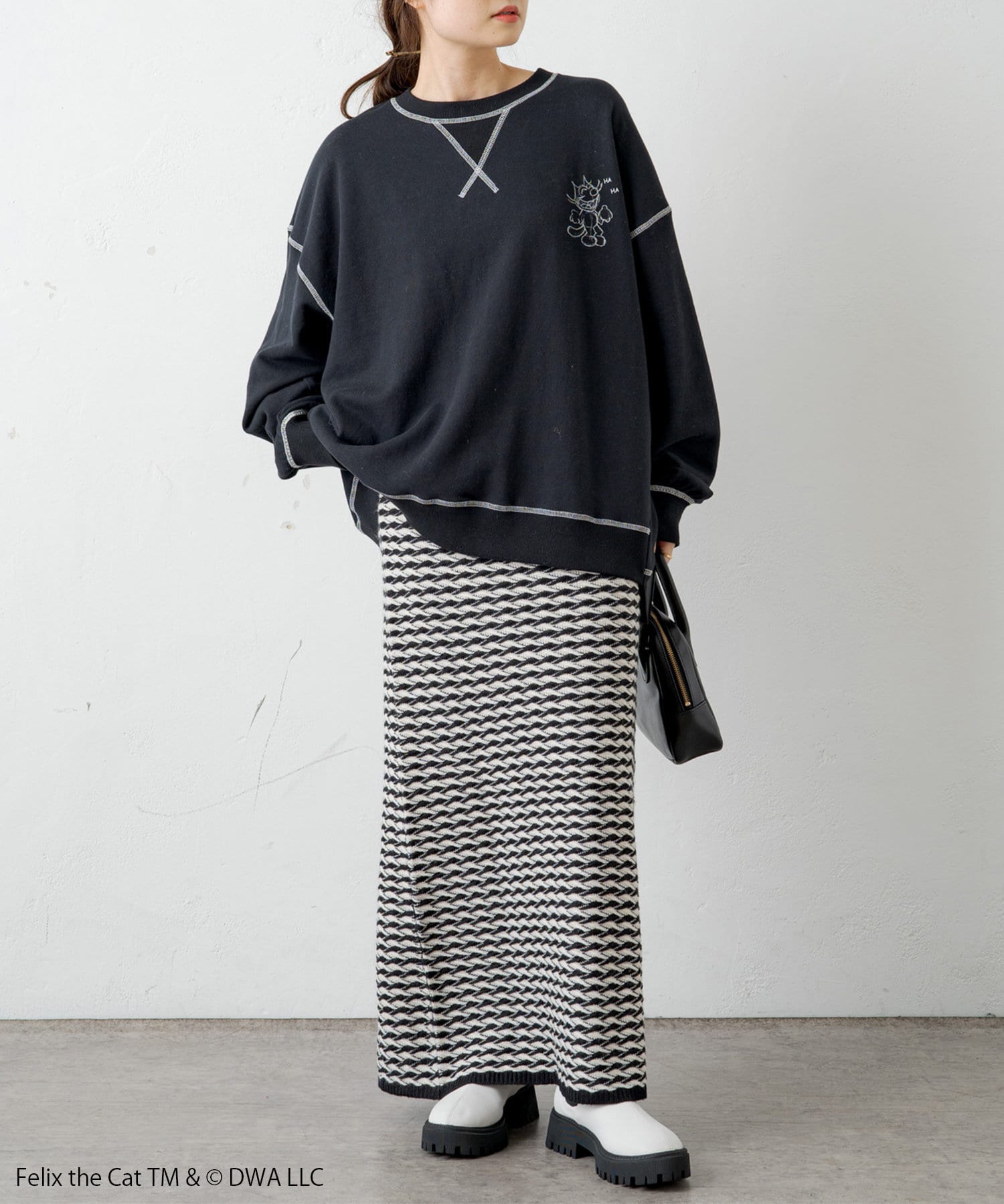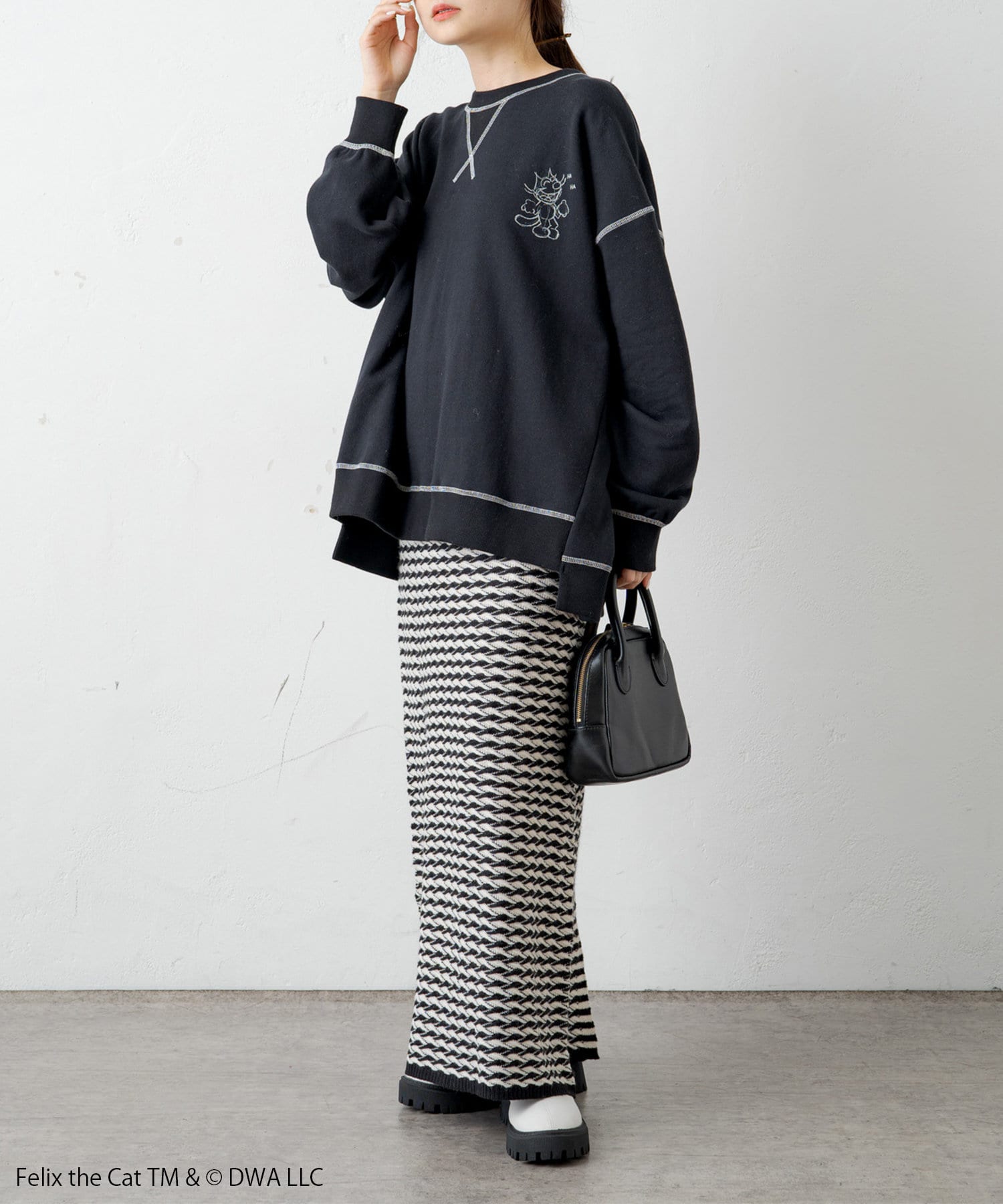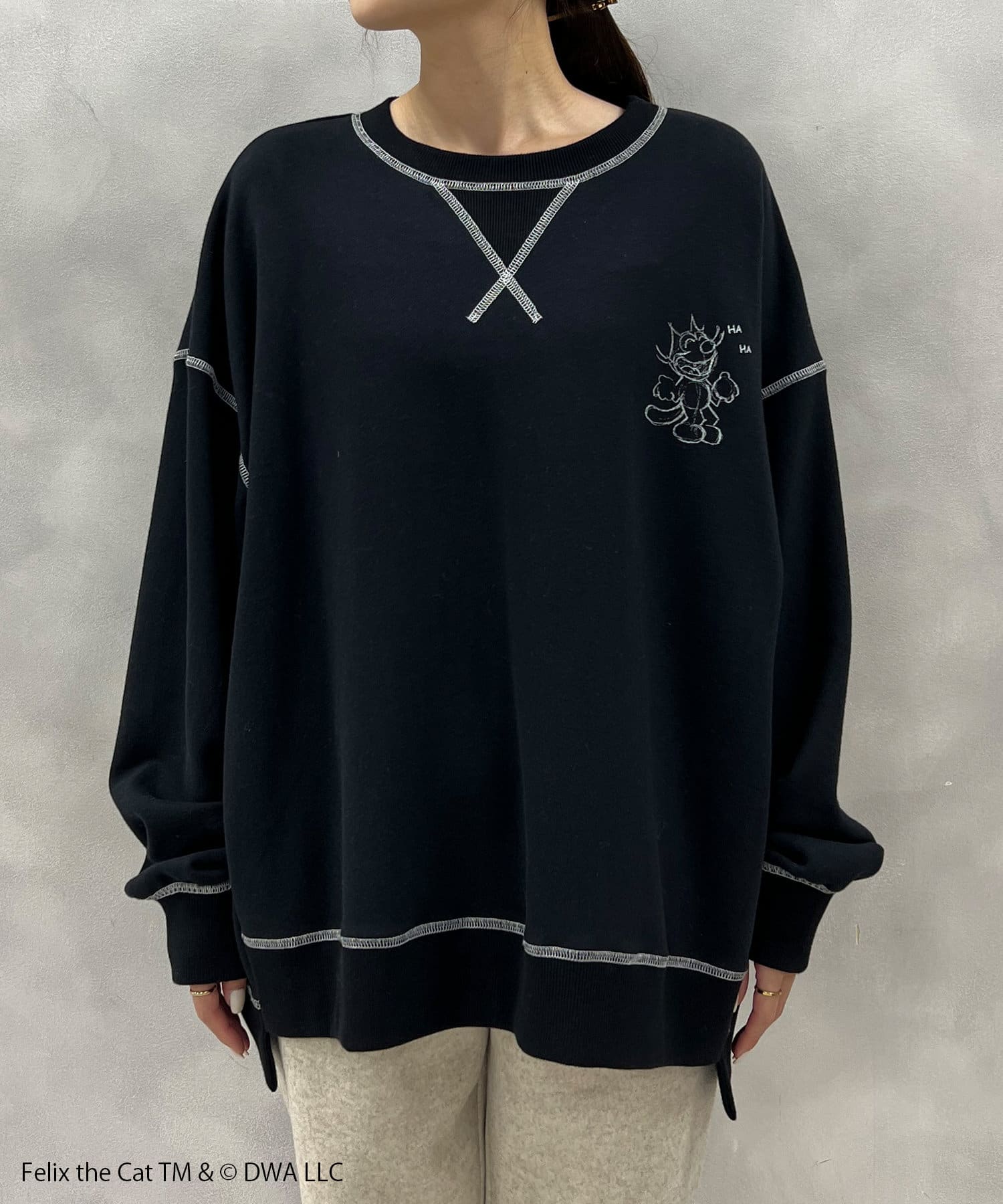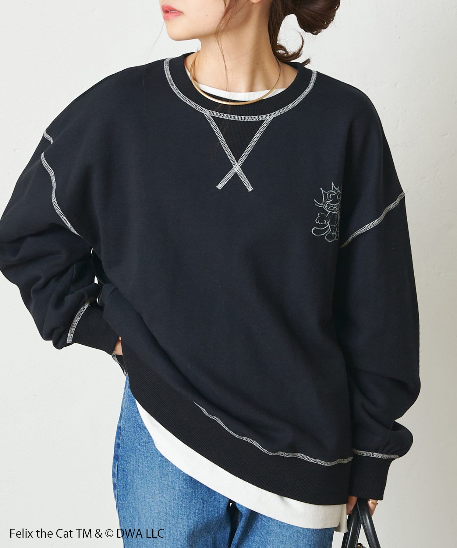 クラシカルな線画のフィリックスがワンポイントになったスウェットプルオーバー。