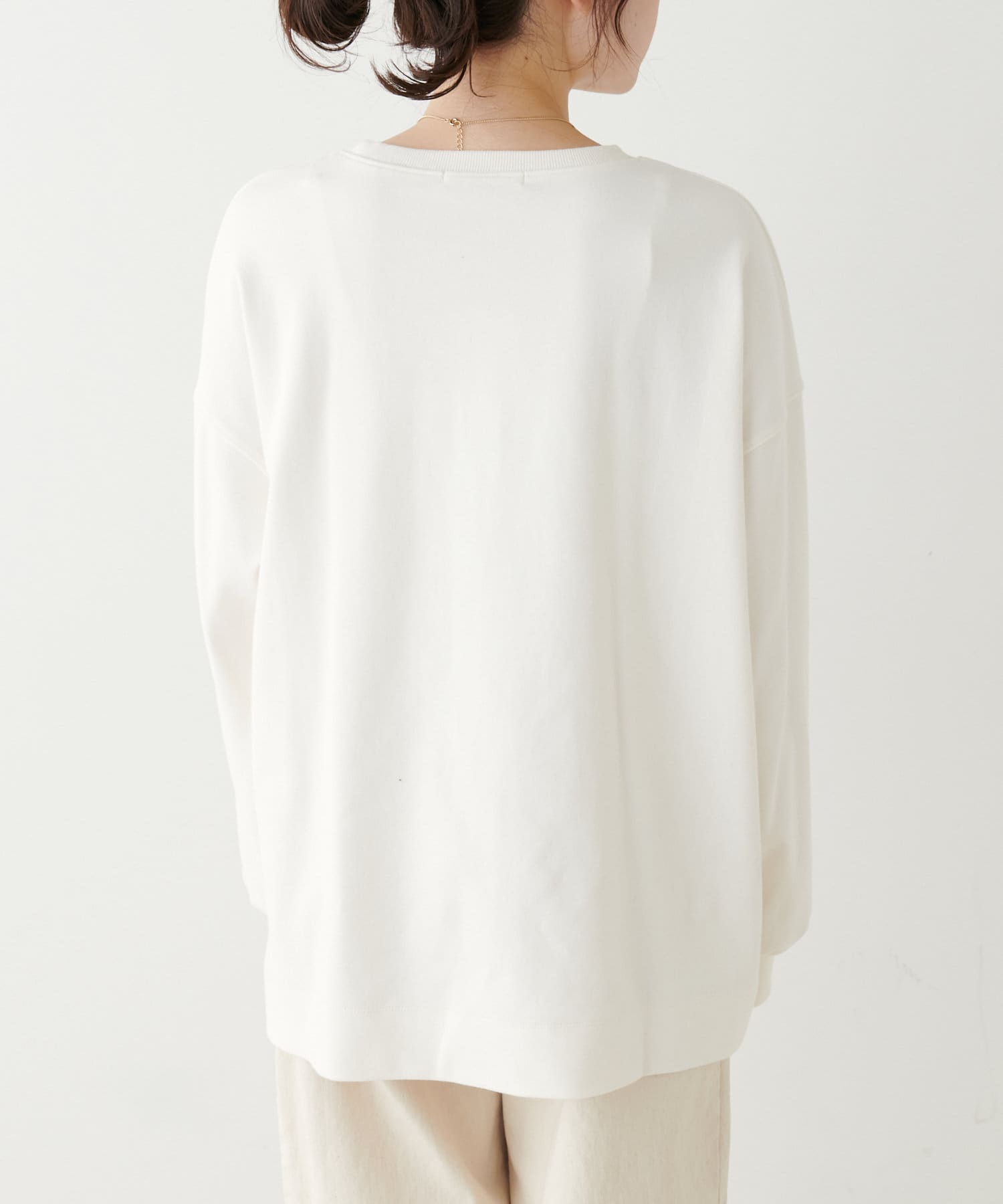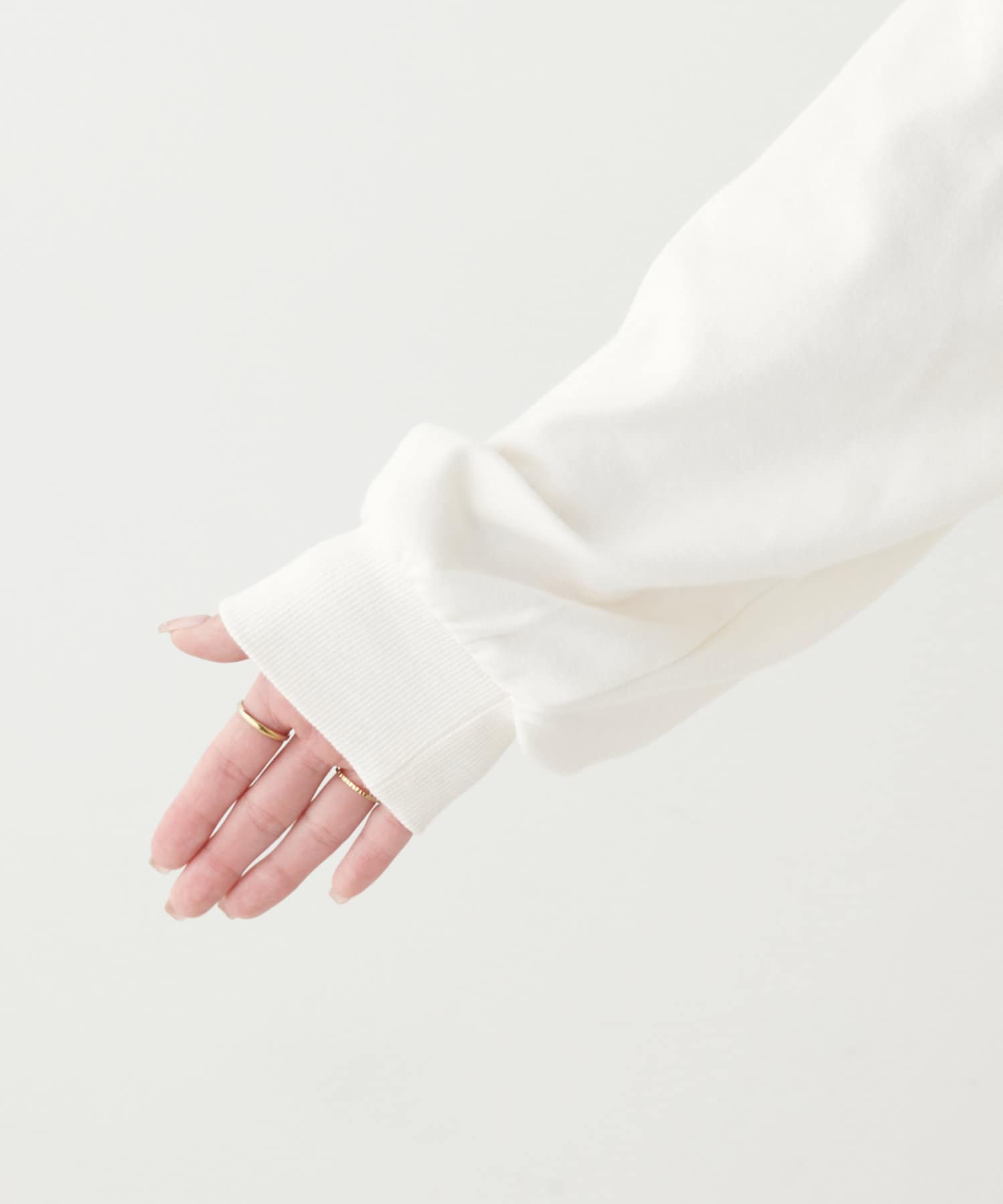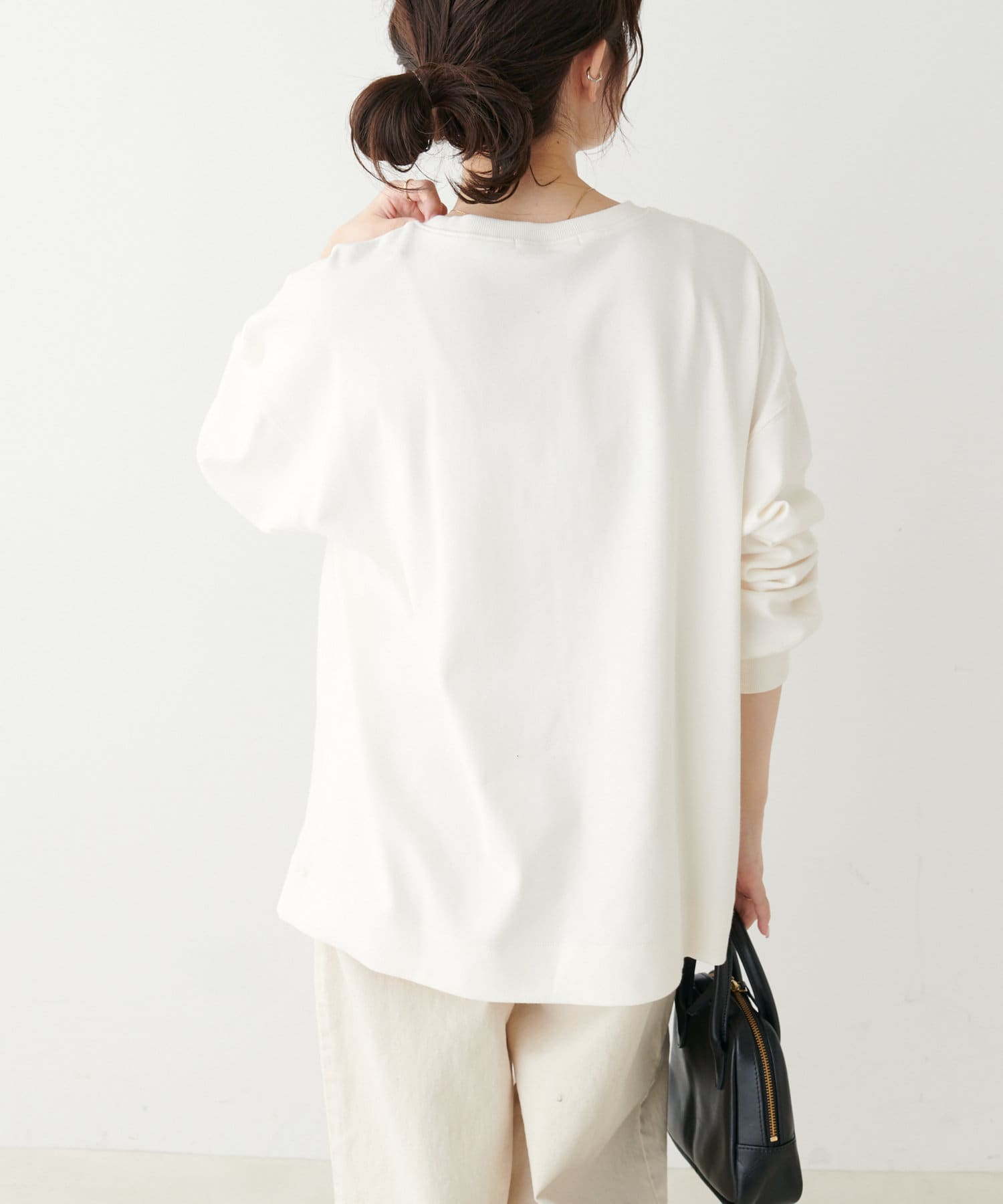 スウェットほど分厚すぎず、透け感の少ない程よい厚みの生地で1枚でもインナーとしても活躍します。