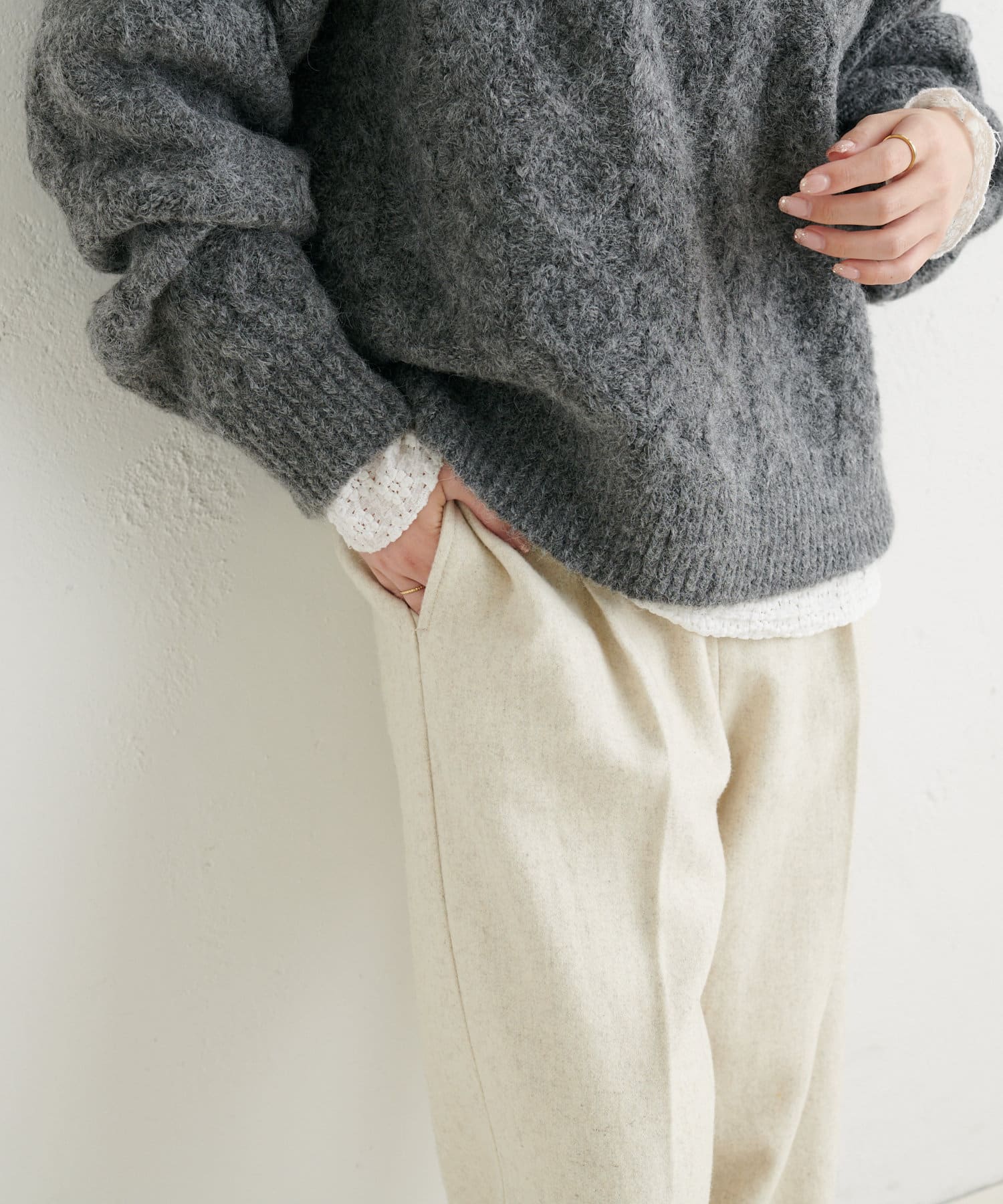 重ね着をしてもバランスよく着こなせます。